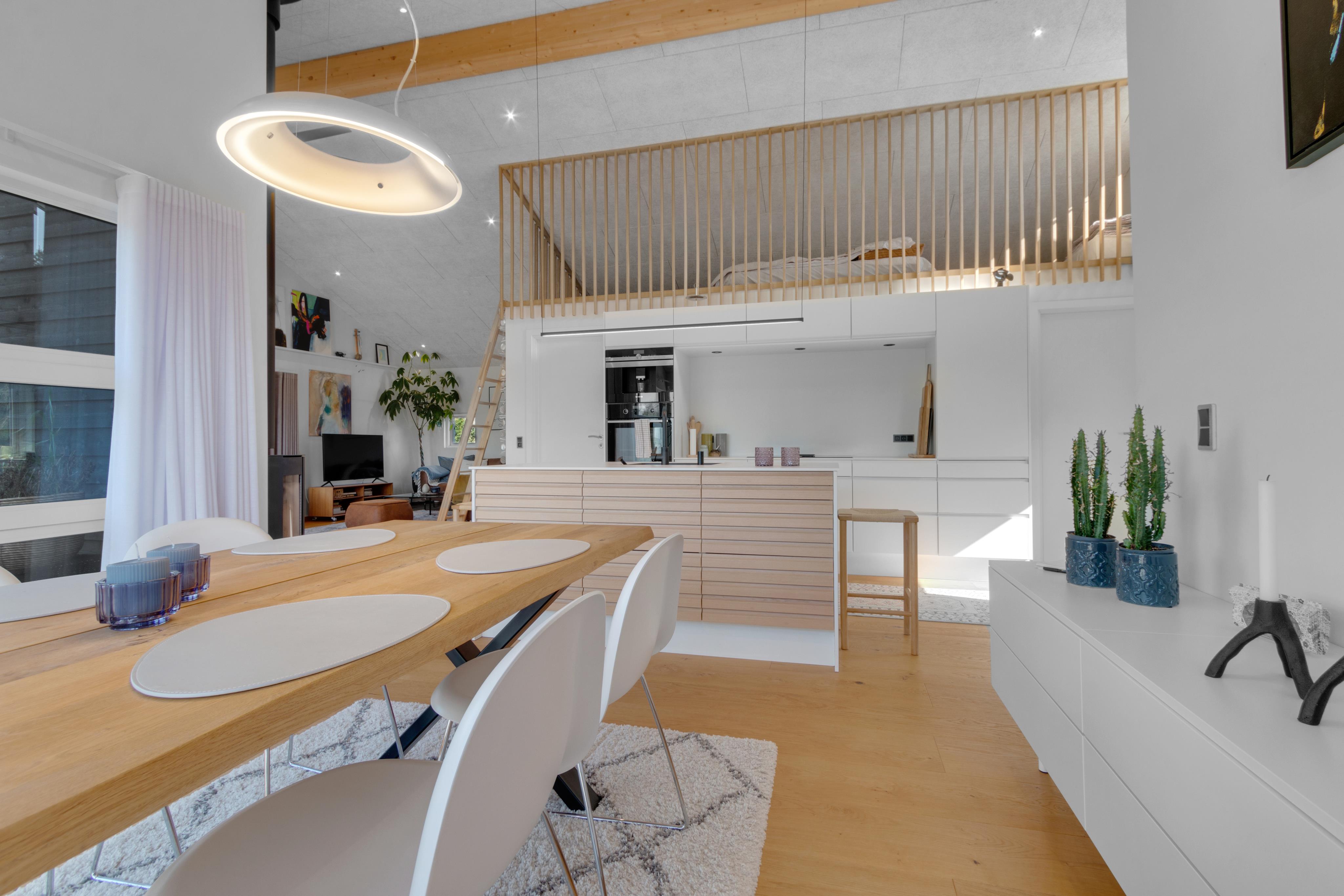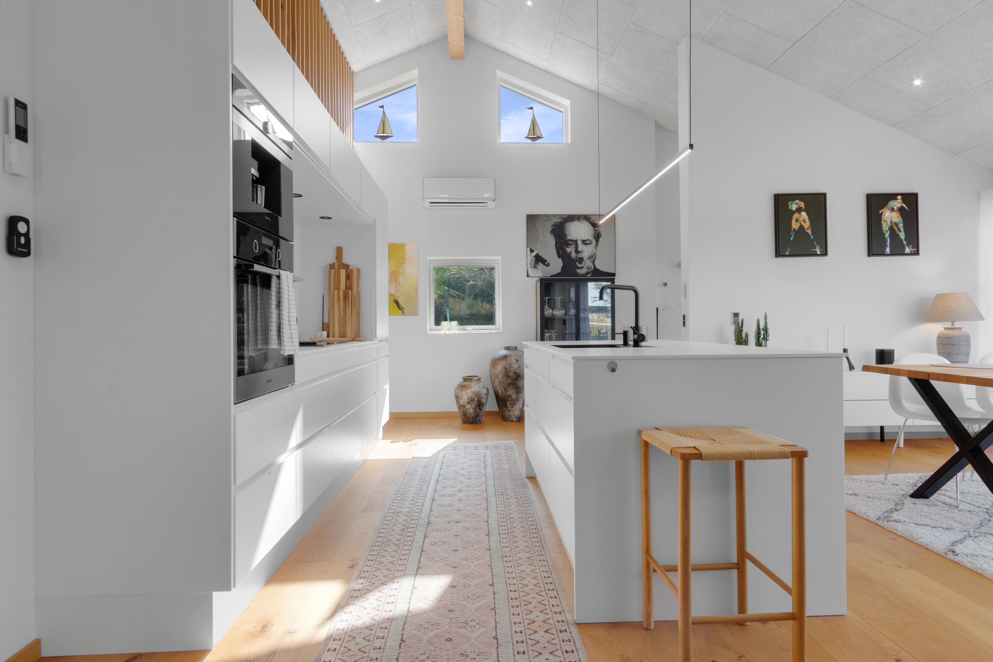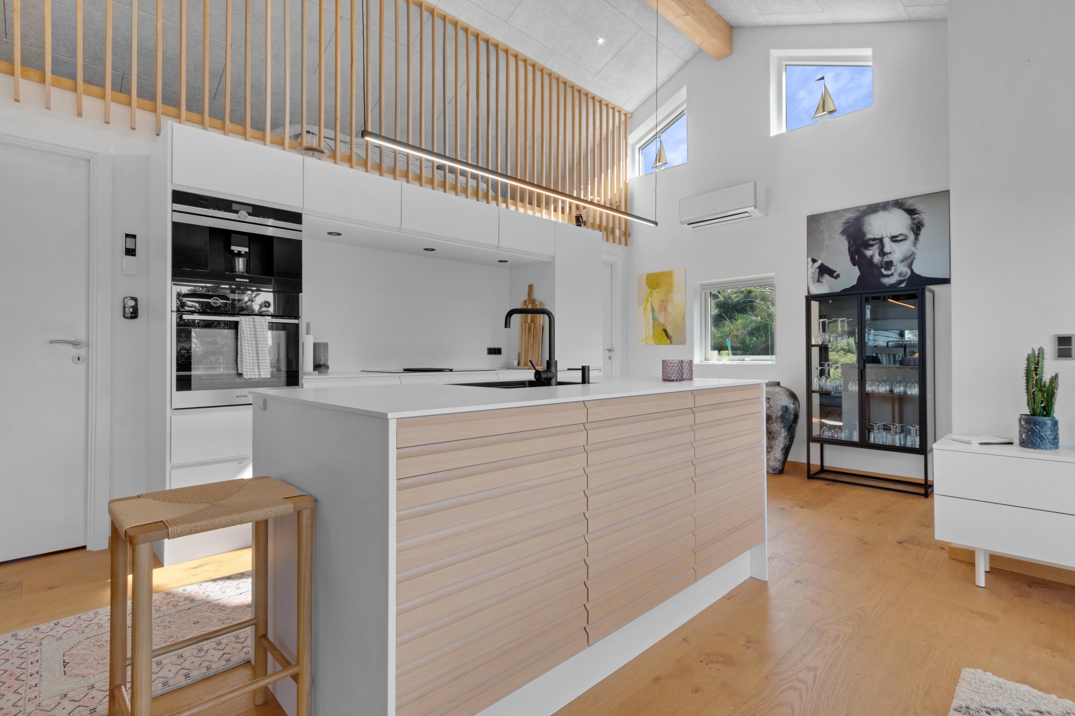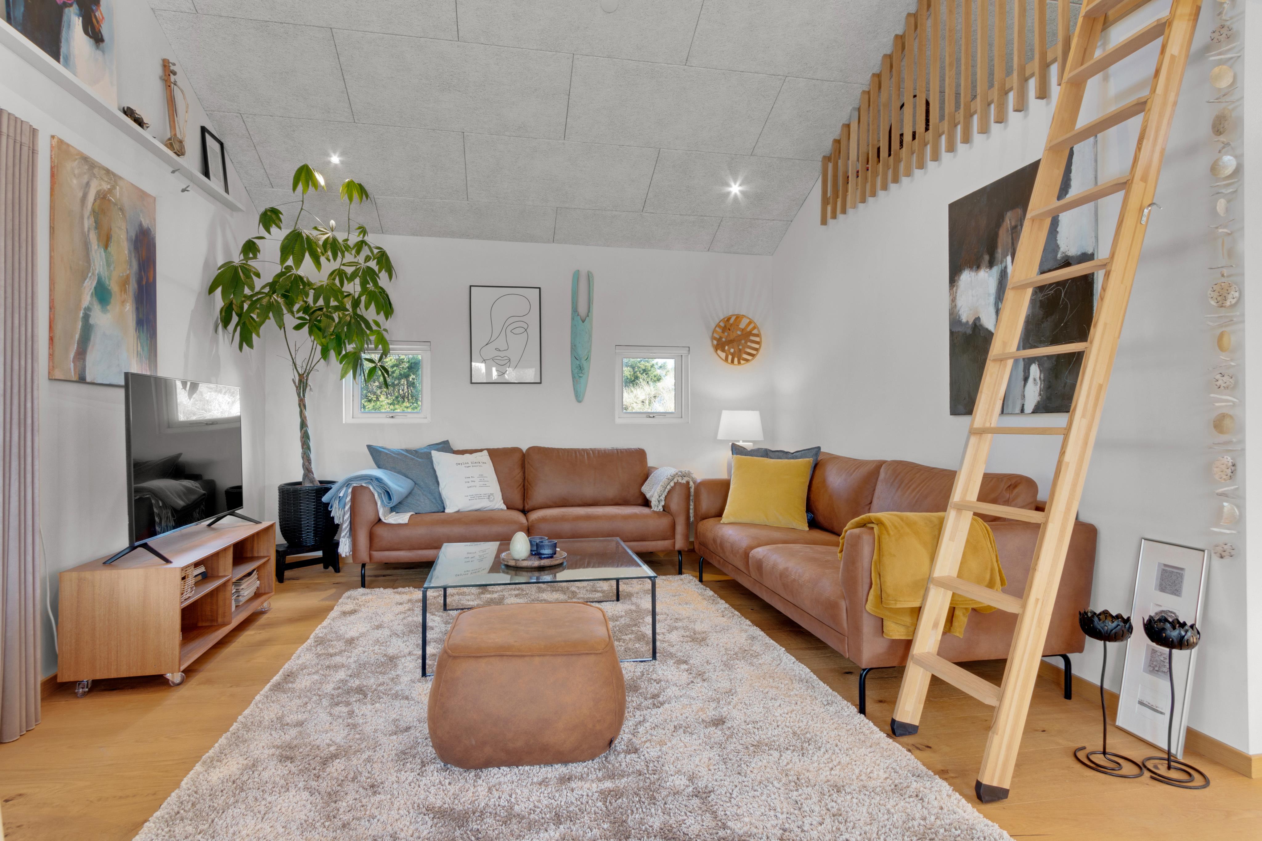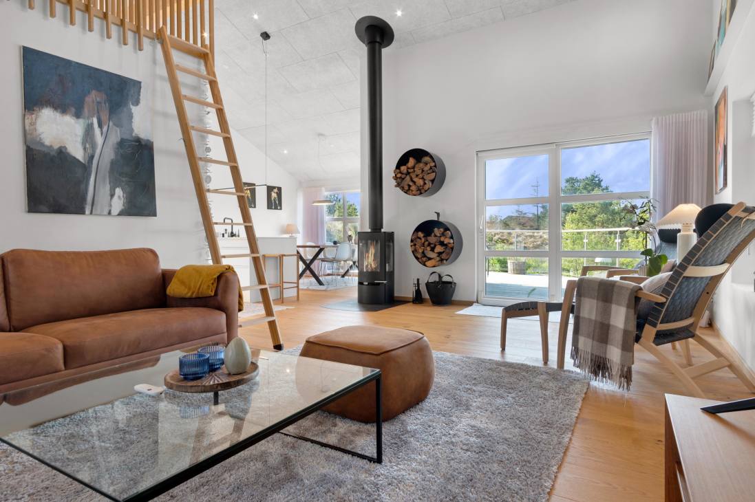 Here you can talk about an open layout and plenty of conversation and cozy spaces! The house's lovely, bright kitchen is in open connection to the living room and dining area, and above is a fantastic loft that is only screened by a decorative and beautiful railing. It gives the whole room a feeling of light, air, and luxury. There are two bedrooms and a loft. Outside there is an annex with room for 2 people. A total of 6 persons + loft. 1 bathroom - and all rooms are in exemplary condition.