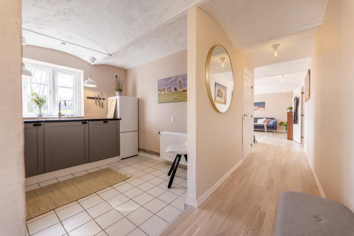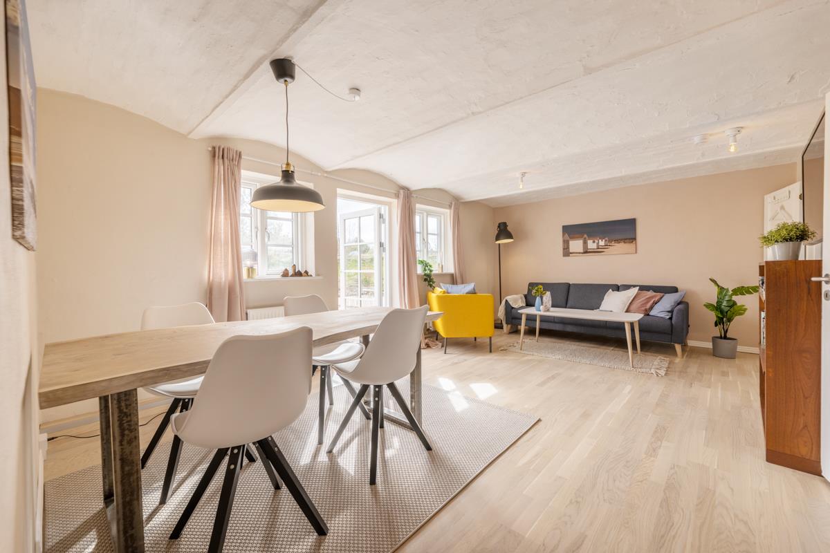 The living room has direct access to a private terrace with grill facilities, making it a convenient place to enjoy evening coffee or organize cozy activities such as board games or lovely dinner gatherings. Overall, this holiday apartment is a delightful base for a scenic stay near Løkken and Lønstrup.