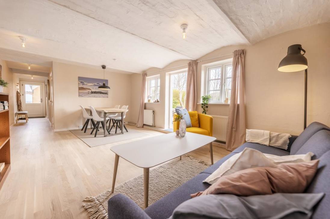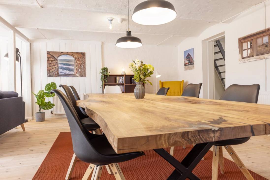 Outside at Hawbakken, there’s plenty of space with many small, cozy corners with tables and benches, as well as a fabulous 180-degree panoramic view over the North Sea, Rubjerg Knude Lighthouse, and Lønstrup. As a guest, you also have free access to numerous activities at “Sport & Spas,” offering a wide variety of indoor and outdoor activities. All holiday homes are non-smoking, and youth groups or nighttime parties are not allowed. Pets are not allowed on furniture or left alone in the house, and water bowls must not be placed on wooden floors.
