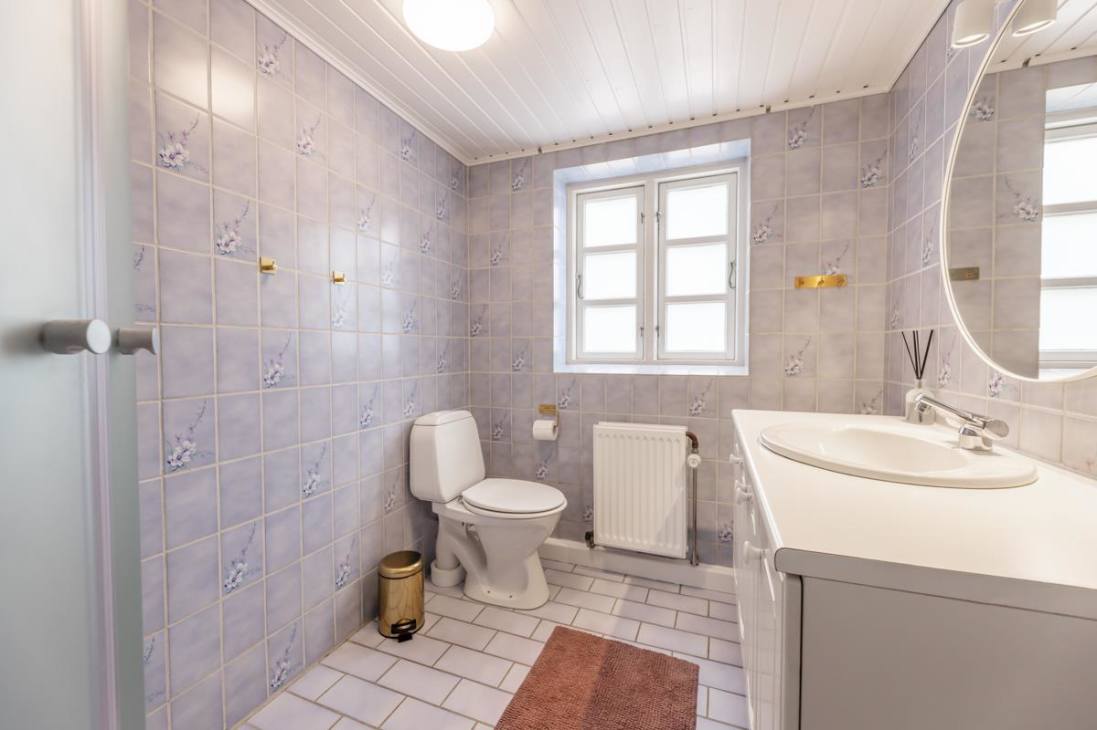 Kostalden is designed to accommodate 6 guests in 2 bedrooms with quality beds and thick mattresses, ensuring a good night’s sleep. One bedroom with a double bed is on the ground floor, while the second bedroom with a double bed and two single beds is located on the first floor via a steep staircase (not suitable for those with limited mobility). Additionally, there is space for 1 extra bed in the living room or the ground-floor bedroom. There is a functional and spacious bathroom.