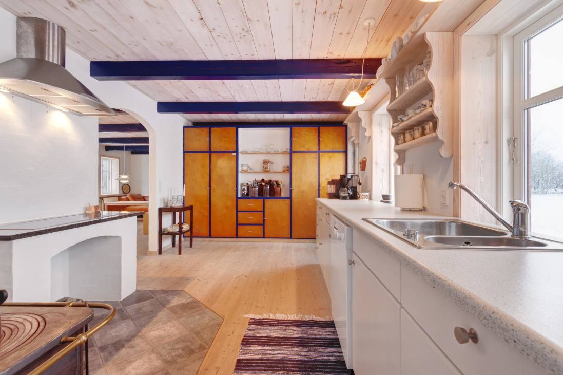 When you step through the doors of this charming holiday home on Børglum Klostervej, you immediately sense the atmosphere! A feeling of genuine charm and coziness - there's no high ceilings, no modern amenities, or noisy city life here. There's authentic rural idyll despite being just 5 kilometers from one of Denmark's most beautiful beaches. All rooms exude coziness with exposed beams and authentic style, and the kitchen and living room themselves form the lovely focal point of the house.