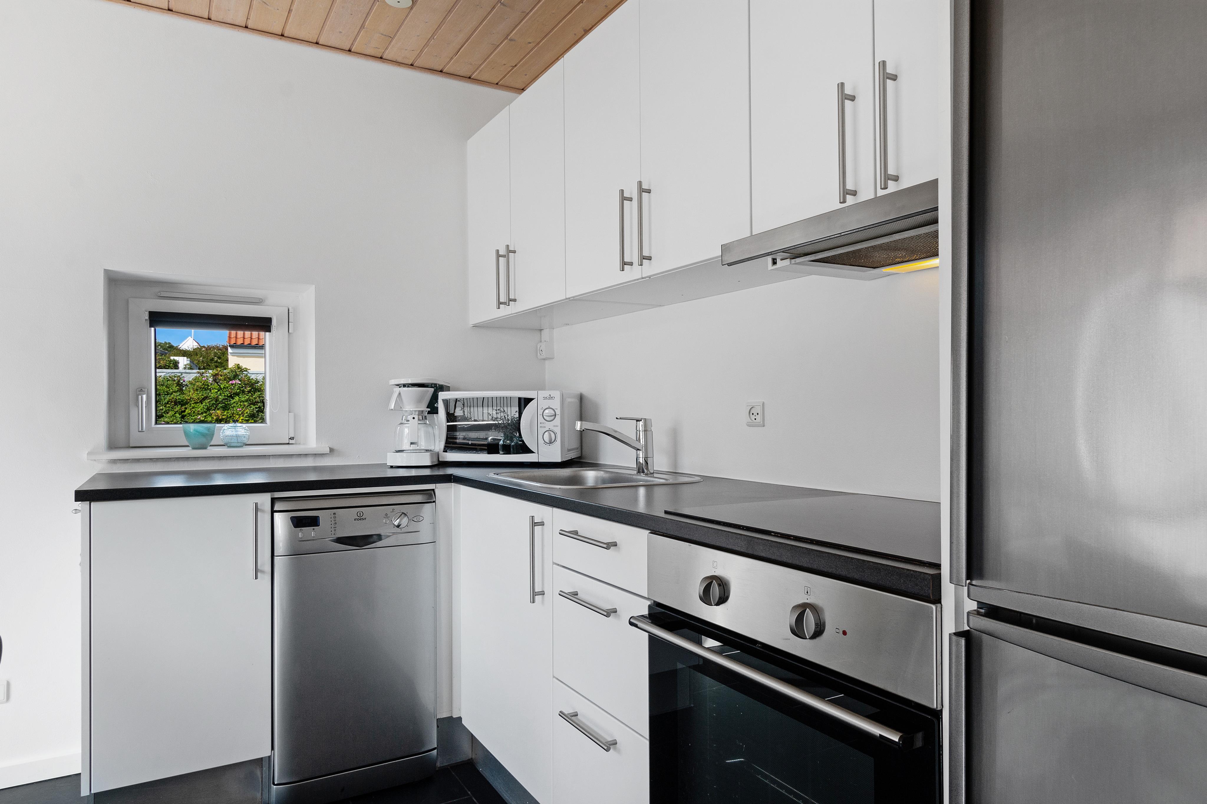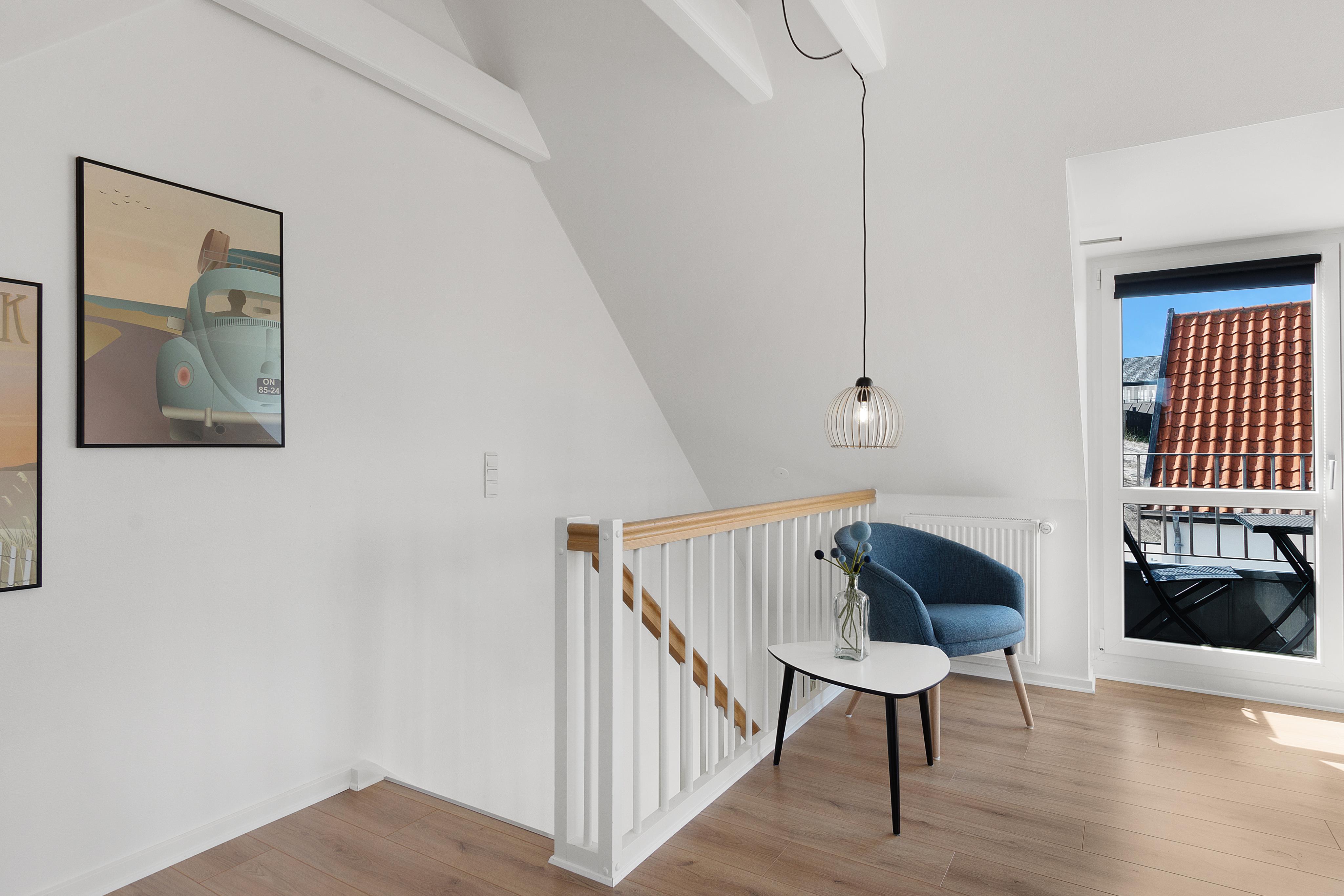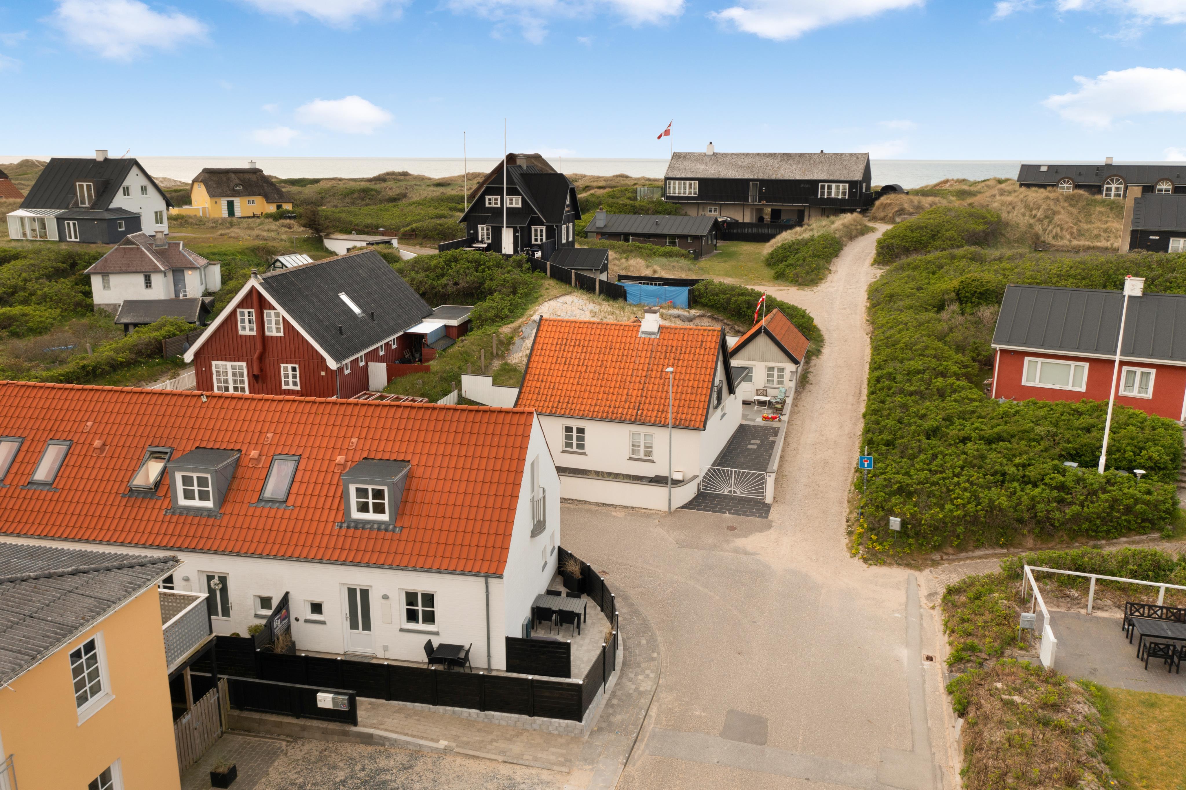 As the pictures show, the apartment is located in a building immediately along Damgårdsvej, and if you cross this road, you will come to a hill that leads along beautiful summer houses, across the dunes and along a path system further down to the beach. It is a perfect walk if you want to go and have a dip in the impressive western sea. If you prefer to drive by car or bicycle to the beach, simply follow the paved road down to Løkken pier, where you can either park or take the car/bike with you. Here you will meet the charming sauna barrels, the innovative surfing environment and the historic fishing boats, which create a holiday atmosphere and plenty of opportunities for experiences all year round. If you're more into exploring Løkken's city- and shopping life, it's just a matter of going out the front door and zig zag 50 meters, and you can see shops and restaurants ahead.
