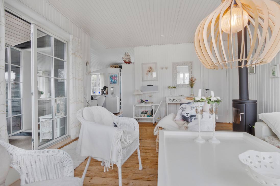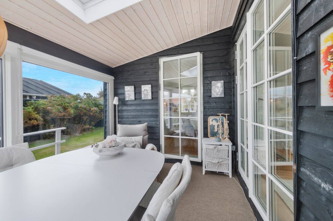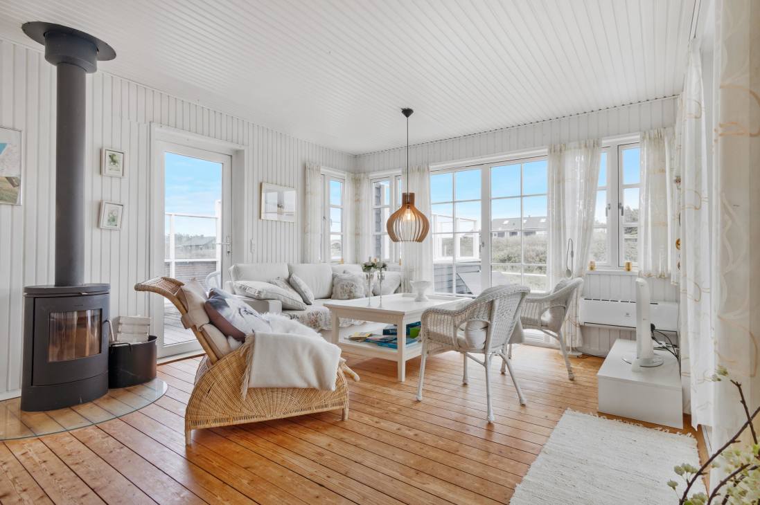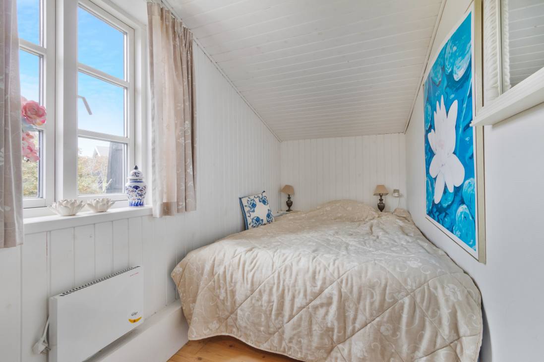 The holiday home is extremely charming and must be experienced. It's located at the end of Drosselvej, overlooking Furreby Creek and into Løkken, as well as over some of the lovely vacation homes in Furreby. There's a terrace around half of the summer house, providing plenty of opportunities for sunbathing and relaxation. Inside the house, there's a delightful distribution of space with an open kitchen/living room/dining area and a lovely conservatory where you can sit in shelter and enjoy the view. There are 2 bedrooms and space for 4 people. The house is decorated in a delightful, light summer house style, and in our view, it offers everything a classic summer vacation requires and more. There's parking space for two cars next to the house.