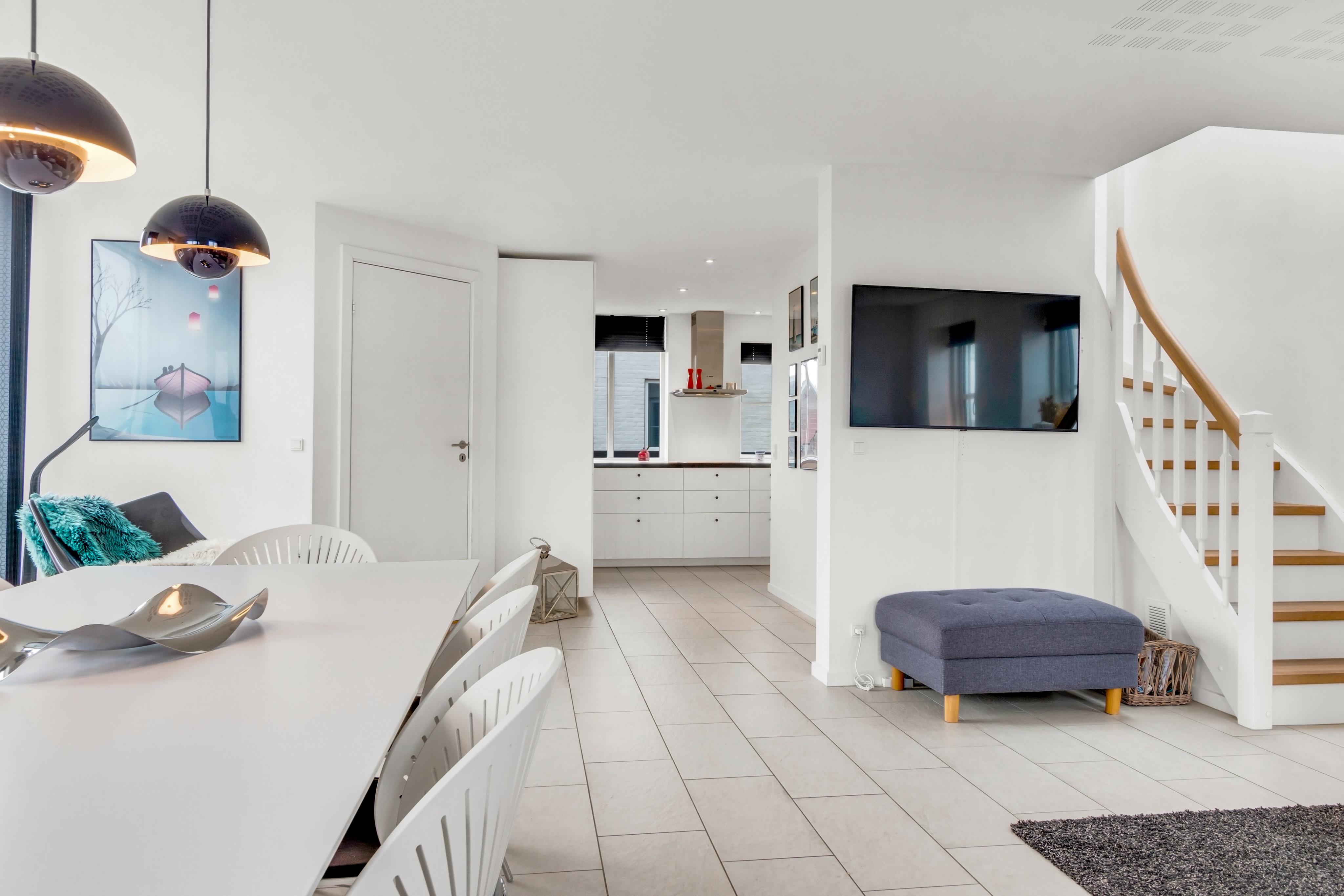 The house is on two levels with three bedrooms and a bathroom on the first floor. On the ground floor, there's a lovely, large entrance hall with a bathroom and a super charming and beautiful open kitchen connected to the large, bright living and dining room. The house is tastefully furnished and exudes luxury and coziness. There's a lovely terrace all around the house, so it should always be possible to find a place in the sun when summer shows its best side.