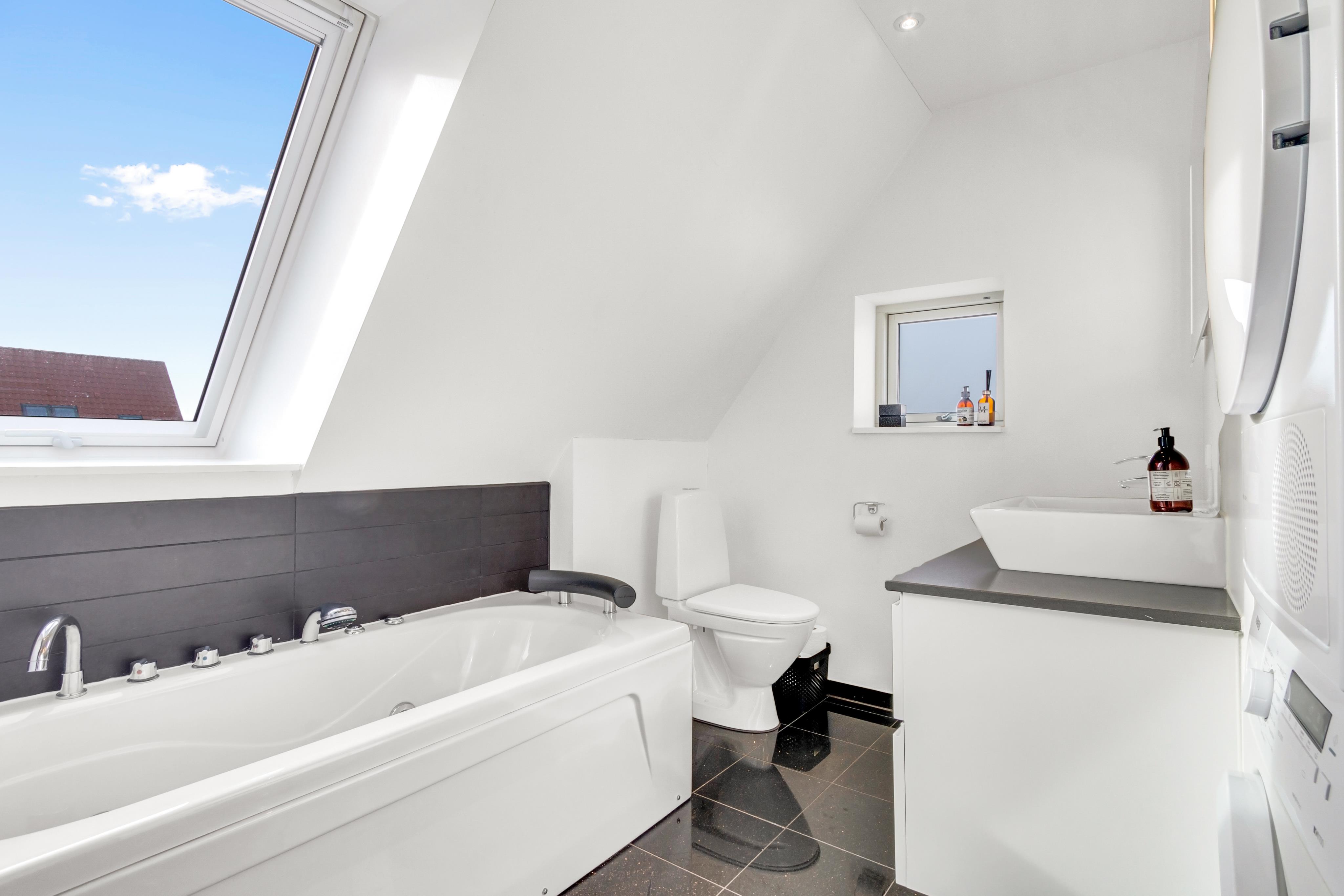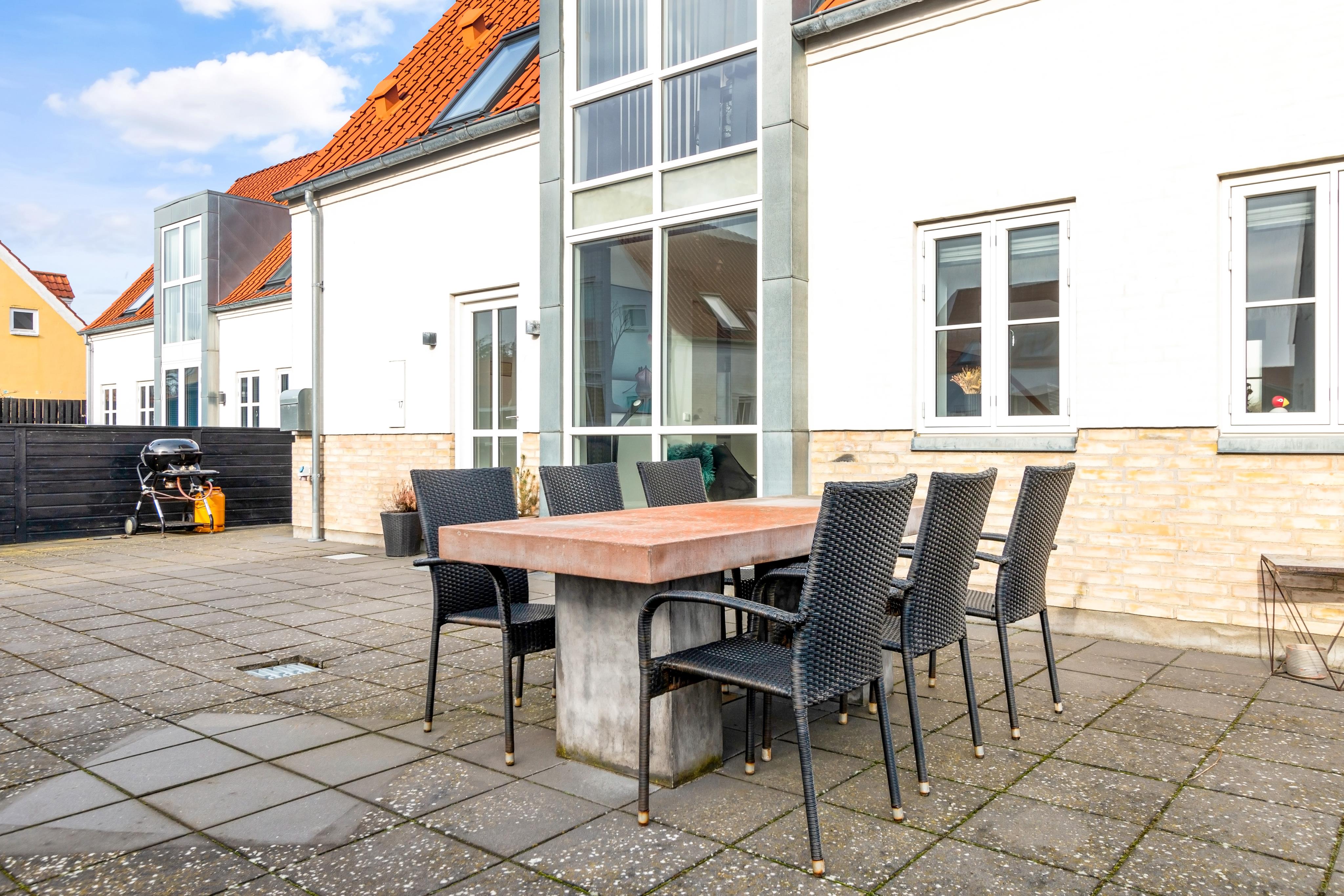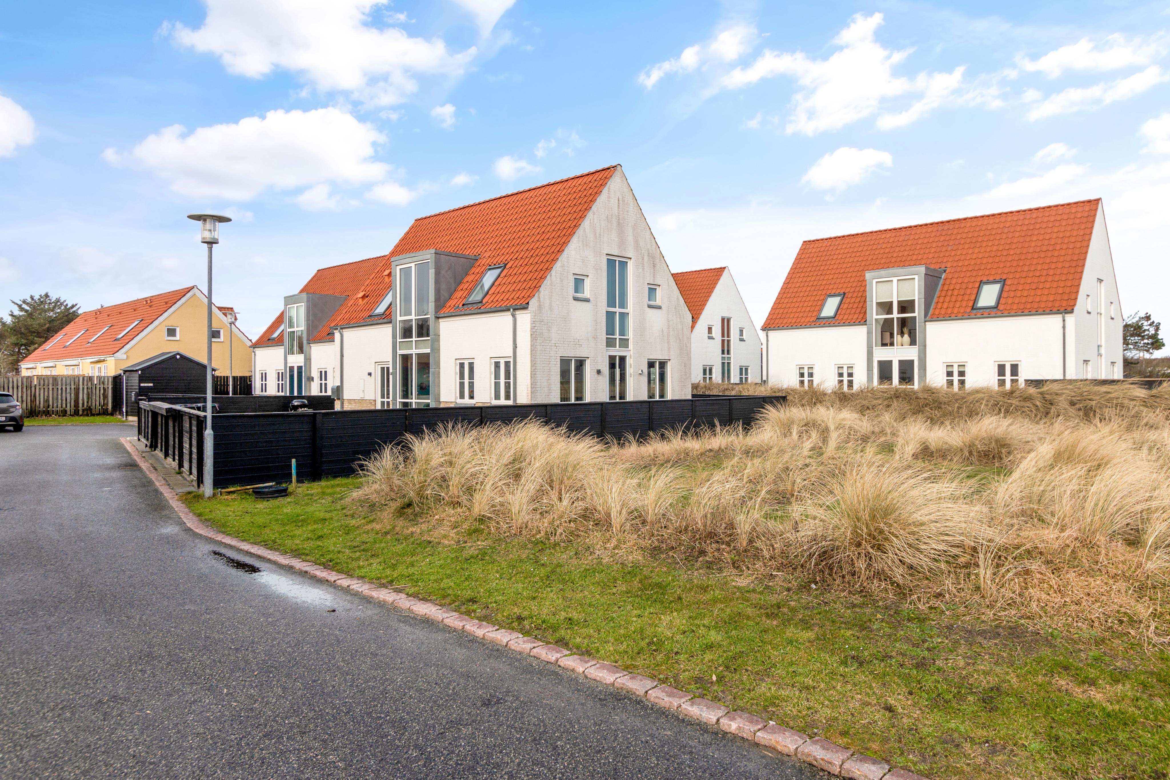 Josefines Have is a lovely area centrally located in Løkken. Here, the beautiful brick houses rise up in a neighborhood where all the houses are built in the same style in a secluded area. You access Josefines Have from Søndergade, and all roads end in dead ends, so you live undisturbed despite being centrally located. Here at number 17, there's a terrace all around the house, and if the beach calls, it's only 750 meters away. The house is surrounded by beautiful nature and plenty of opportunities for experiences.