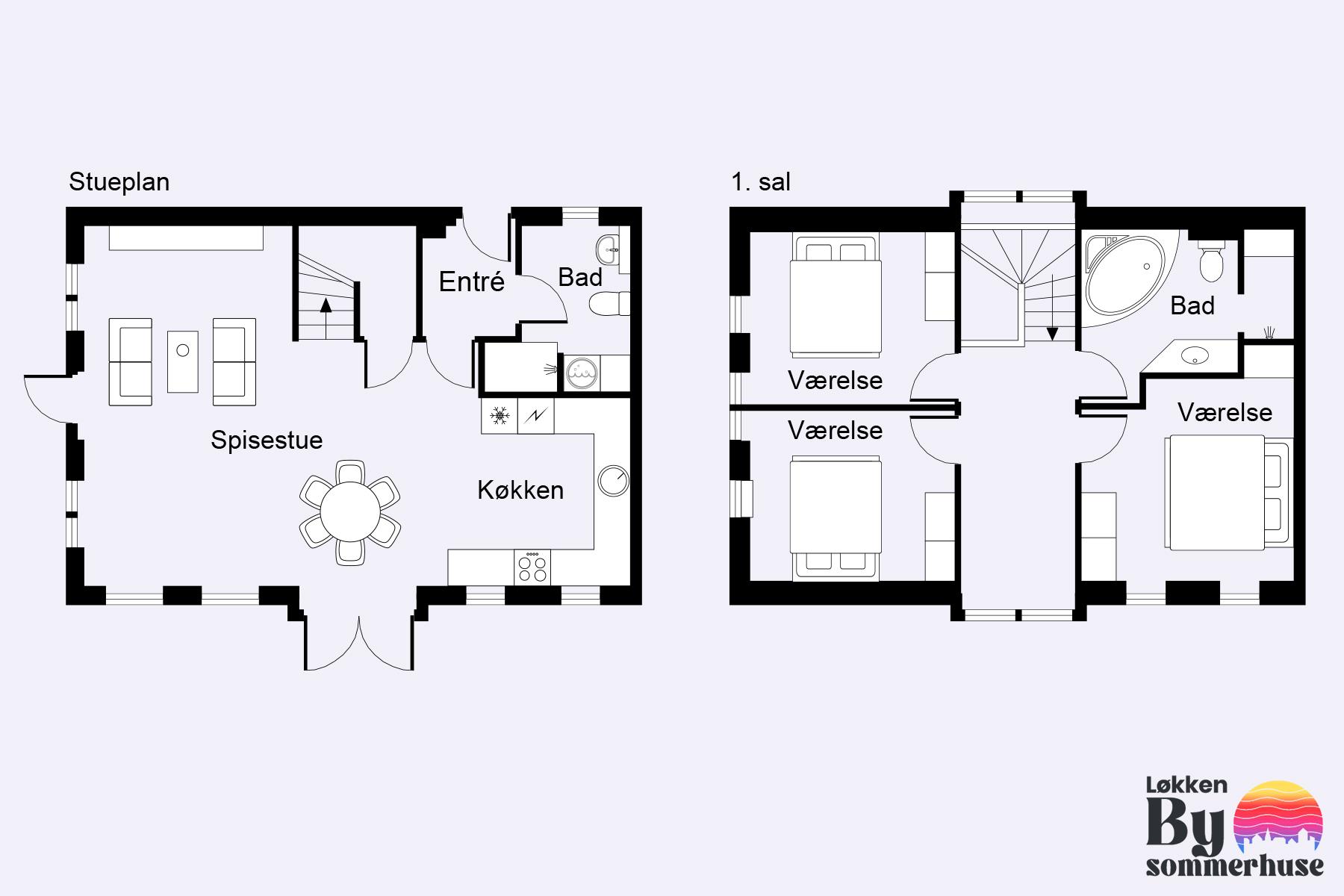 Spread over two floors, this holiday home consists of three bedrooms and two bathrooms. The rooms are bright and welcoming, and there is a lovely open concept kitchen/dining room with plenty of room and comfort. The house is practically furnished, which is nice when you come home completely full of sand from one of your beach visits. At By Sommerhuse, we are proud to rent out a holiday home of this caliber!