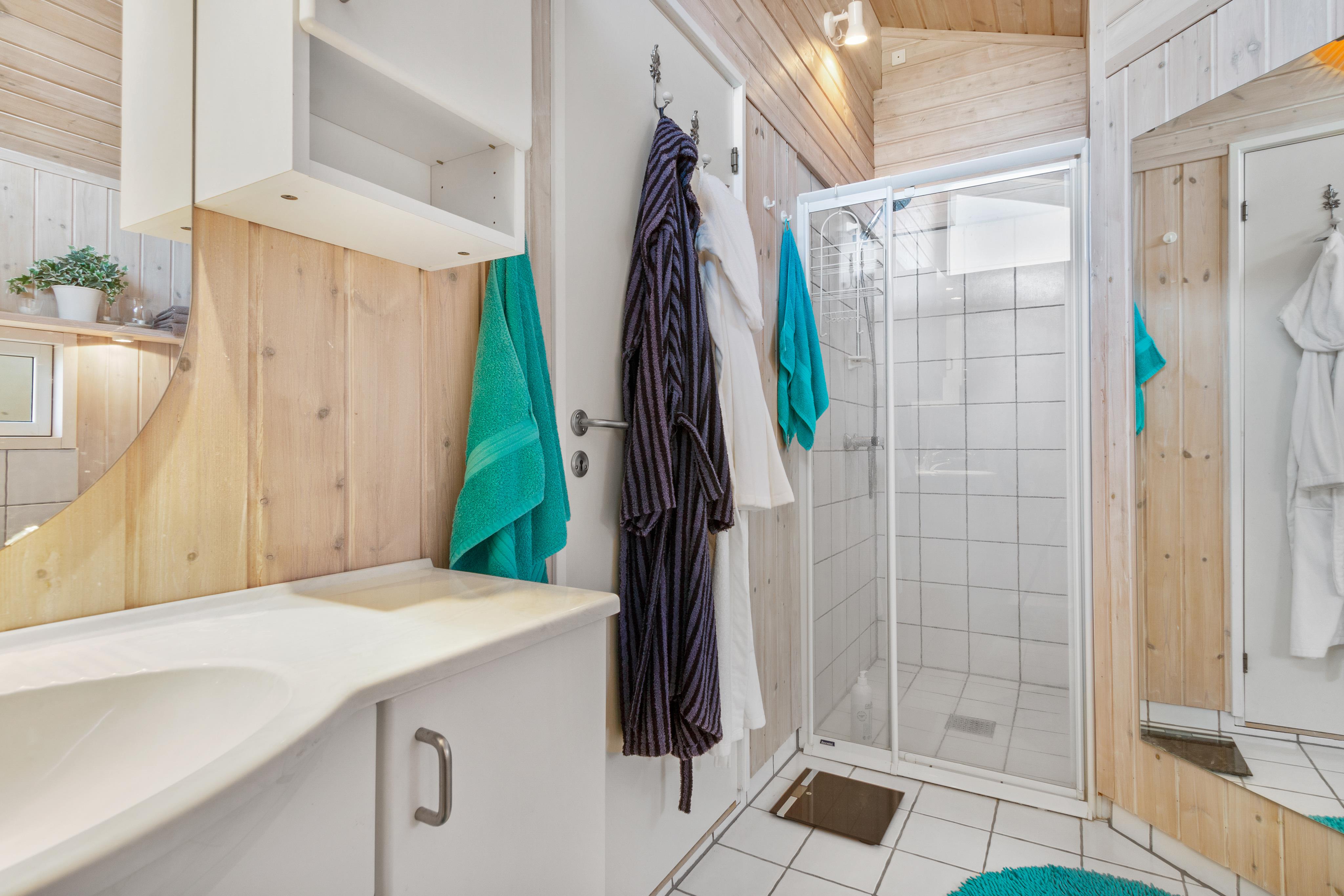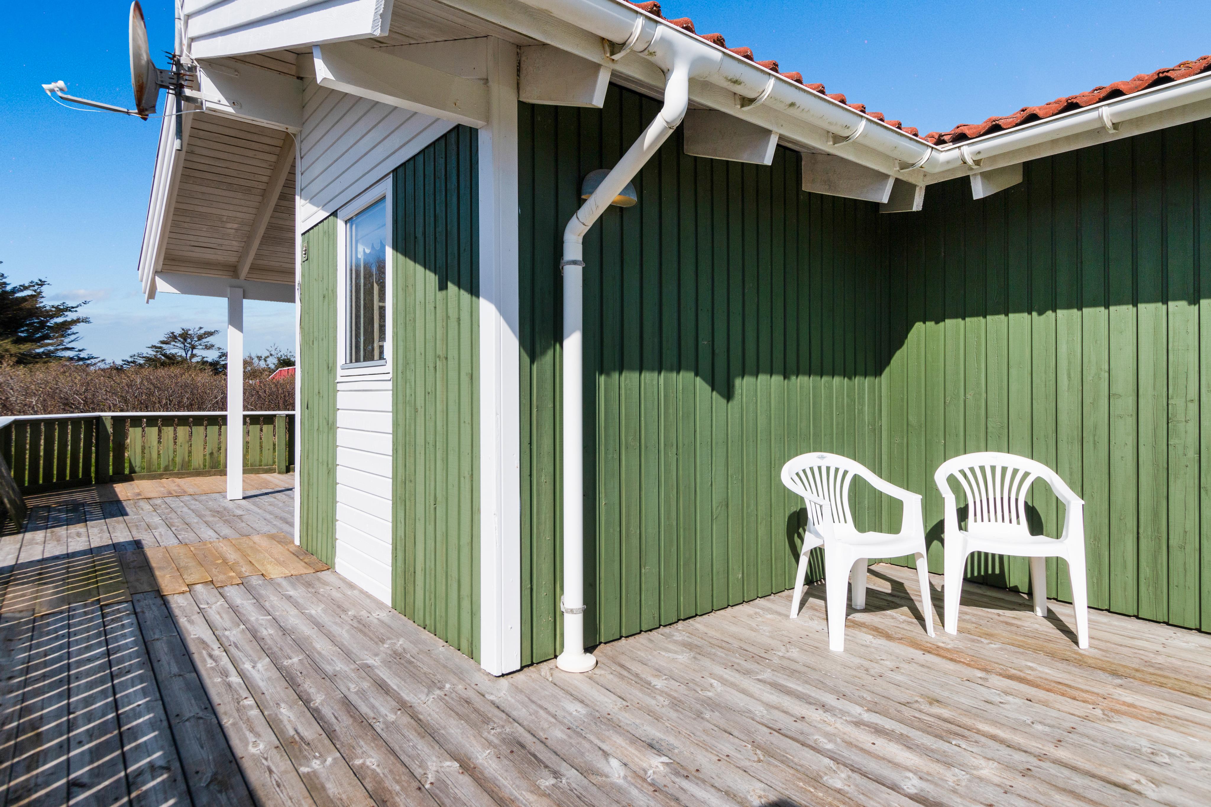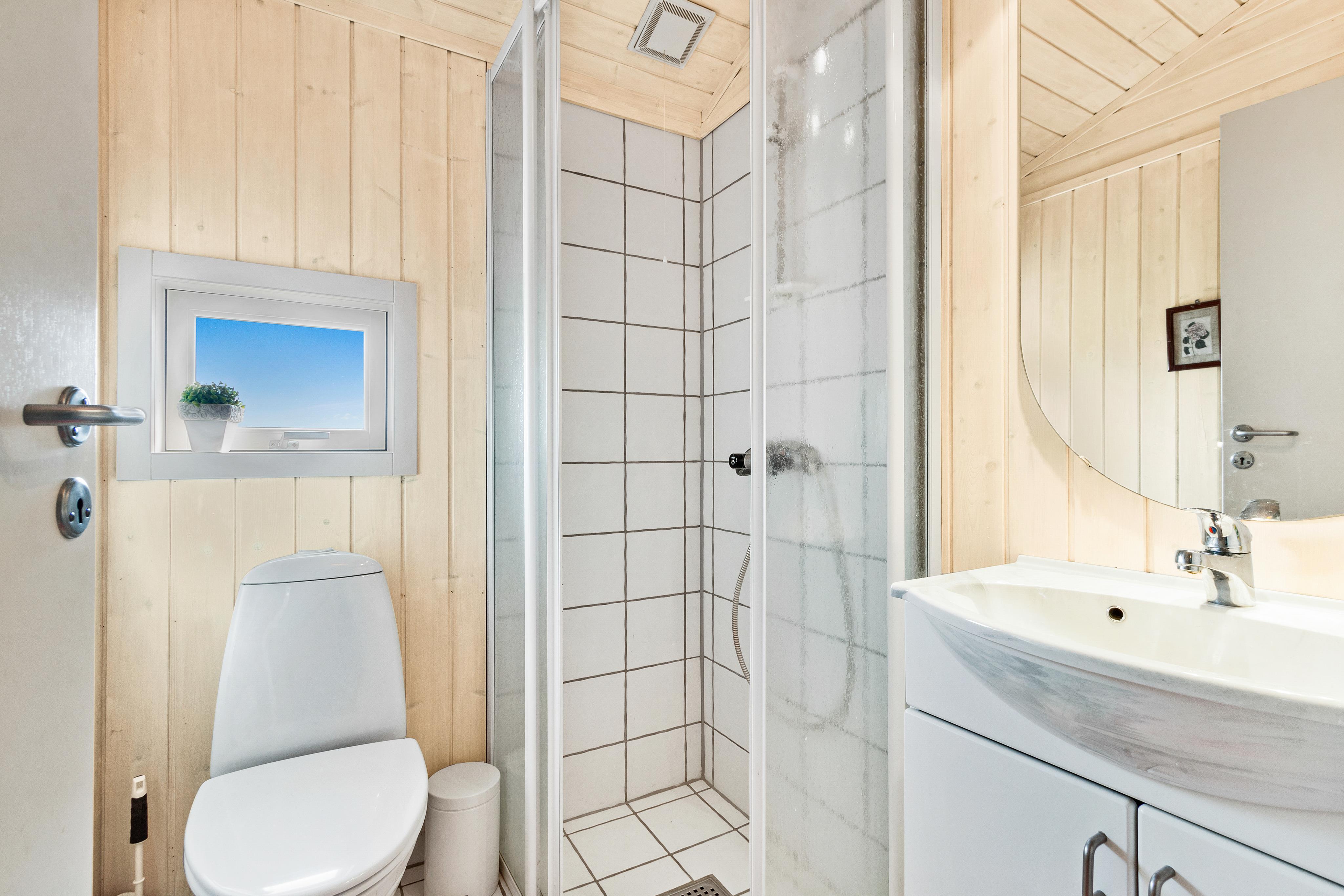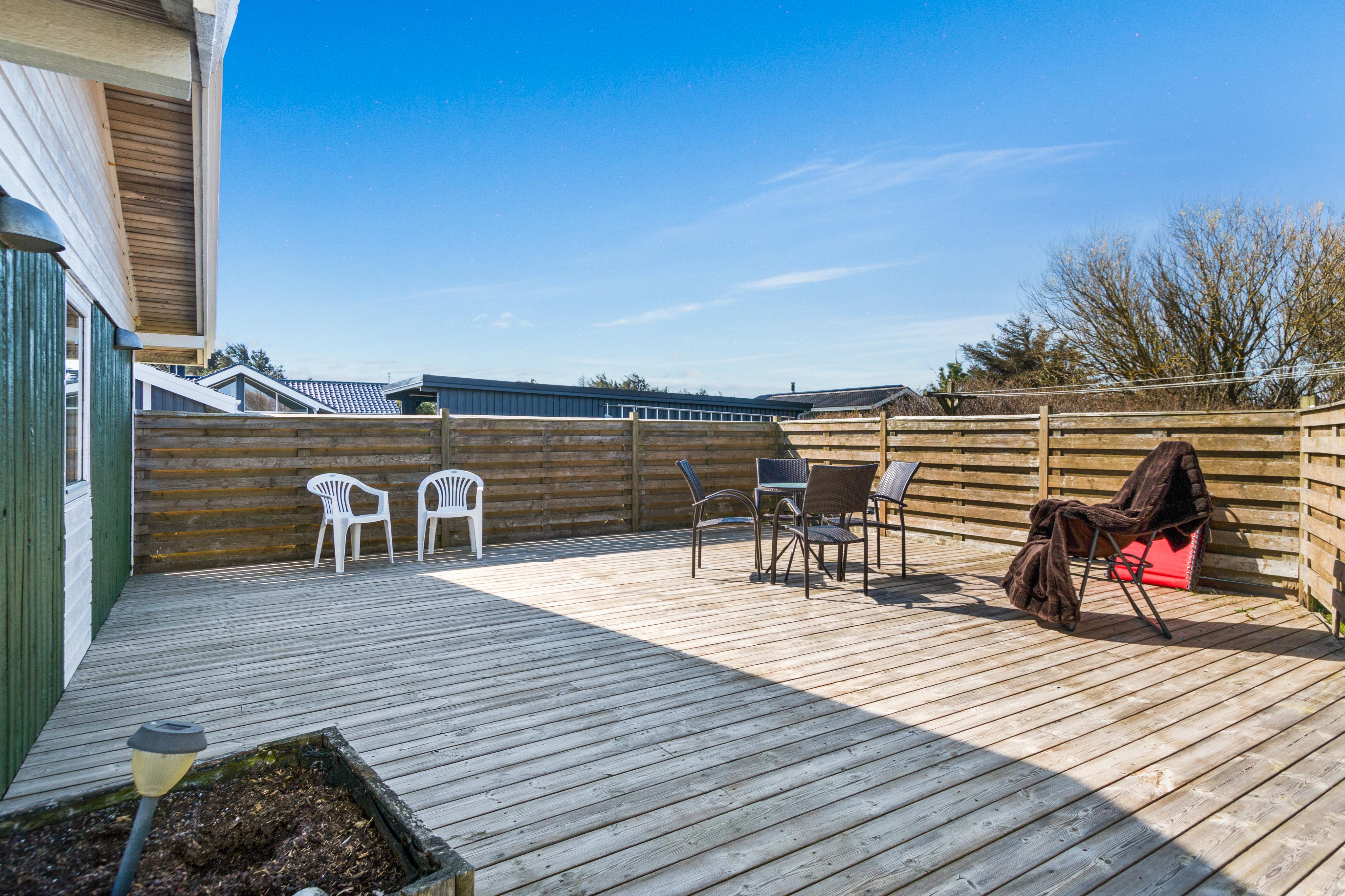 As mentioned, the summer house is 91 square meters and in really nice condition. It exudes a genuine holiday atmosphere like a traditional holiday home. It is practically furnished with a utility room and 5 sleeping places. Just as you enter the house, there is access to a lovely bathroom on the left, which includes a separate shower and a spa. Continuing straight ahead, you will enter the second bathroom. There are three bedrooms and two bathrooms - practically furnished with plenty of space for 7 people. Lovely open kitchen/dining/living room with wood-burning stove and a utility room with washing machine and dryer. The living room in the summer house is a fantastic place to stay. There is plenty of space and natural light streaming in through the large windows, and there is direct access to the terrace. The summer house was built in 2000, and the facade consists of green and white painted woodwork, which, like the rest of the holiday home, exudes a holiday atmosphere. The plot is spacious with plenty of garden space and a large terrace.