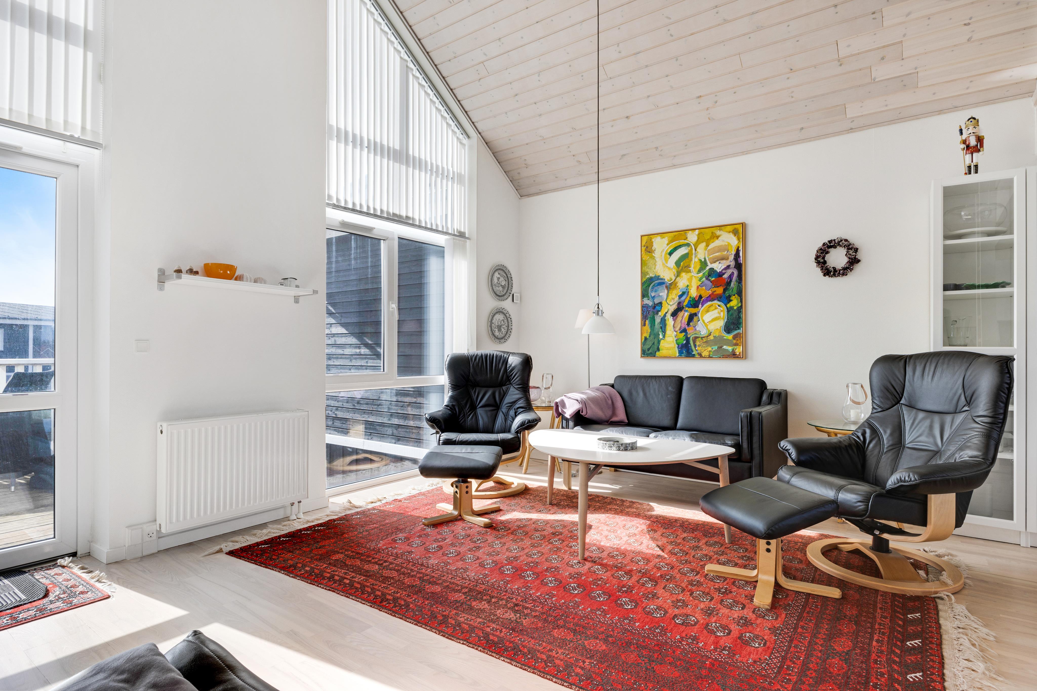 The holiday home is perfectly located in Løkken, offering the opportunity to retreat and relax with, for example, many hours of golf or enjoy on one of the two terraces. One terrace is on the ground floor at the main door, and the other is on the first floor with access from the cozy living room.
