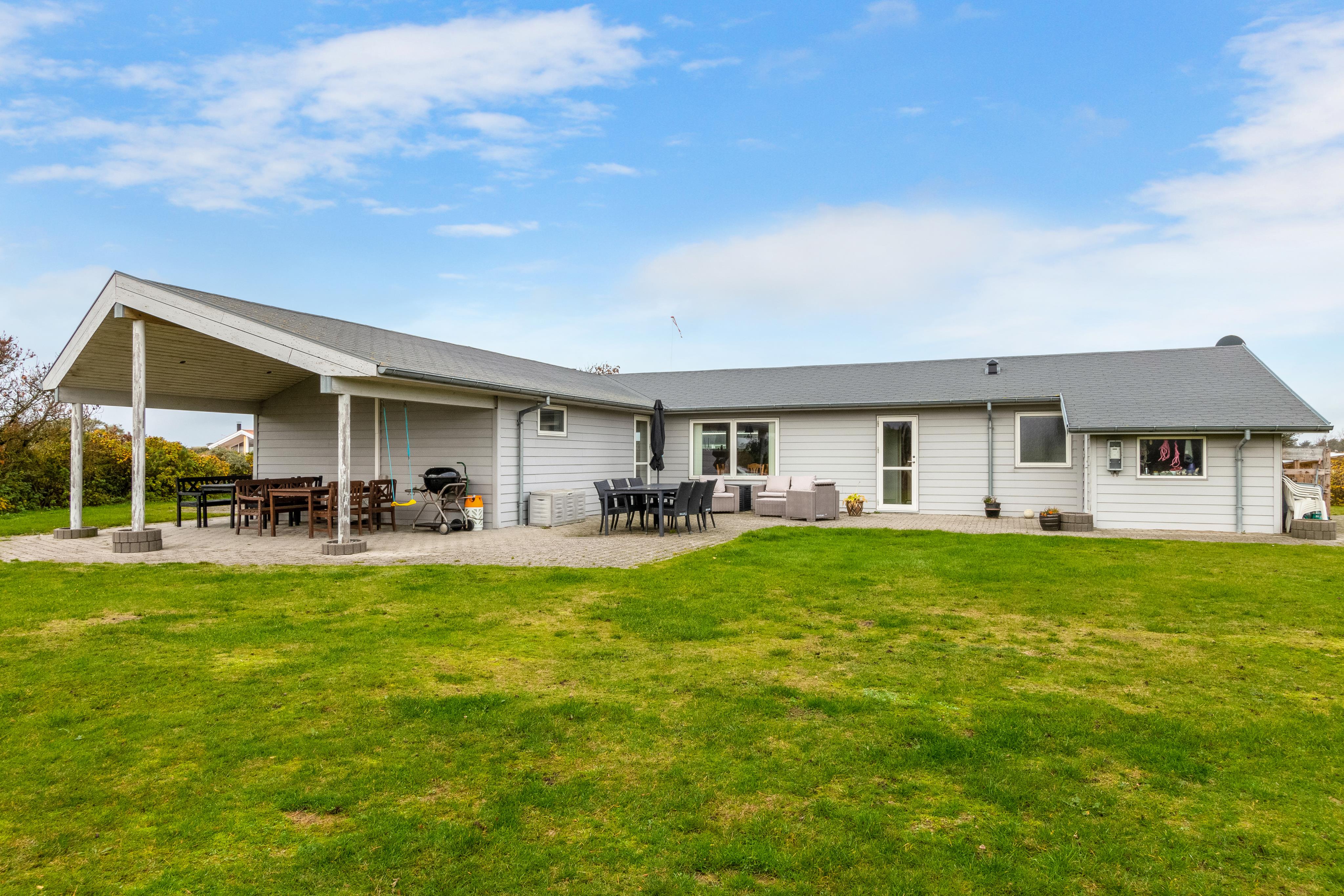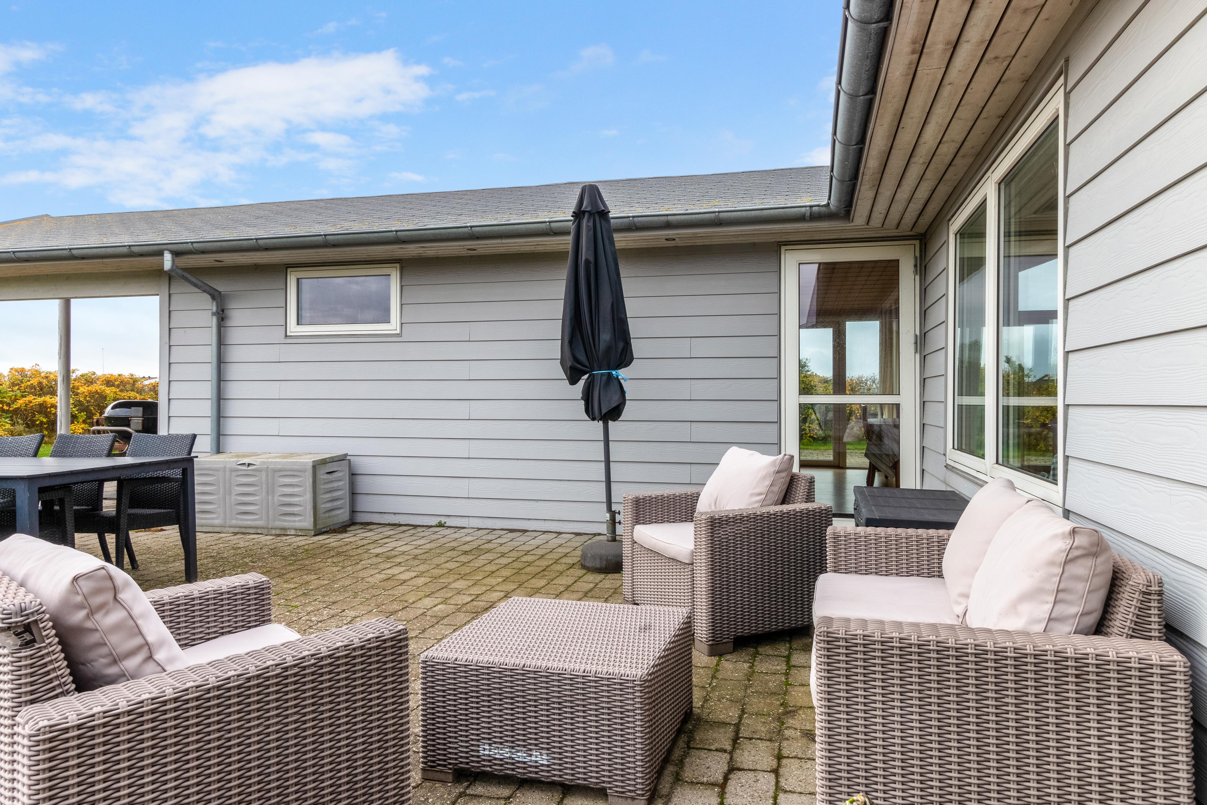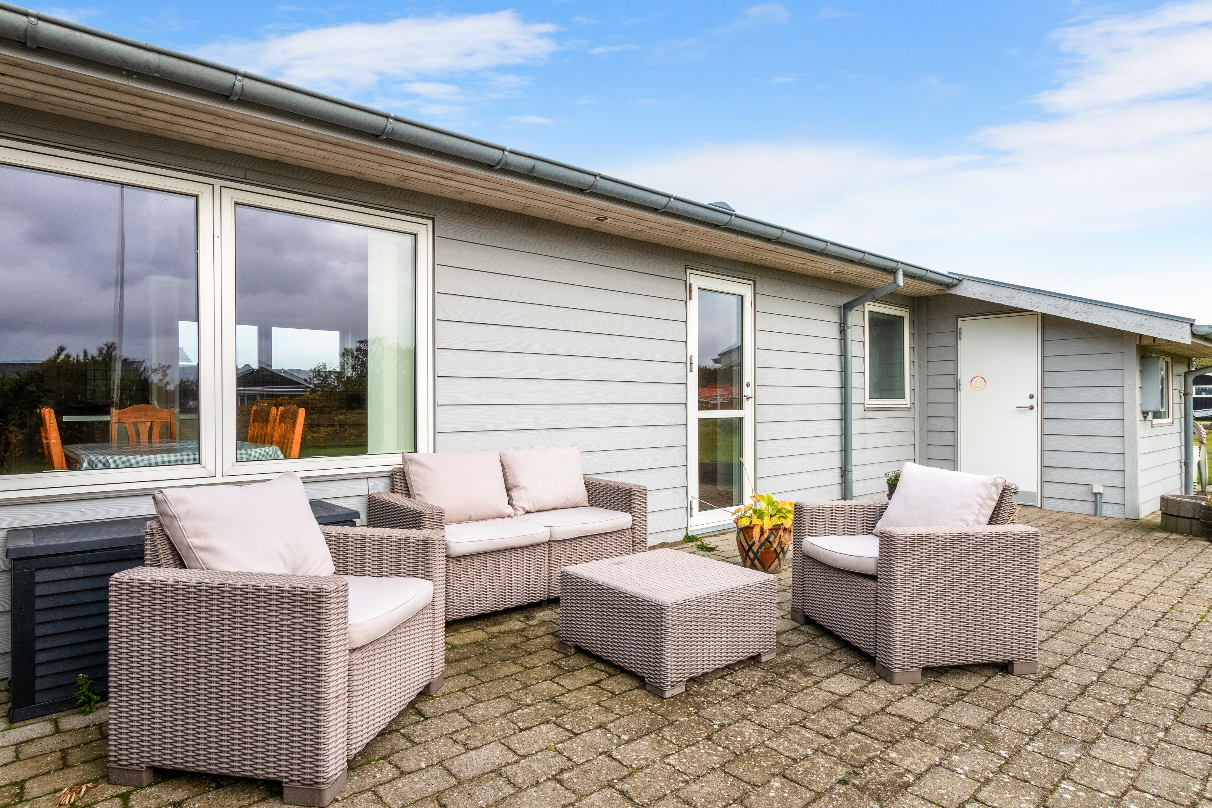 It is not often that you see a light gray holiday home in Løkken, Denmark. But allow us to present one of the rarities here -> Welcome to Magnus Christensens Vej 14! Here you will find a charming holiday home for rent with room for 8 people and two pets. As mentioned, the house is light grey, and both inside and out it is a bright and airy holiday home. The atmosphere is relaxed and cozy, and the house invites you to a Danish summer holiday at its best. You can lounge in the cozy couch arrangement or take a seat at one of the lovely sun spots on the terraces - where you can choose between dining tables and chairs, or beautiful outdoor lounge furniture. In the large kitchen, there is plenty of space to show off your culinary skills while chatting with your fellow vacationing guests in the open kitchen/dining room.