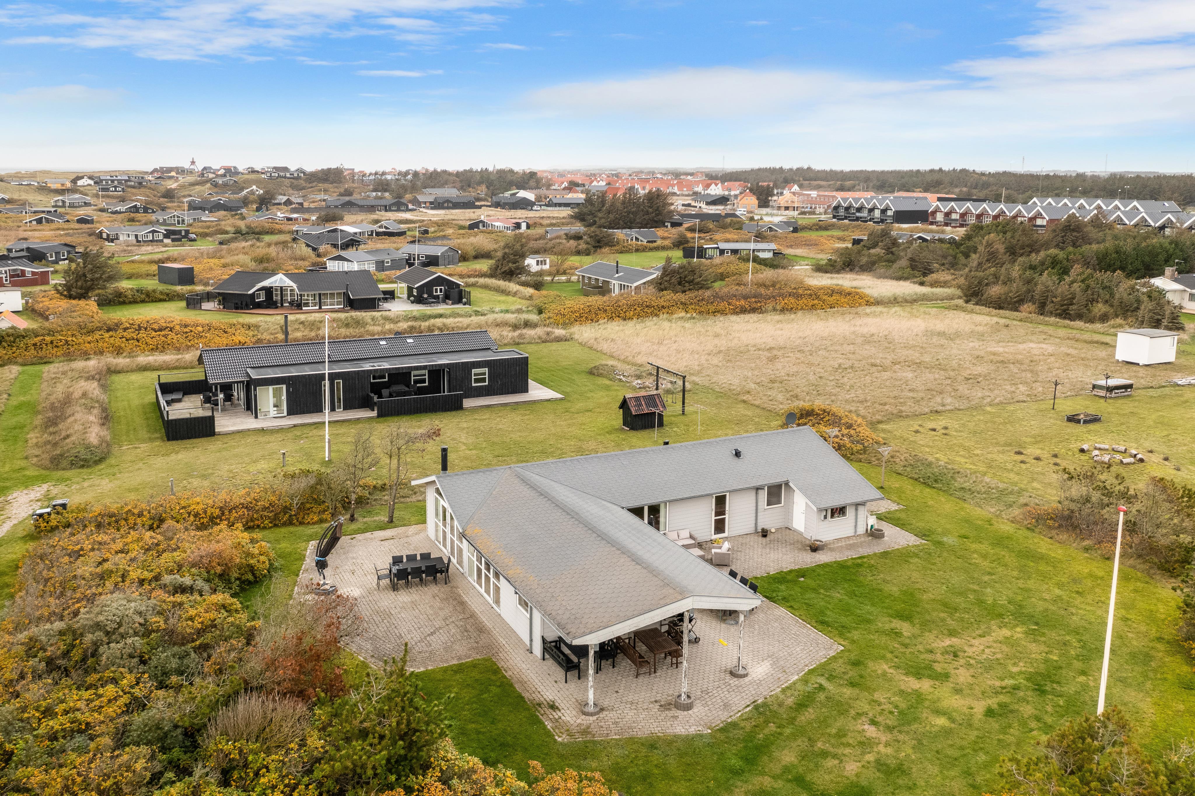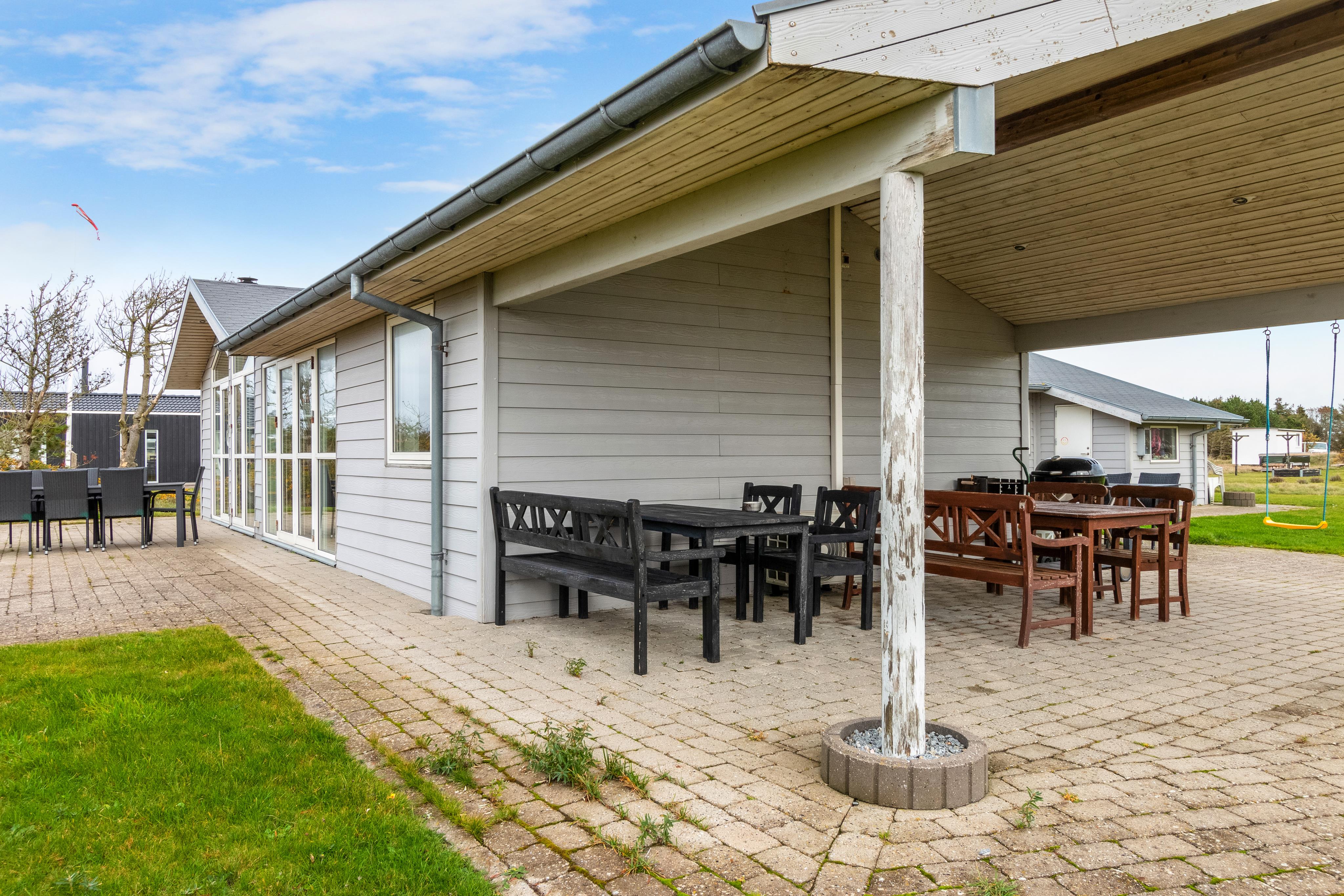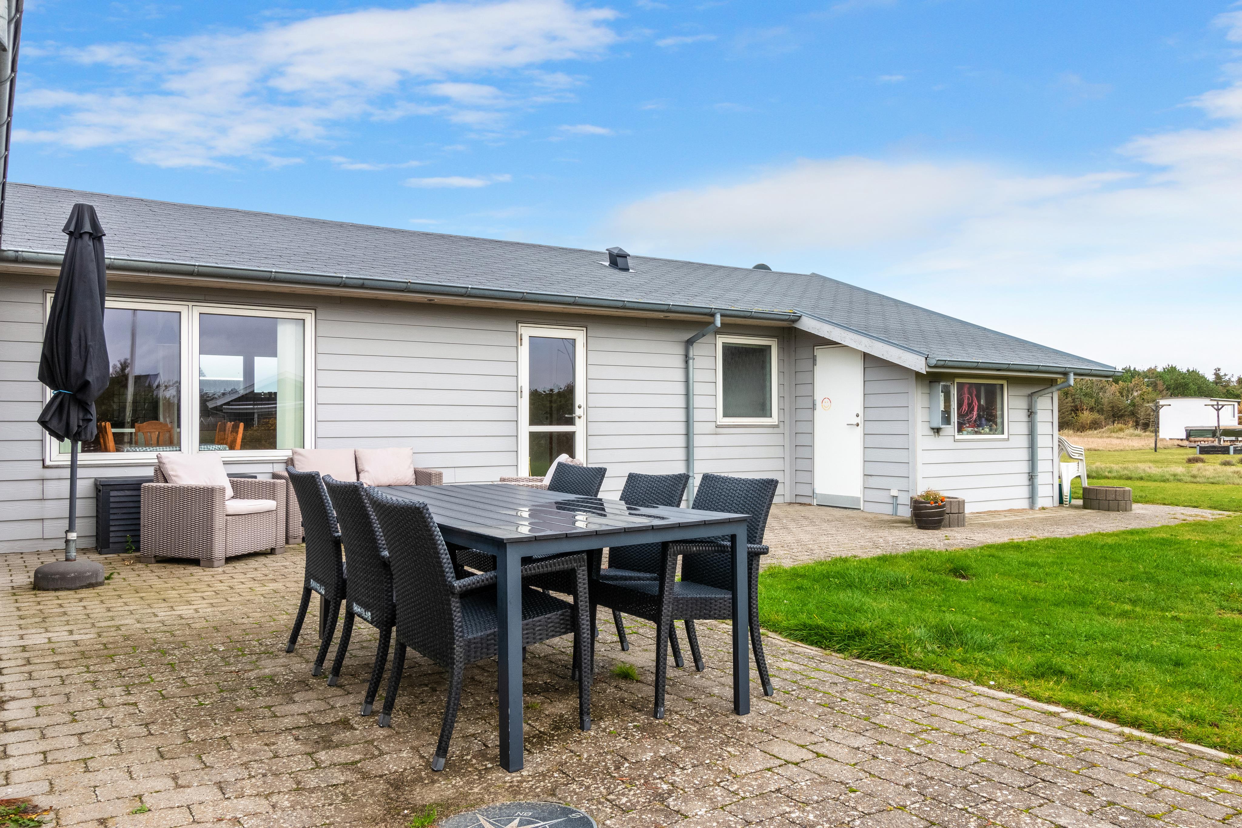 It is not often that you see a light gray holiday home in Løkken, Denmark. But allow us to present one of the rarities here -> Welcome to Magnus Christensens Vej 14! Here you will find a charming holiday home for rent with room for 8 people and two pets. As mentioned, the house is light grey, and both inside and out it is a bright and airy holiday home. The atmosphere is relaxed and cozy, and the house invites you to a Danish summer holiday at its best. You can lounge in the cozy couch arrangement or take a seat at one of the lovely sun spots on the terraces - where you can choose between dining tables and chairs, or beautiful outdoor lounge furniture. In the large kitchen, there is plenty of space to show off your culinary skills while chatting with your fellow vacationing guests in the open kitchen/dining room.