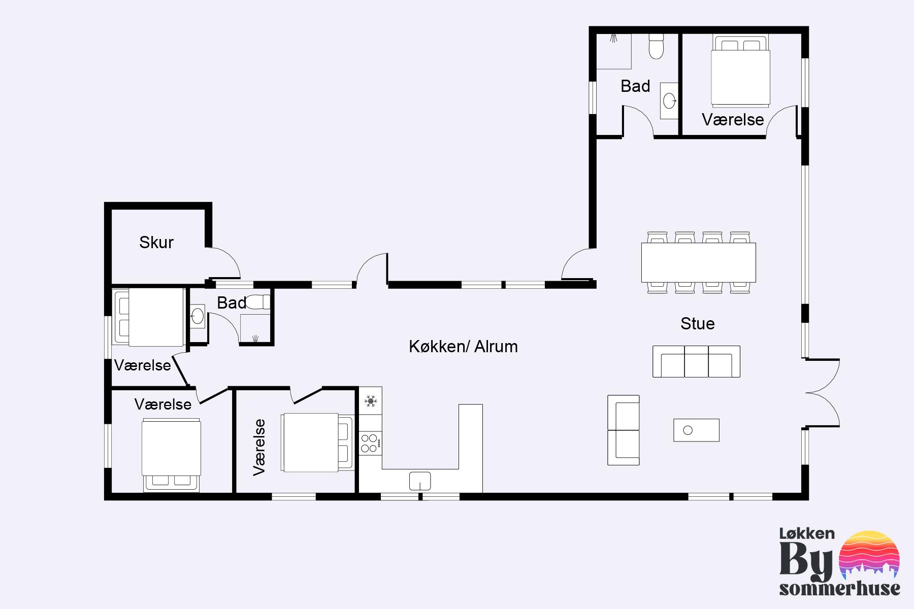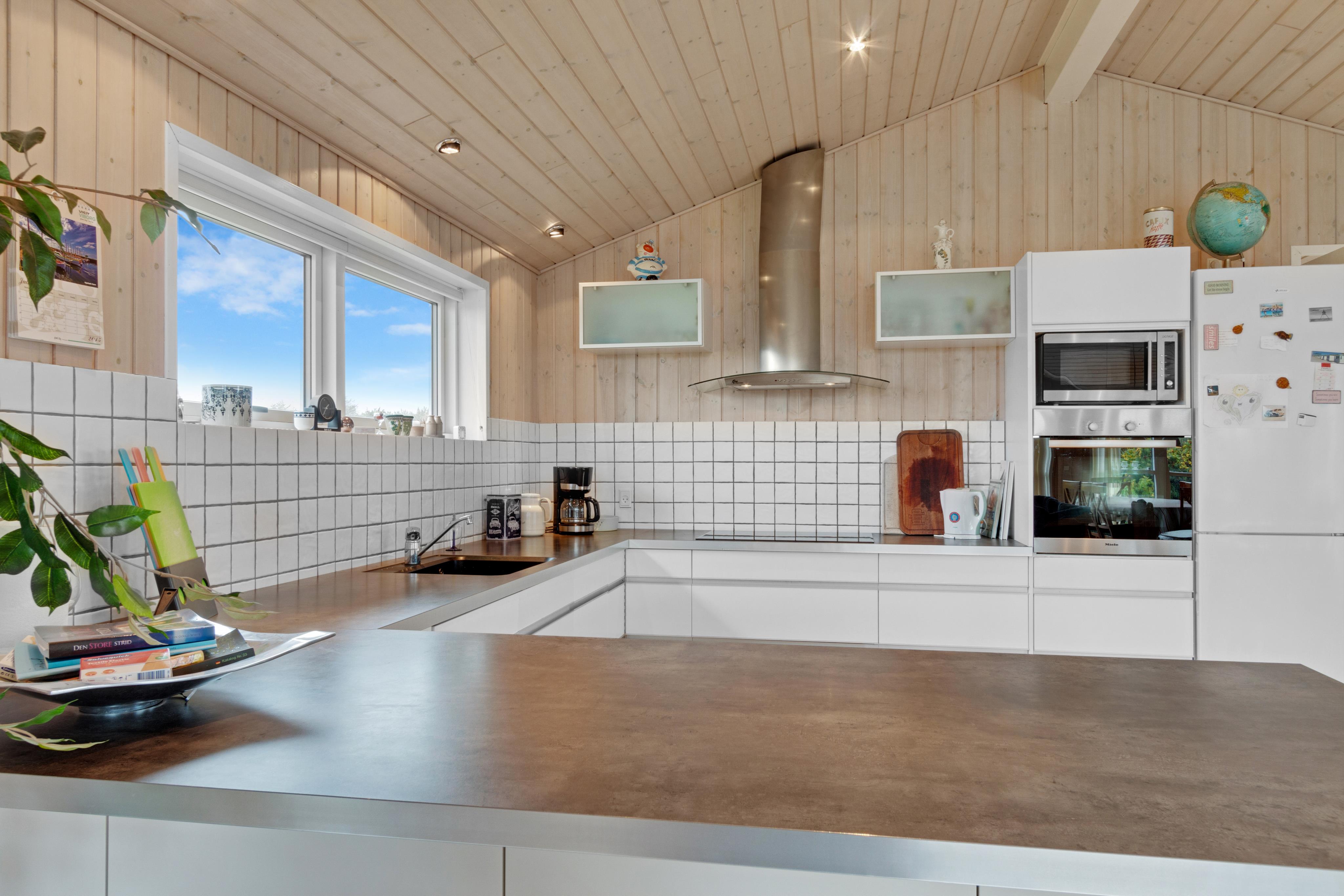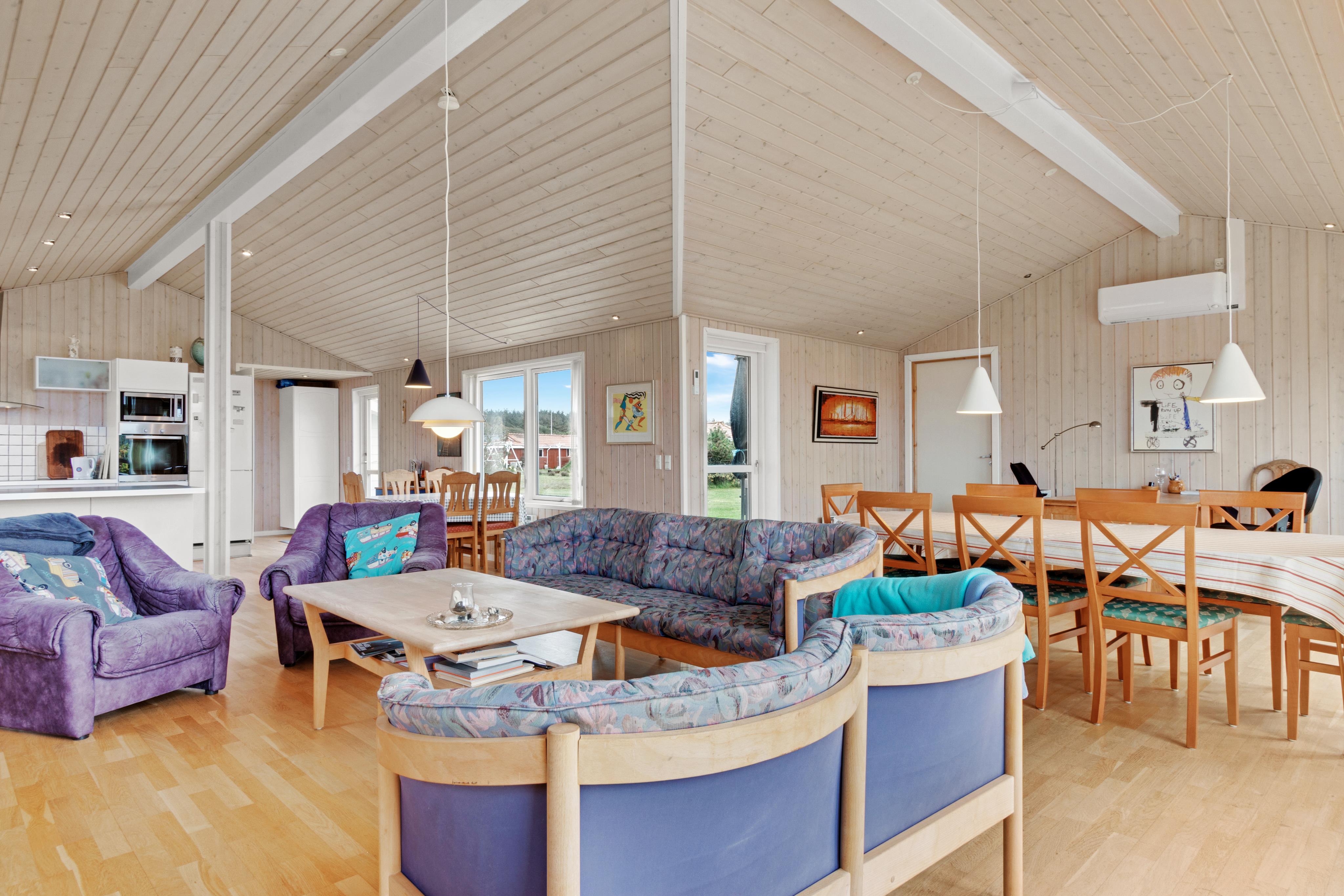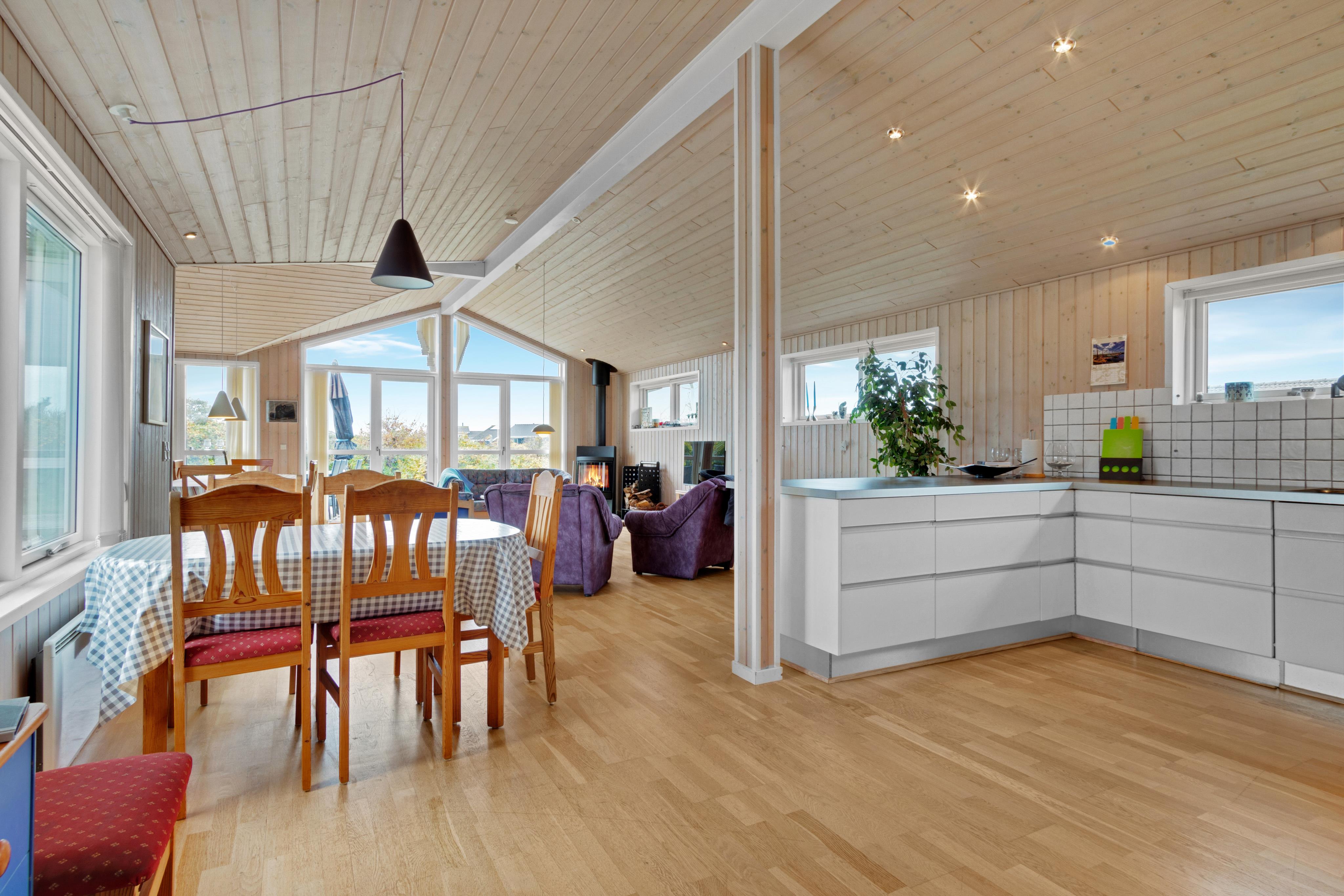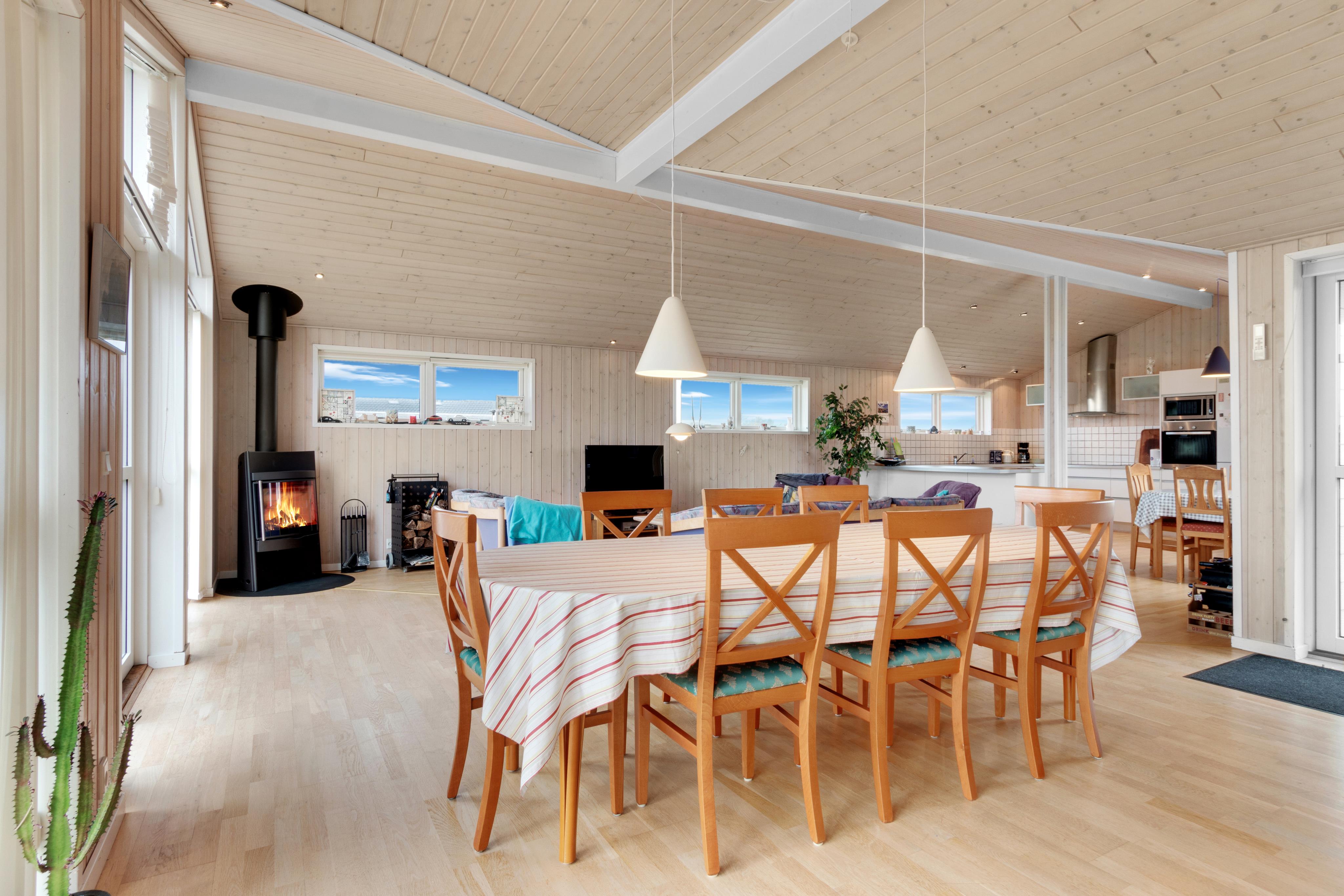 If you are familiar with Løkken, you also know how beautiful Magnus Christensens Vej itself is. The road branches over a larger area, and everywhere you can find paths to the beach or roads to the city. You will find the beach with the lovely beach houses approx. 600 meters away from the holiday home, while the road to town and shopping creeps up on a distance of a kilometer. You are thus a short distance from most of what you would need on your vacation in a holiday home in Løkken. And if the weather doesn't cooperate, you can enjoy indoor coziness by the wood-burning stove. Naturally, there is also an air conditioner installed for both cold and hot days, as well as underfloor heating in the bathrooms.