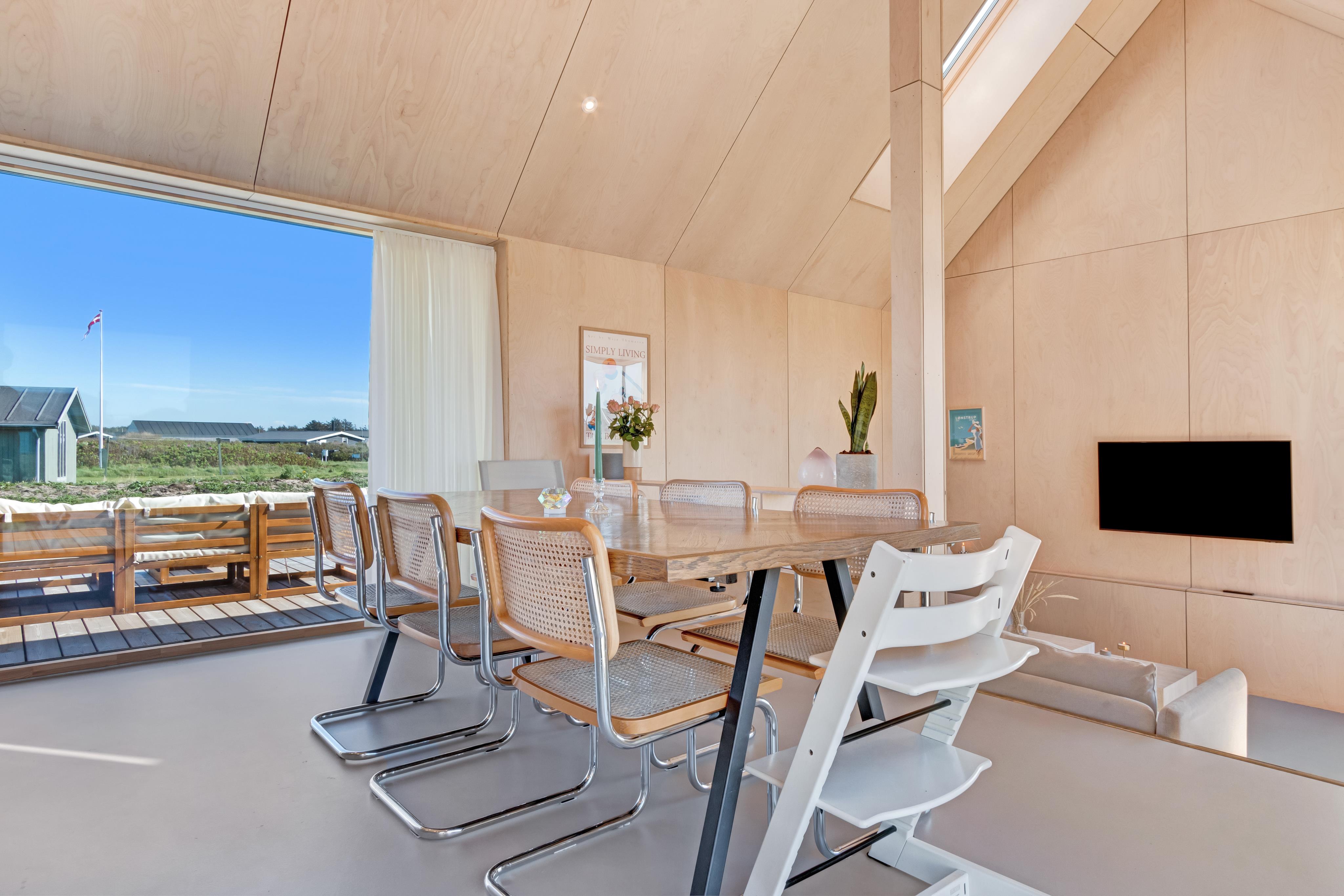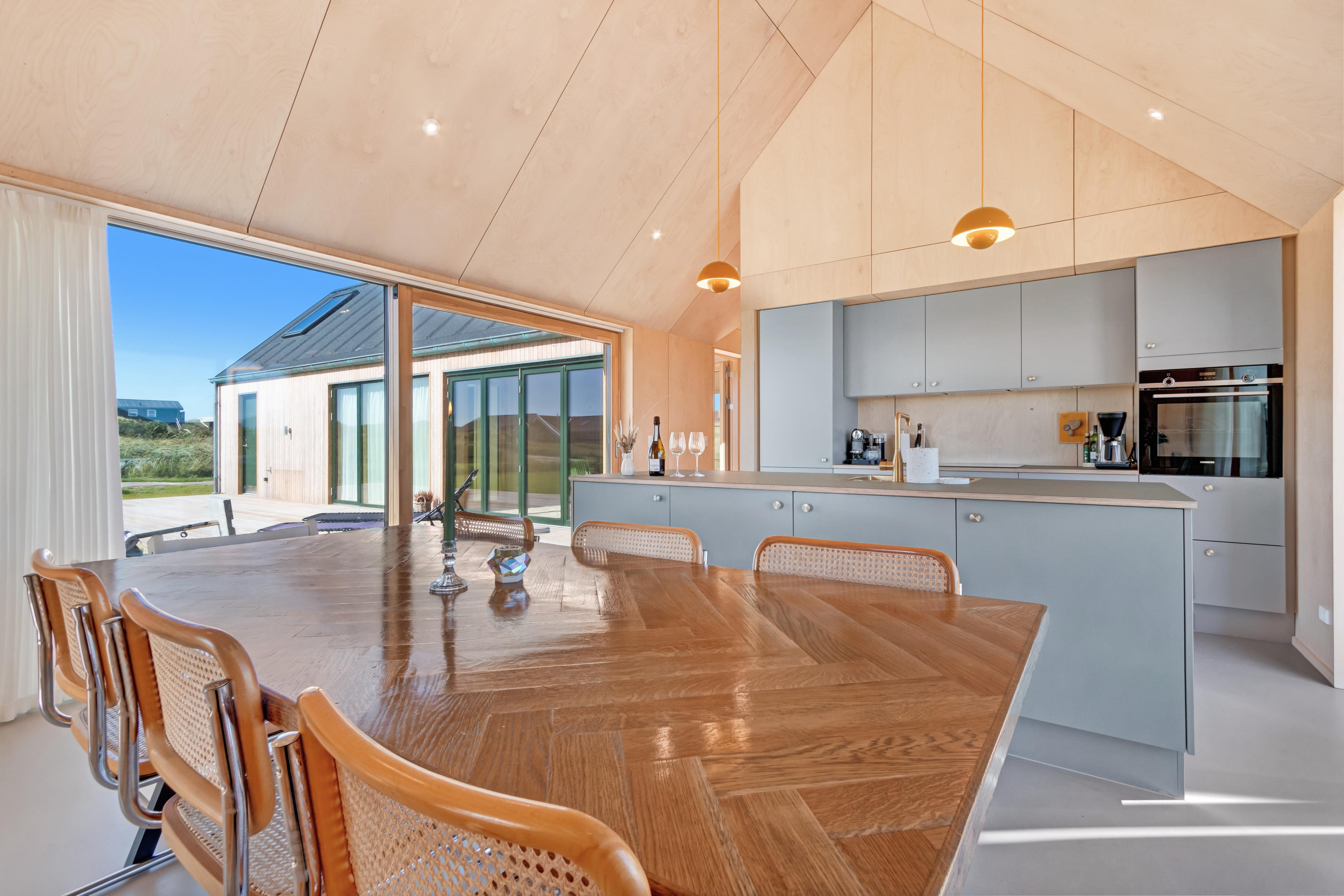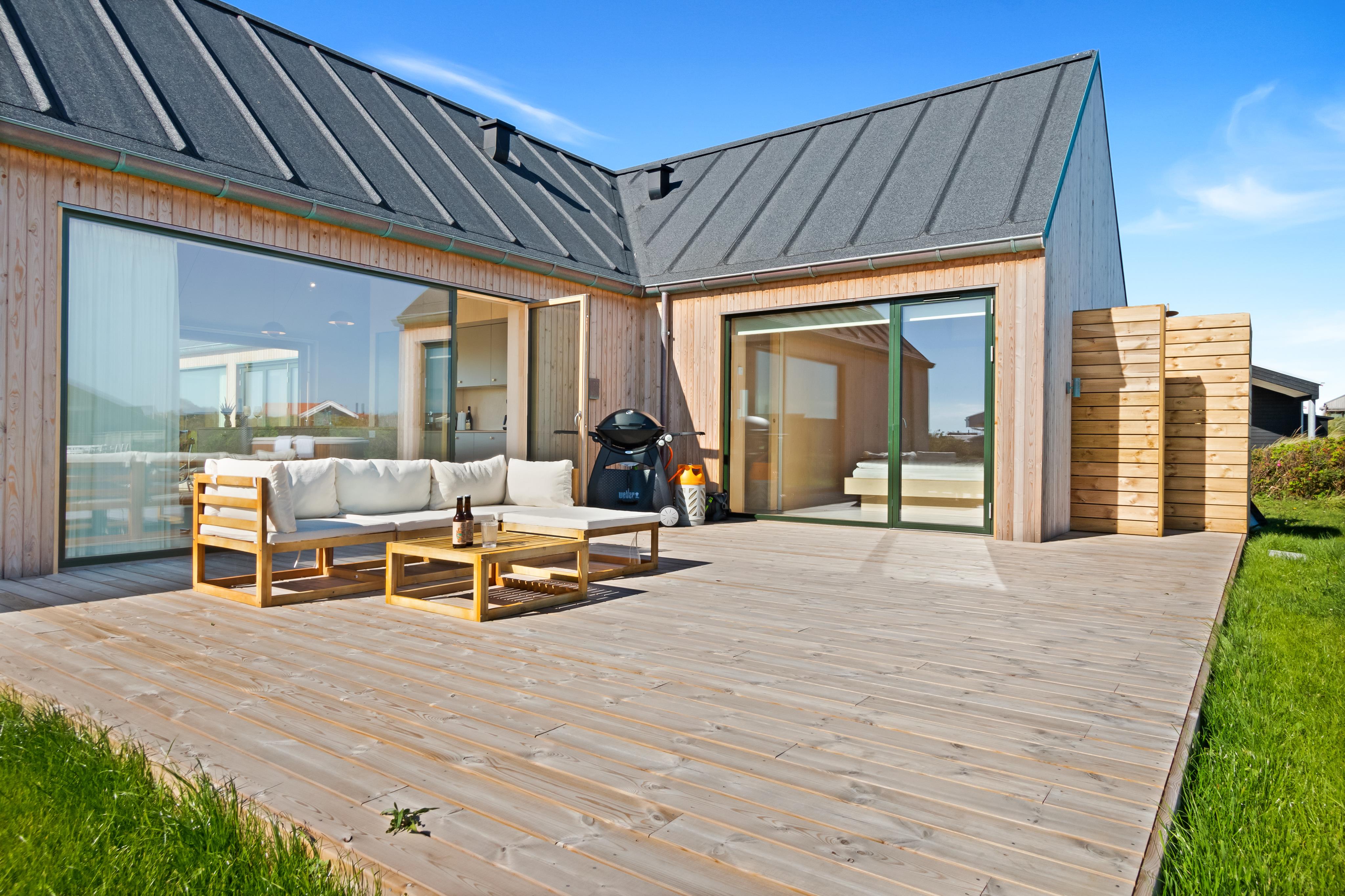 The owners of the house have chosen to build it in a special and unique style rarely seen in holiday homes. Exclusive materials and style have been used throughout the house, and the living room is designed in a staggered layout, allowing you to sit and gaze out over the area at eye level with the nature outside the windows. The house is spacious, new, and very close to the coast, offering both indoor and outdoor living spaces for your holiday enjoyment.