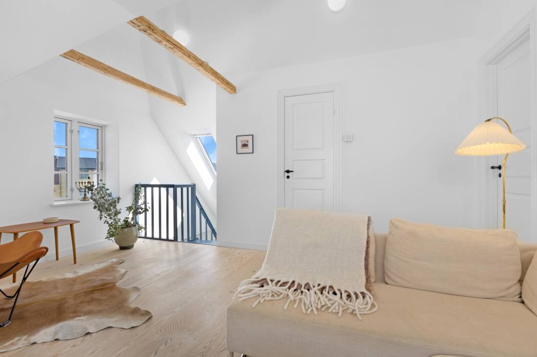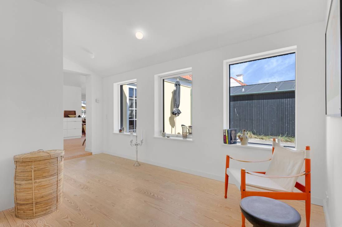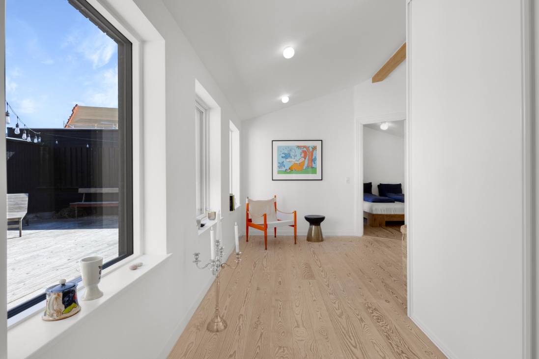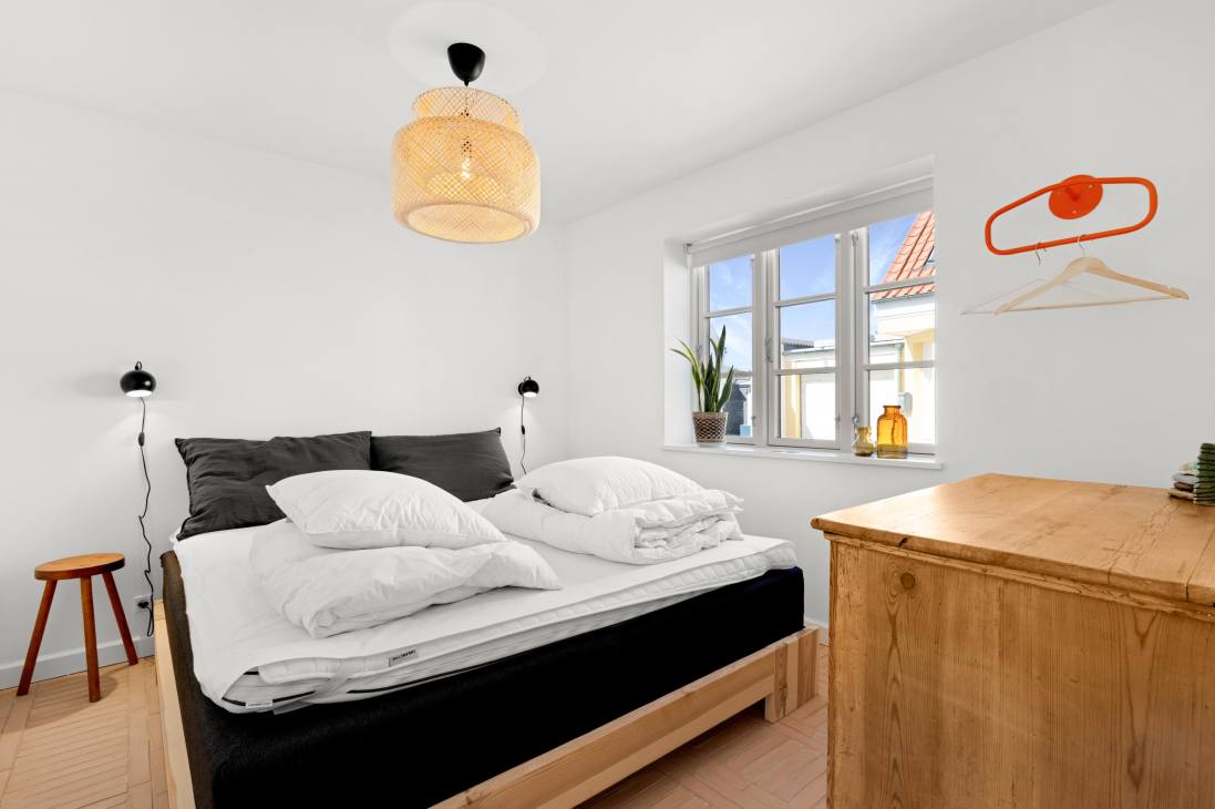 Neben der Lage 100 Meter vom Strand und im Stadtzentrum finden Sie im Innenbereich zuerst die super charmante Treppe und die Eingangshalle. Dann kommt ein wirklich schönes und gemütliches Wohnzimmer mit einer hellen und offenen Küche, Esszimmer und Wohnzimmer. Die gesamte Einrichtung des Hauses lädt sowohl zu gemeinsamen als auch zu individuellen Aktivitäten ein - von gemütlichen Fernsehecken bis zum einladenden Lounge-Bereich im ersten Stock. Es gibt auch einen schönen Außen-Loungebereich in Form der sonnigen Terrasse, die von der Nordre Strandvej weg zeigt und schön privat ist. Das Ferienhaus bietet Platz für 6+1 Personen.
