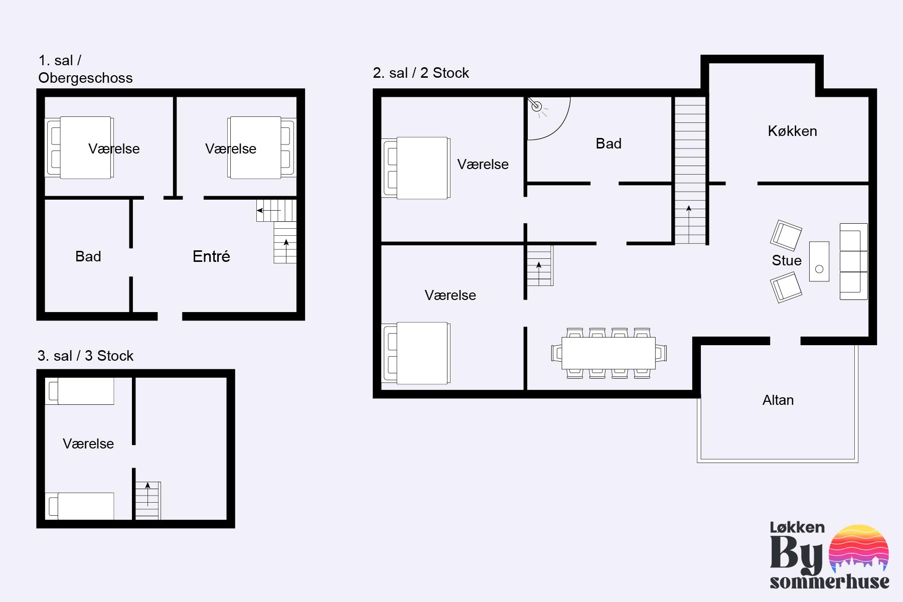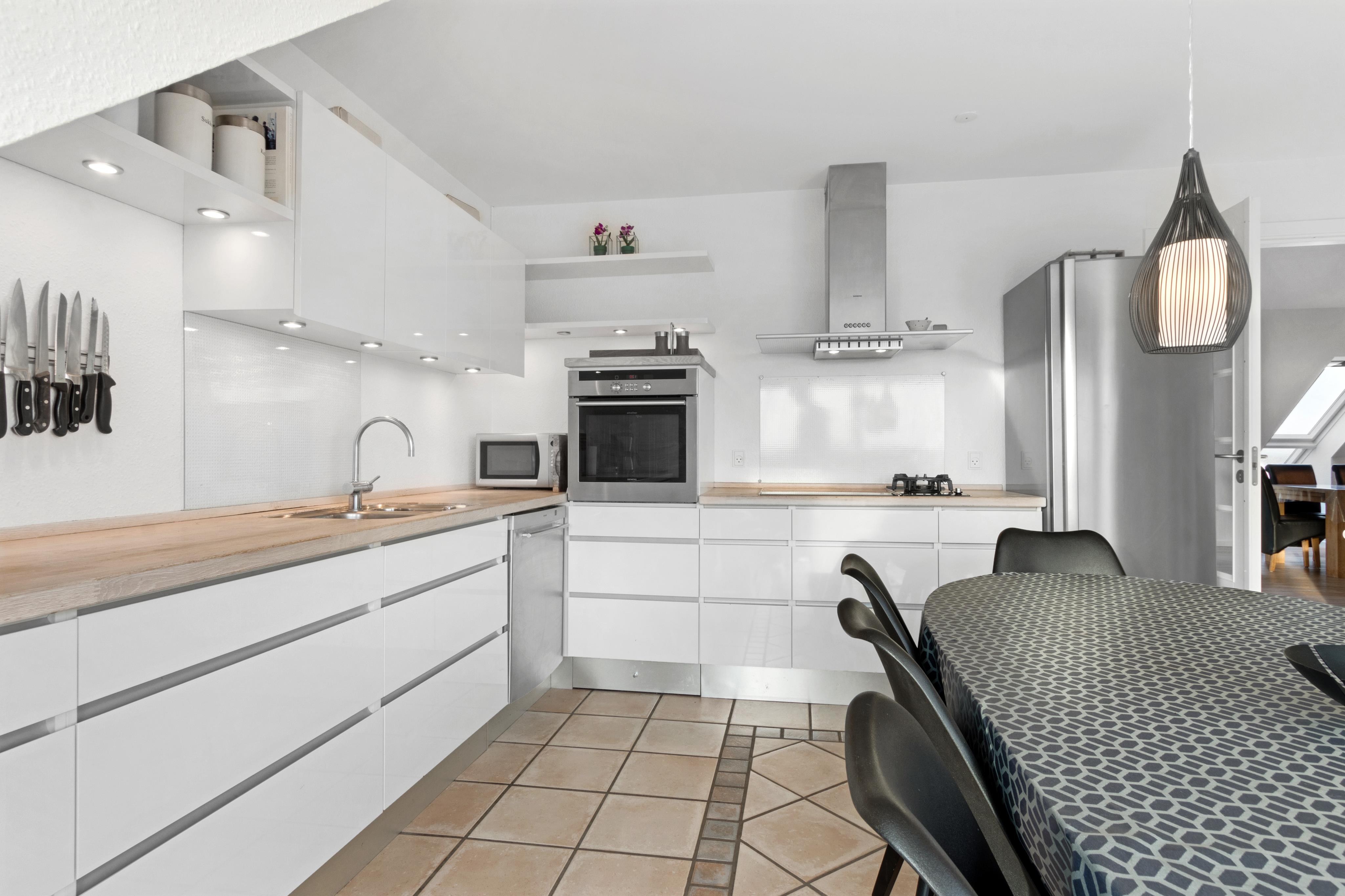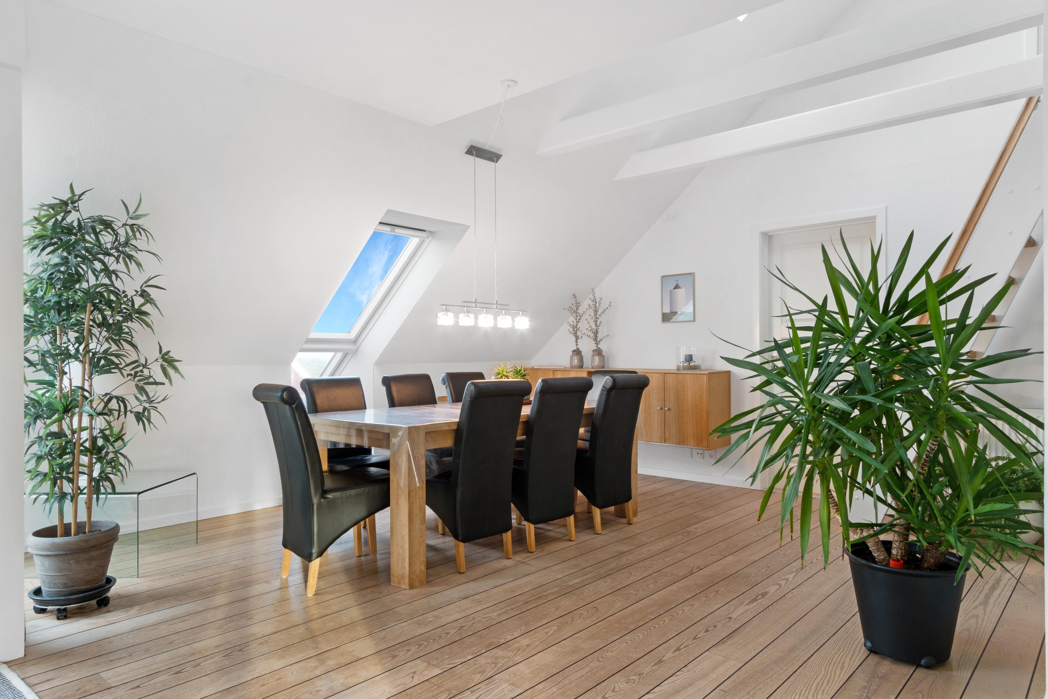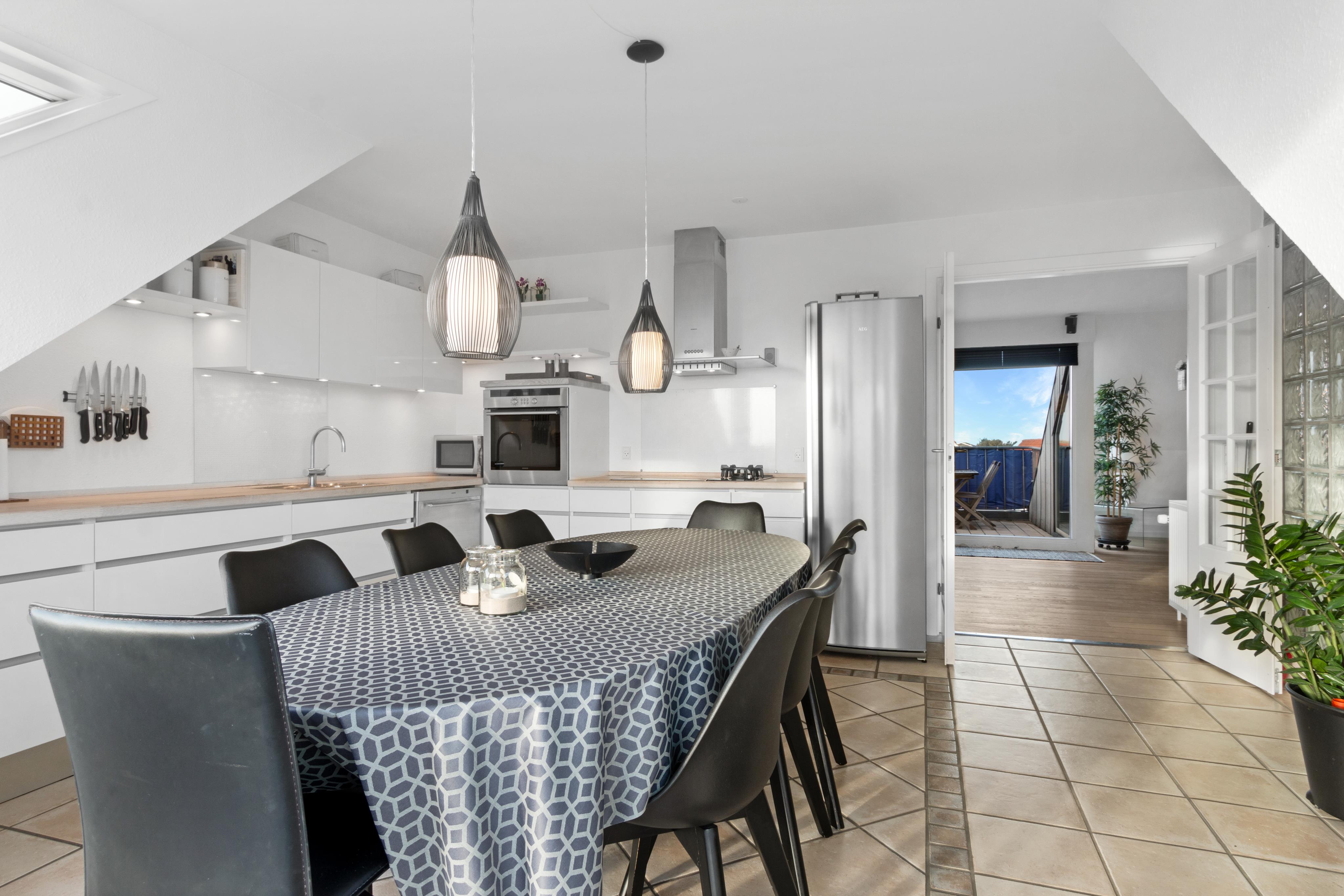 At By Sommerhuse in Denmark, we generally don't have a tendency to exaggerate - we would almost rather undersell than raise expectations too high. But this holiday apartment, located in the absolute center of Løkken in Denmark, is truly a gem of a holiday rental. The apartment is on two floors + a loft with a separate bedroom, and the view over both the city of Løkken and the North Sea is definitely worth a visit! There is room for 10 people and a child up to 3 years old. There are 5 bedrooms and two bathrooms spread over the wonderful 172 m² - 8 sleeping places in double beds and 2 in single beds. In addition, there is 1 children’s bed, and you are allowed to bring your pet. There is floor heating in the kitchen and in both bathrooms. In addition, there are several super characteristics of the apartment.
