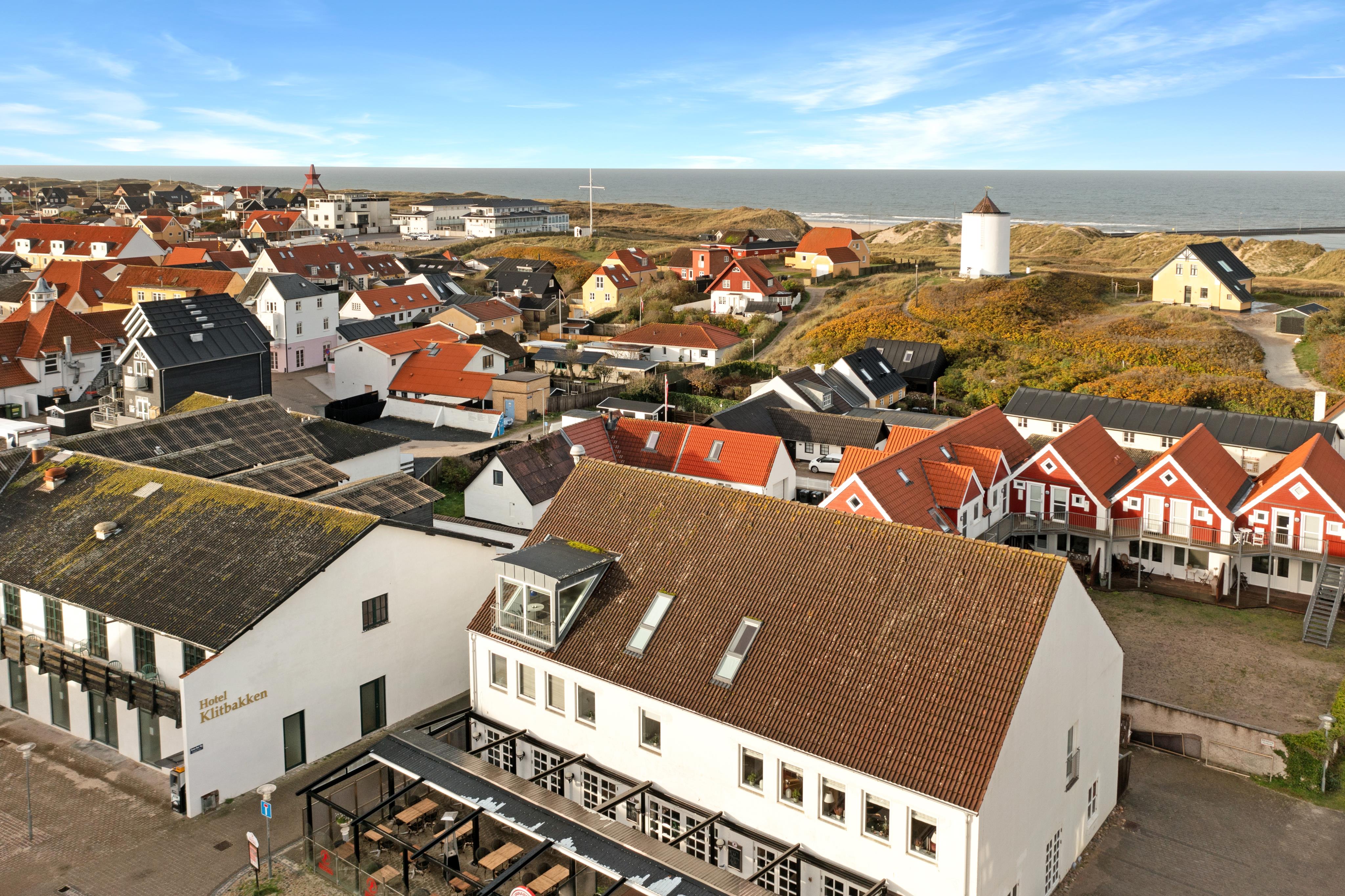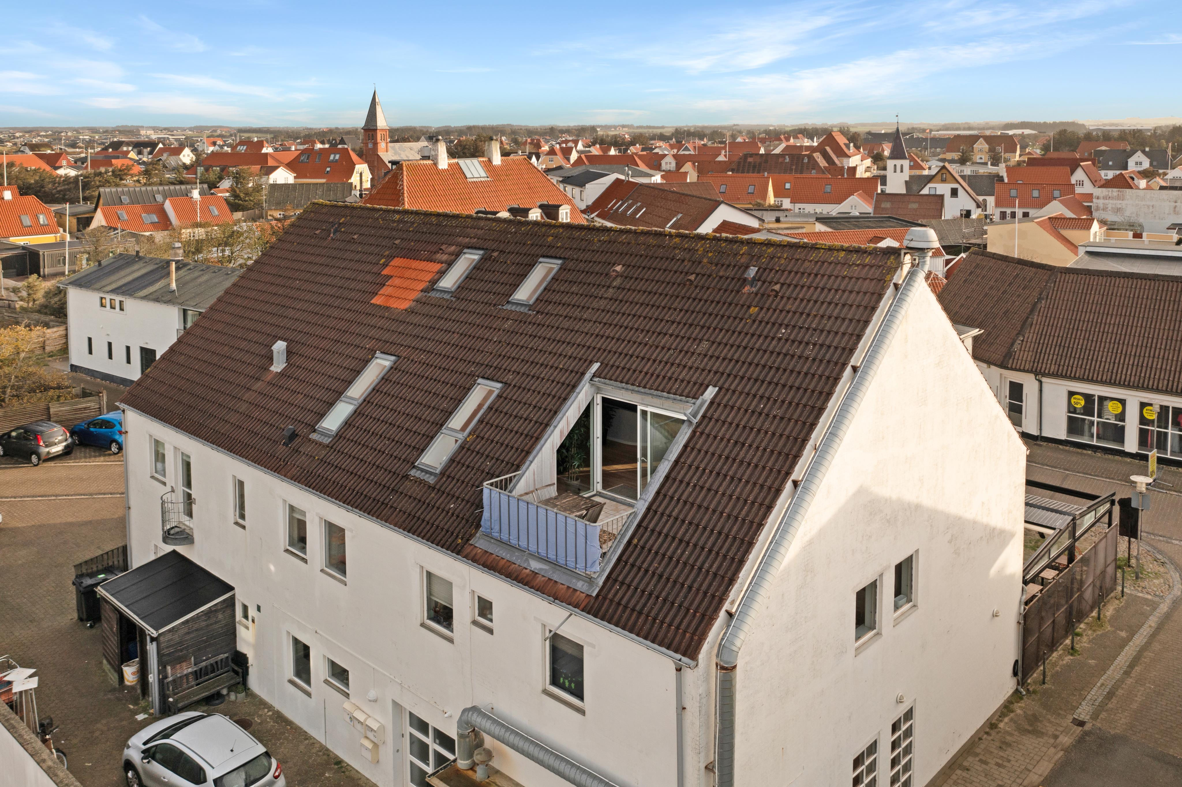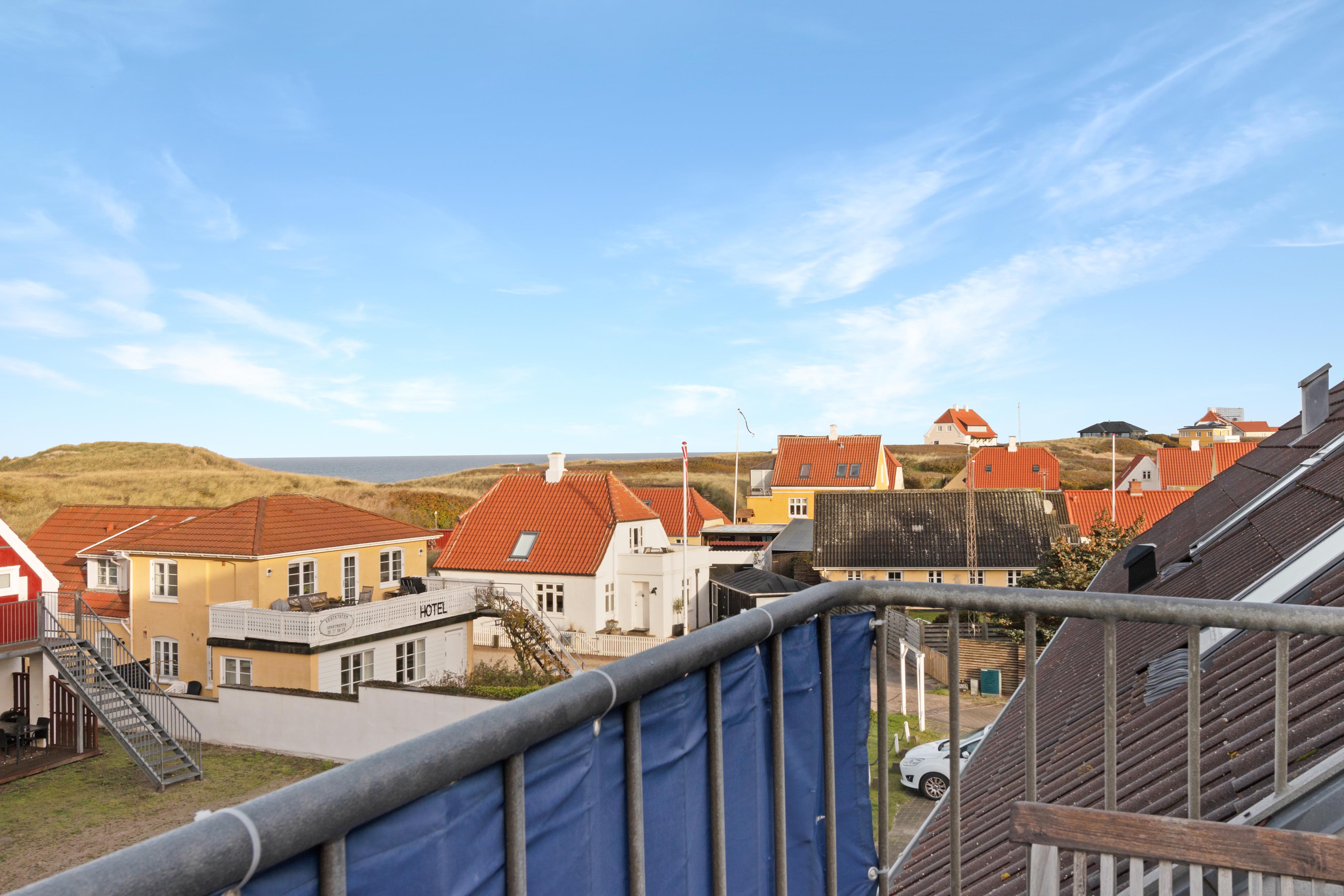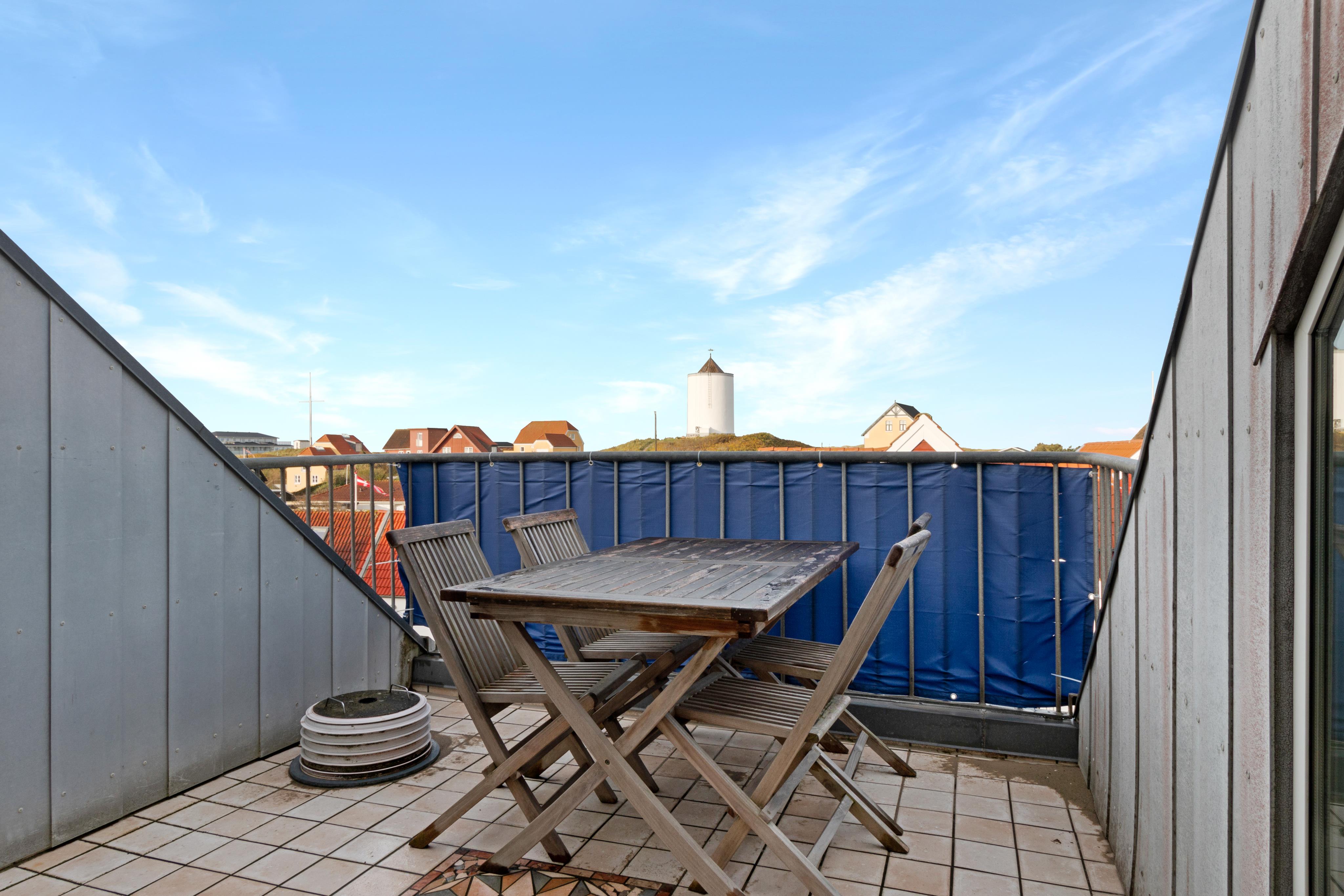 The holiday apartment in Nørregade 5c is, as mentioned, in the center of Løkken - actually in the pedestrian street itself, approximately twenty steps from the town square. When you step out of the building, you are therefore immediately surrounded by restaurants, a wine bar and a shopping environment in immediate connection to several trails leading to the North Sea. However, despite the apartment's super central location, you can actually be quite private when you stay in it. There are only a few passers-by on the street who look up, so you can stand undisturbed in a bathing suit and watch the life of the street from the large window that looks out onto the street from the holiday home's inviting kitchen/dining area. On the other side of the apartment, you will find the living room and a beautiful, open 60 m² terrace, from which you have a 180 degree view of the North Sea across a few of the city's roof ridges. You also have a view of some of Løkken's landmarks, and the terrace is screened off so you can sunbathe in peace.