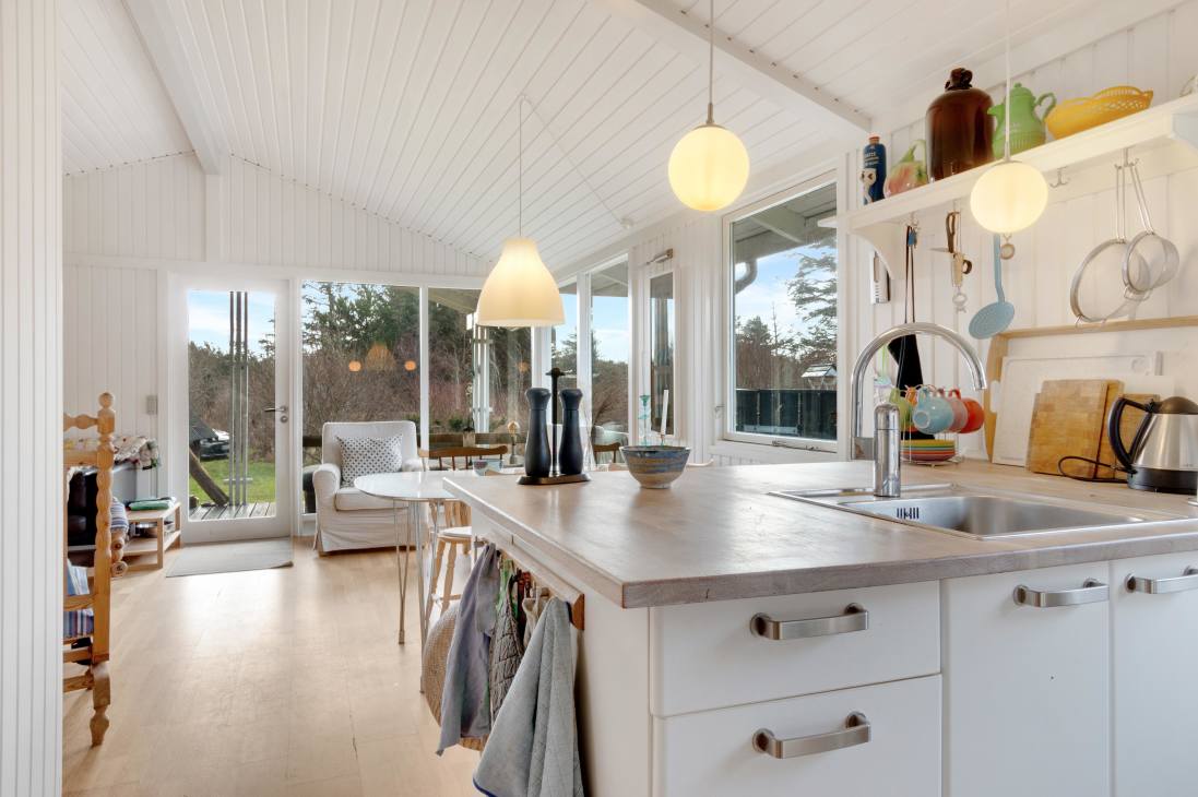 This holiday home in Rubjerg Denmark is truly charming! In the super cozy living room, you will find a lovely wood-burning stove, and here the seed is laid for many hours of relaxation. The living room is an open extension of the dining room and kitchen, and you can spend quality time with each other and get down to gear! There are two bedrooms, one of which has a double bed and the other has two single beds. In the garden you can enjoy an undisturbed place in the sun when the Danish summer is mild. And otherwise it is obvious to move inside to one of the cozy rooms in the holiday home. If you are up for a walk to the beach, you will find the waterfront less than 600 meters away. Shopping opportunities are a bit further away - but those 2.5 kilometers is an easy walk!