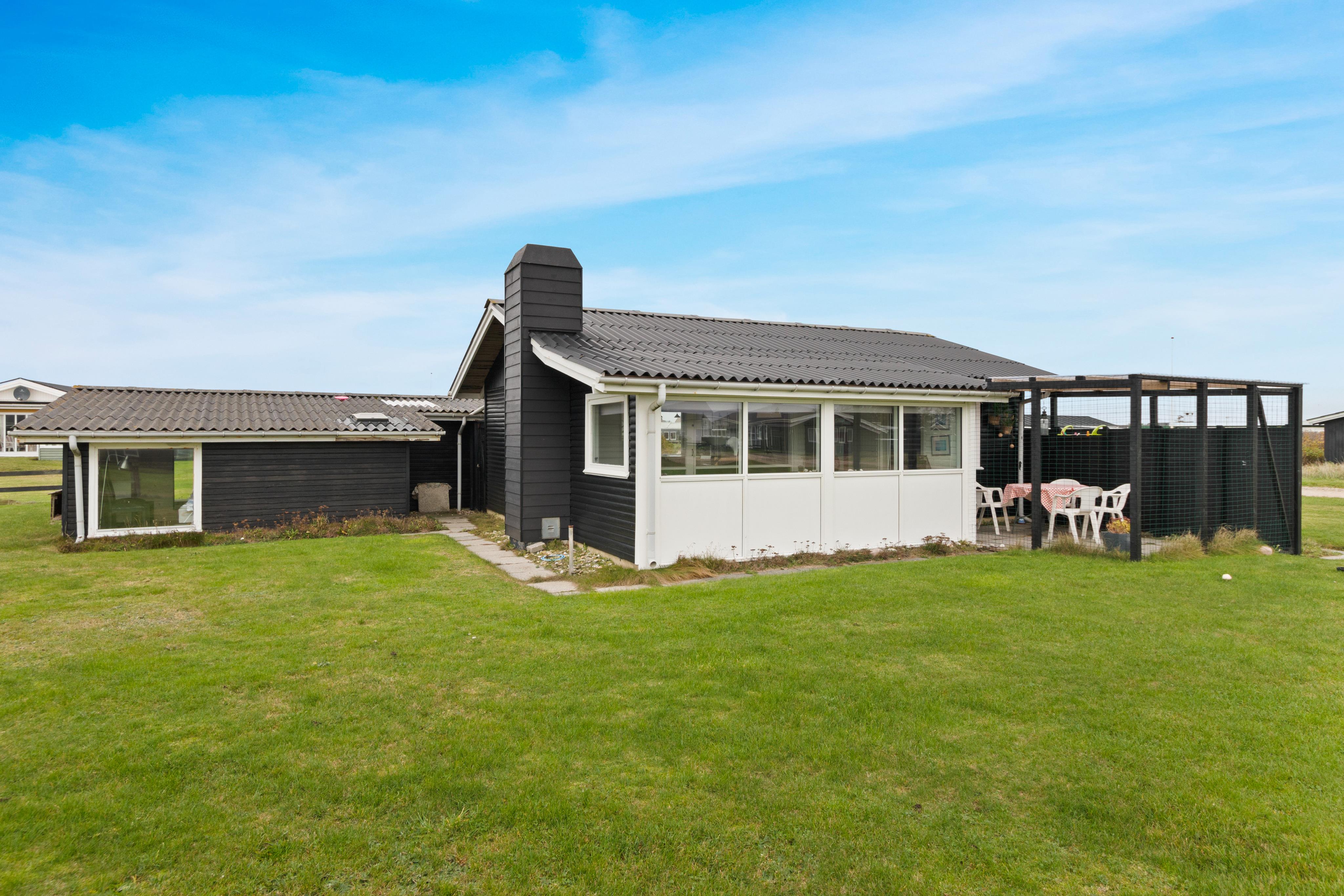 Furreby is just a super lovely area for holiday homes, and on Ørnevej, you'll find this really cozy cottage. It doesn't have modern facilities, and it allows for a close connection with each other in the house. The kitchen/living room blend into one room where you can spend many hours by the fireplace playing cards while preparing food. From the living room, there is the coziest conservatory where it's perfect to sit and enjoy the candlelights after dinner. The bathroom is located in the annex, and there is a toilet inside the holiday home. If you have a cat, the house offers a nice aviary so you can safely bring it with you on vacation.