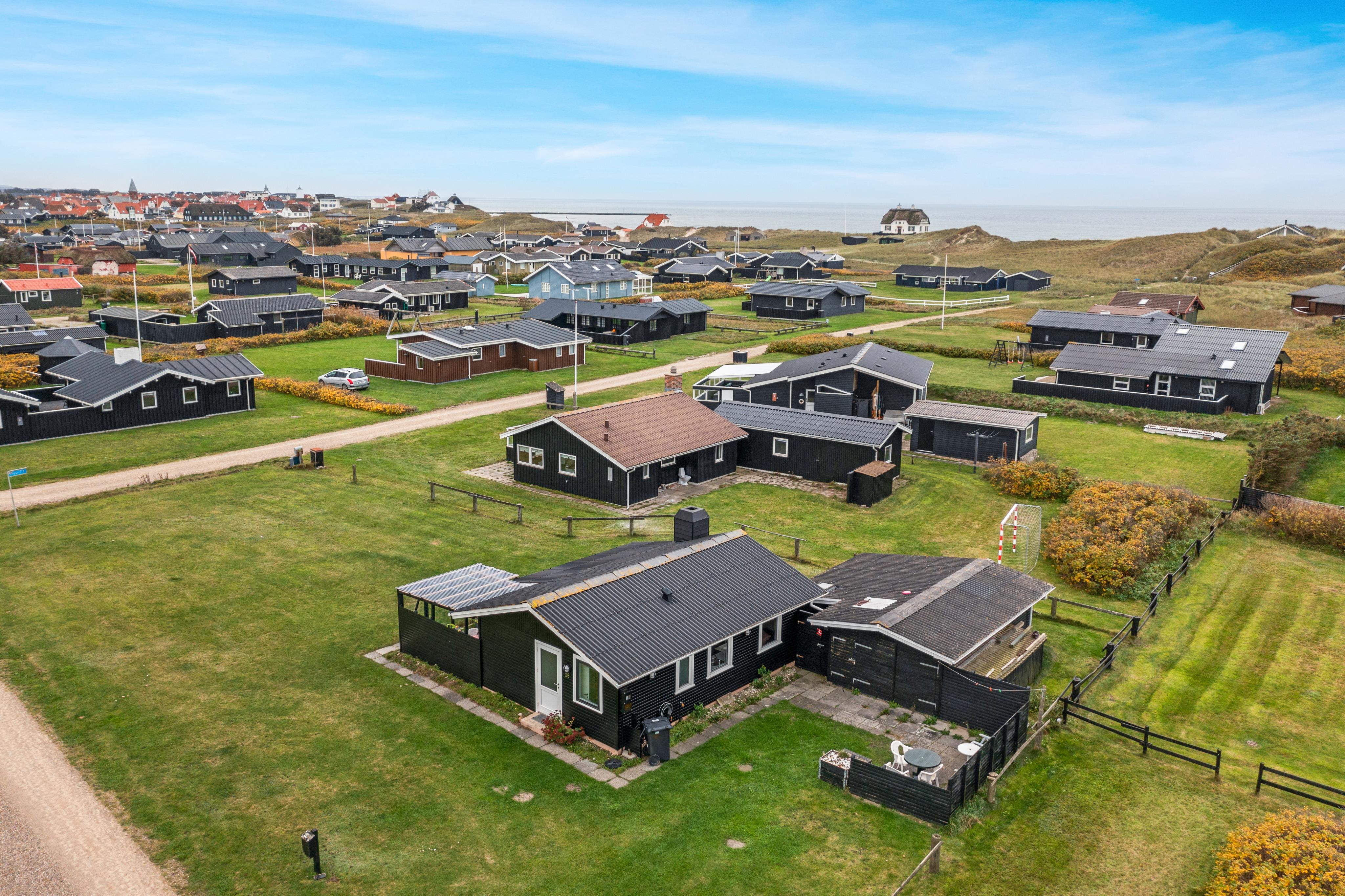 The holiday home is located on an 815 sqm natural plot in the middle of lovely Furreby, which is a quiet and charming holiday town surrounded by beautiful nature and within a short distance of Løkken center, transportation, and shopping opportunities. There are numerous beach paths to the North Sea, and you only have to walk 200 meters to reach the wide, white sandy beach.