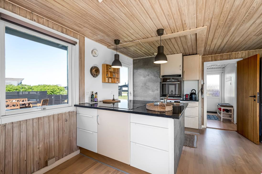 The house is situated on an 815 sqm natural plot in the heart of charming Furreby, a quiet and attractive holiday town surrounded by beautiful nature and just a short distance from Løkken town center, shopping, public transport, and grocery stores. There are numerous paths to the North Sea, and just 200 meters from the house, you'll find the wide, white sandy beach. There are terraces on both sides of the house, allowing you to find sun and shelter and enjoy the lovely holiday surroundings.