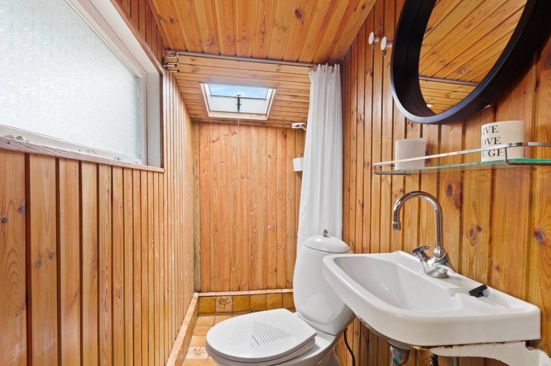 This lovely holiday home offers 40 sqm of living space in the main house, including two bedrooms, a bathroom, kitchen/living area, and TV lounge. The kitchen/living area is bright and welcoming with a wood-burning stove, and from here, you have access to both of the house’s terraces. The kitchen and bathroom in the main house are newly renovated. In addition, there is a 33 sqm garage containing an extra bedroom and bathroom.