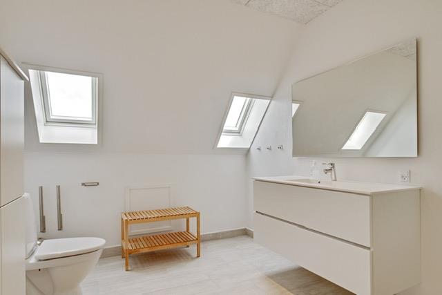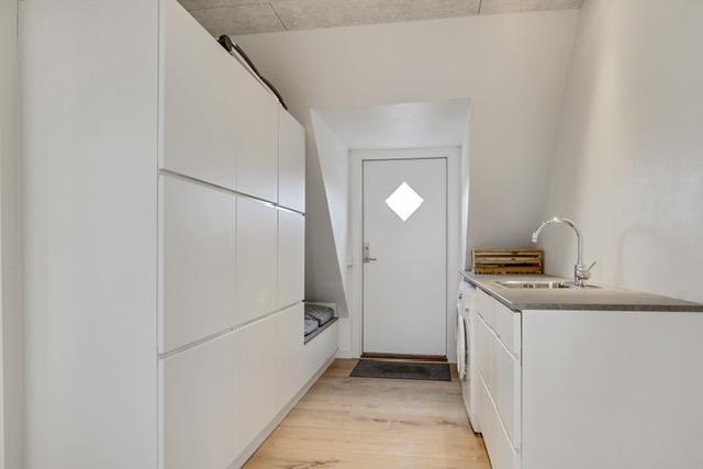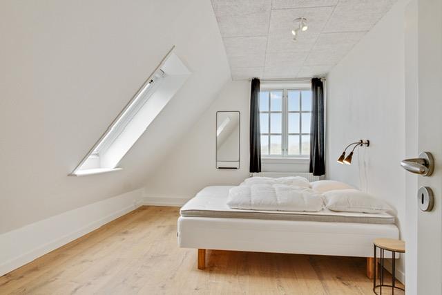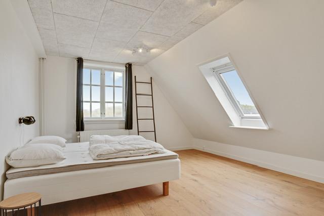 The holiday apartment is practical and beautifully furnished, with a focus on comfort and modern amenities. The apartment is heated with district heating, which is both practical and economically sensible. Large, bright, and lovely kitchen and living room, and everything else your heart desires when renting a modern and newly renovated holiday apartment in Løkken. Two bright bedrooms, cozy sloping walls, exposed beams, and a location in a charming building.