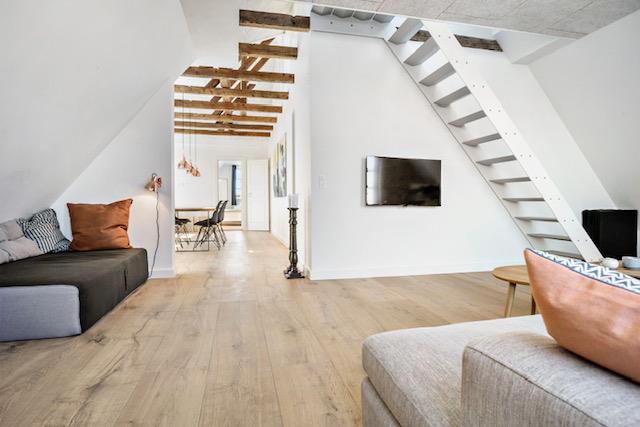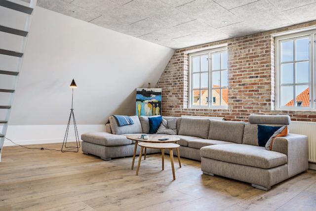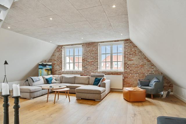 Here on Sdr. Strandvej in Løkken, you will find this absolutely wonderful holiday apartment - for rent through By Sommerhuse! Sea view, the beach just around the corner, and shopping on the sidewalk below. Surfer atmosphere, restaurants, and a wine bar - well, even the greatest pleasure-seeker can enjoy Løkken as a lovely holiday town, both in the summer months and in the off-season. The apartment has a fantastic style, with exposed beams and raw walls that simply beckon for an urban and central vacation by both the city and the beach. There is room for 4 people in the bedrooms and 2 more in the loft.
