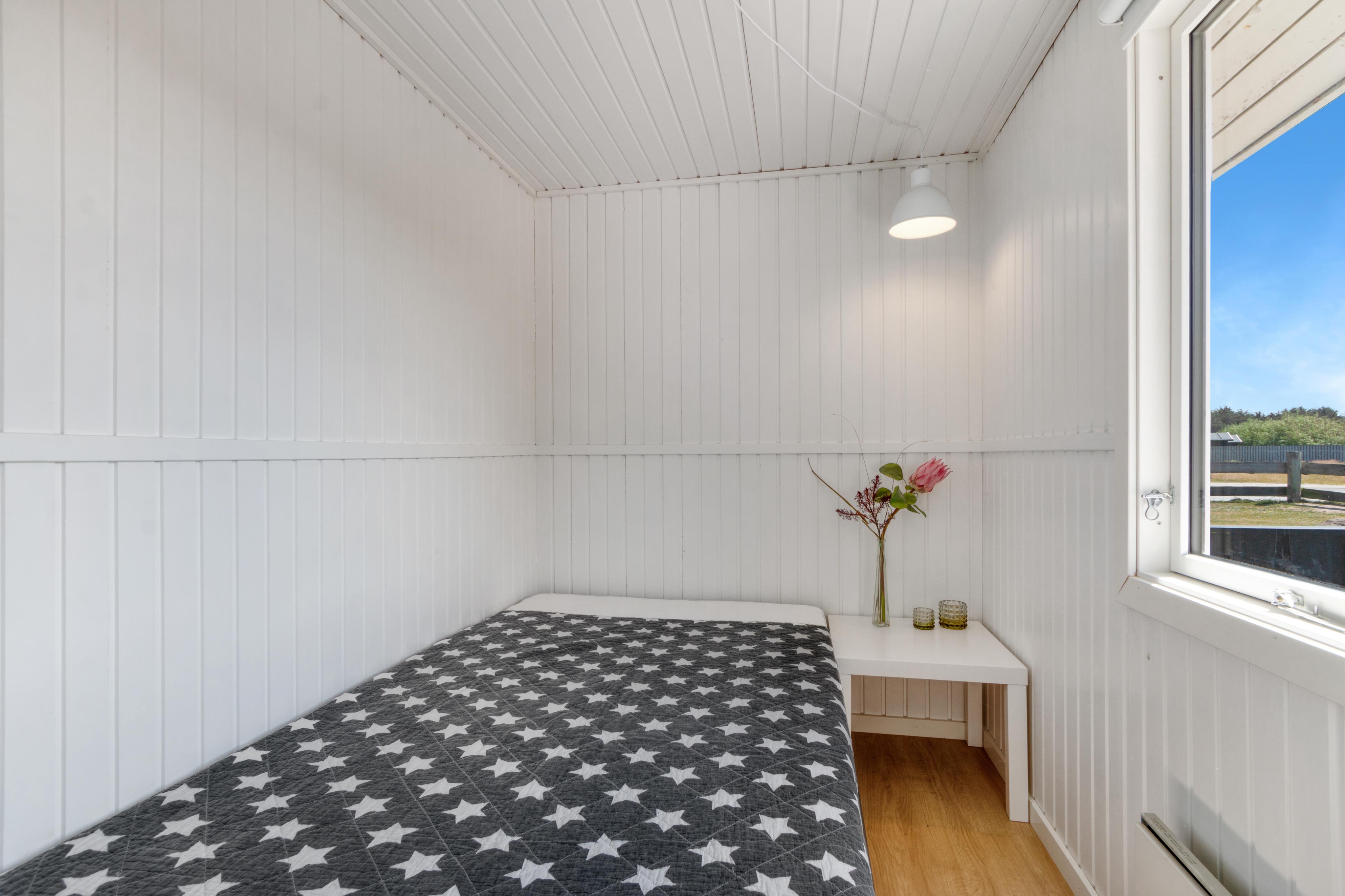 The house was green on the outside and brown on the inside - after short consideration of keeping this look, the owners however surrendered to the black/white style on the outside and completely white and minimalistic on the inside. A top cupboard has been removed from the kitchen in order for the light to flow throughout the whole house. The short bunk beds with cupboards at the end were replaced with bright rooms, new beds and airy hat shelves as well as bedrollers. Nothing fancy, but super functional and minimalistic. It also makes the house very easy to clean and with four bedrooms and a total of seven sleeping accommodations (excluding the lovely corner sofa), this is a big plus.