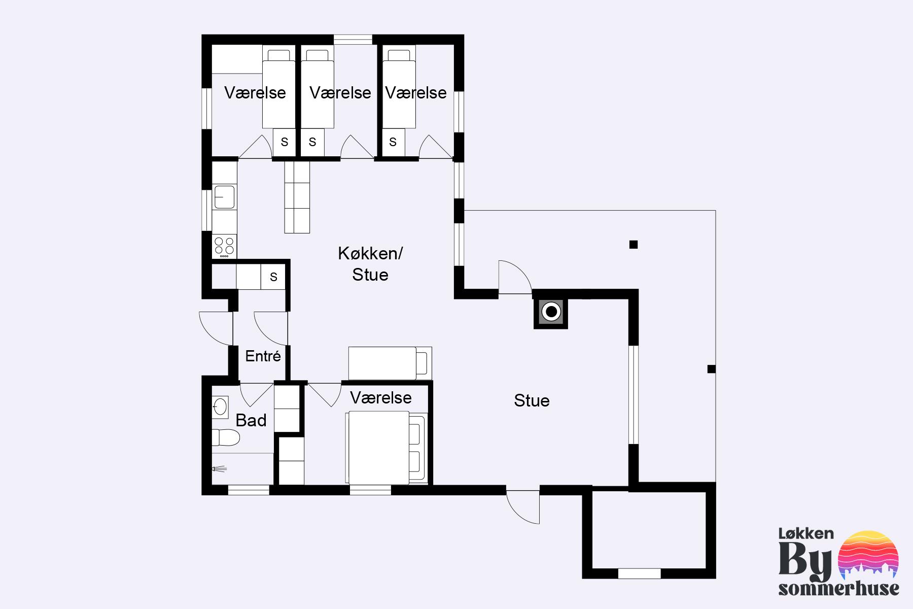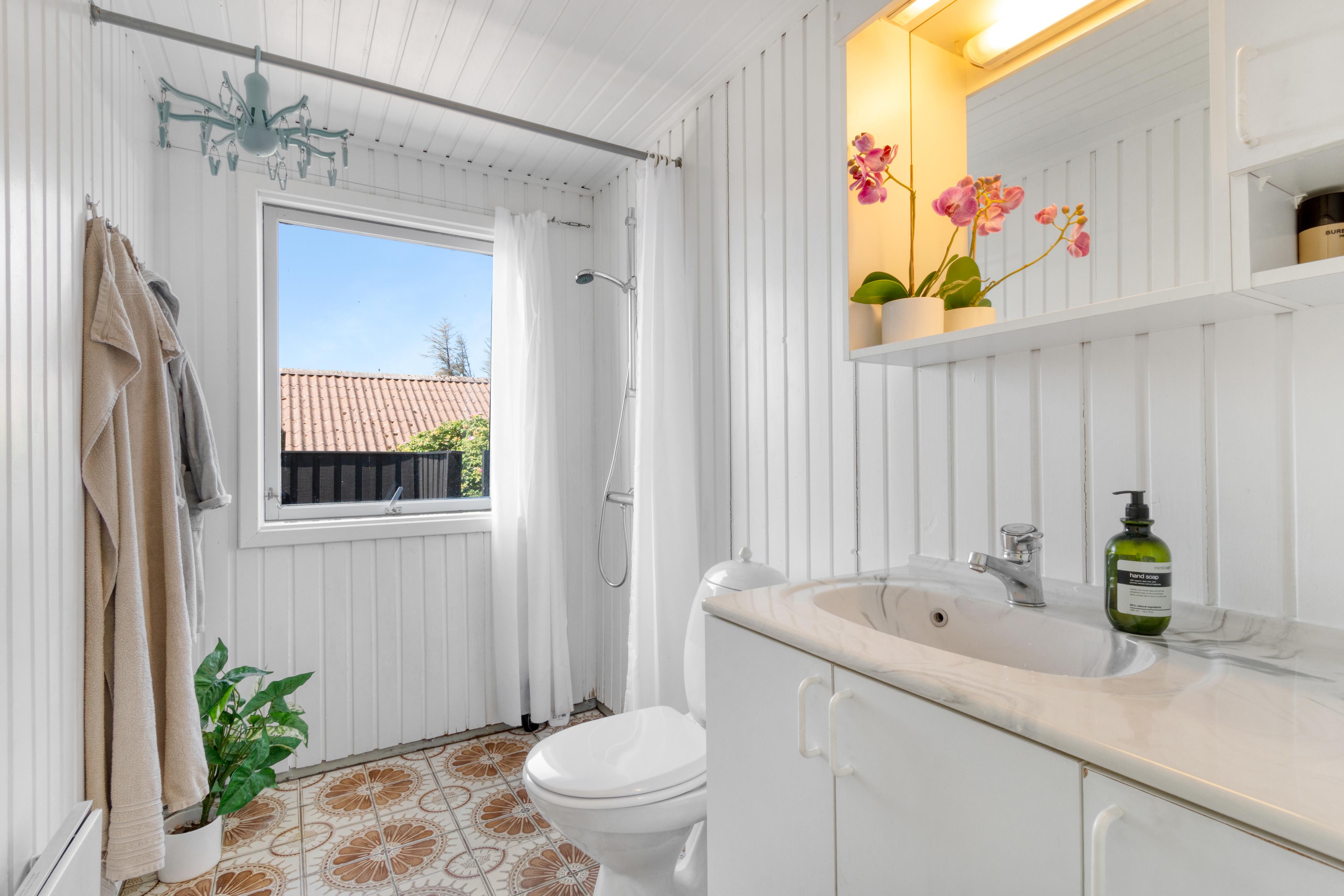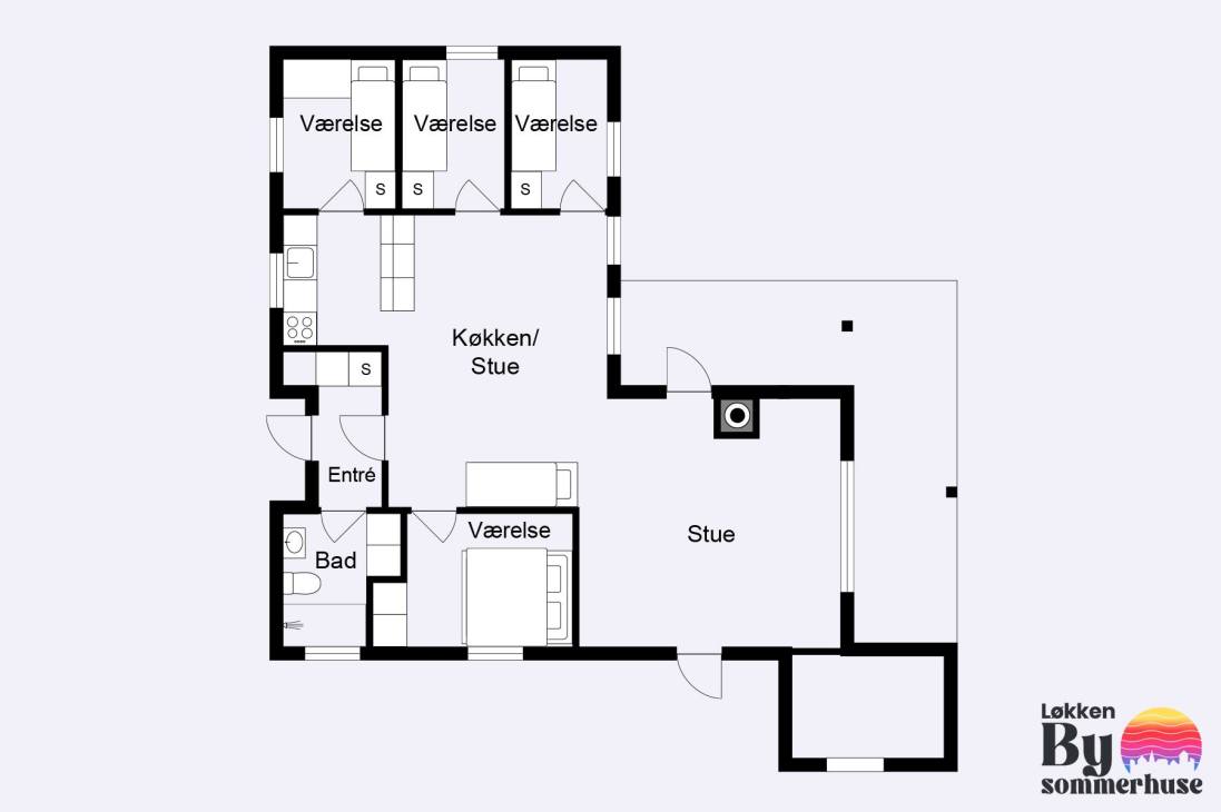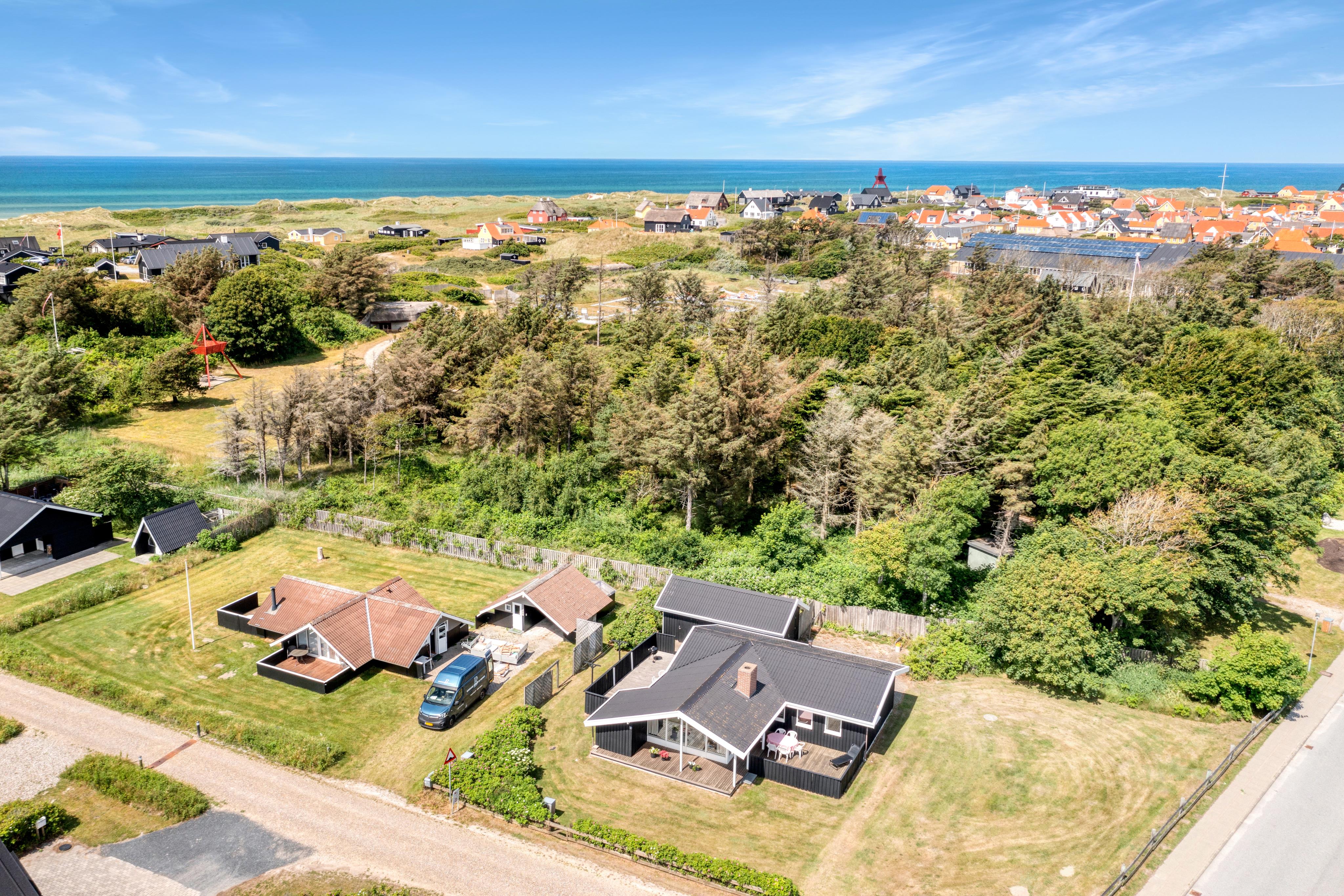The beach is approx. 600 meters away, and the city approx. 250 meters. So you are actually in the middle of Løkken’s opportunities for experiences, shopping and restaurant visits! The holiday home is located on a corner plot, and you therefore get both cement and gravel road. On the two terraces you can choose whether you want to look at the city's life or sit in peace and quiet and look at Sommervej.