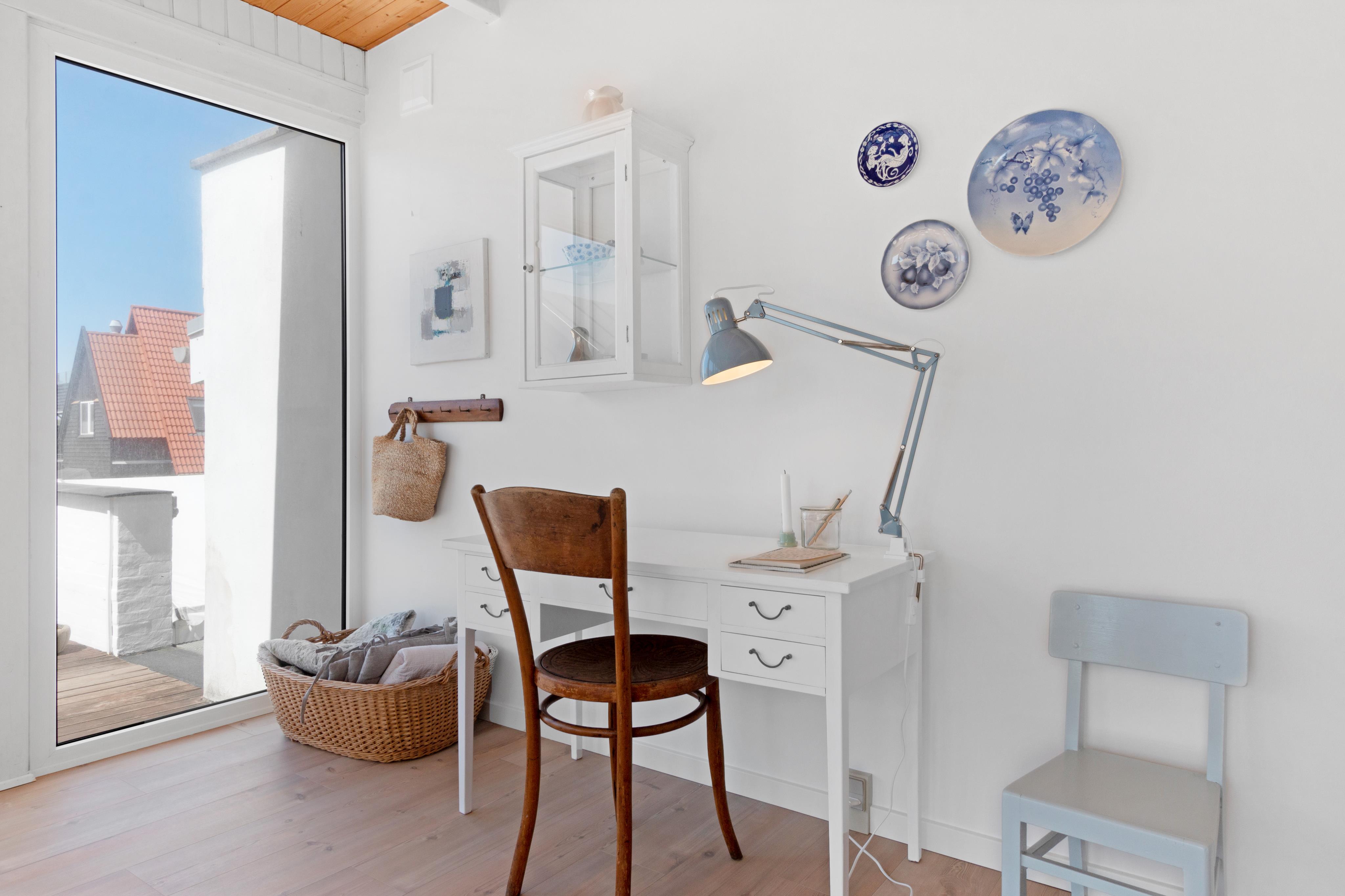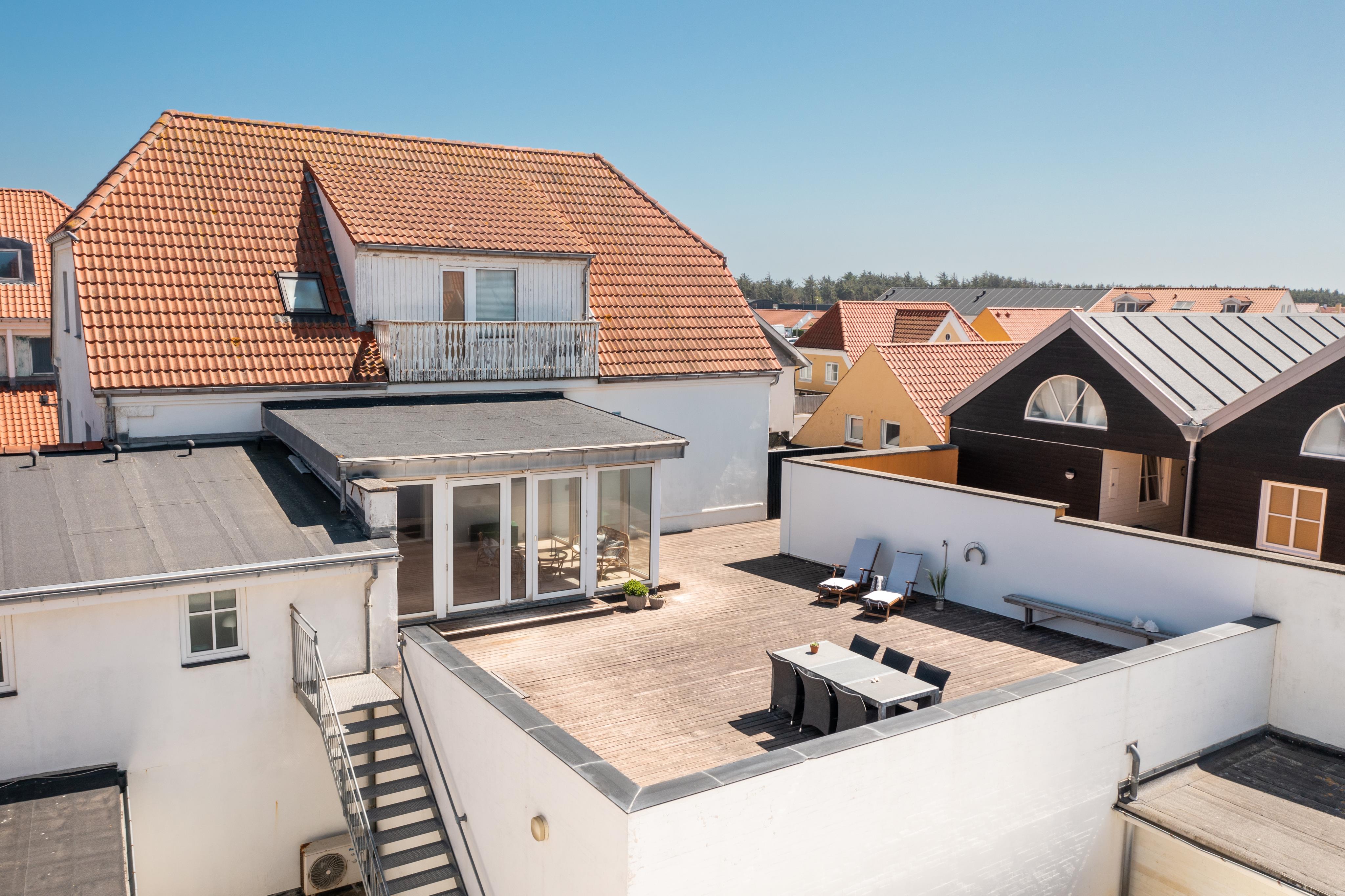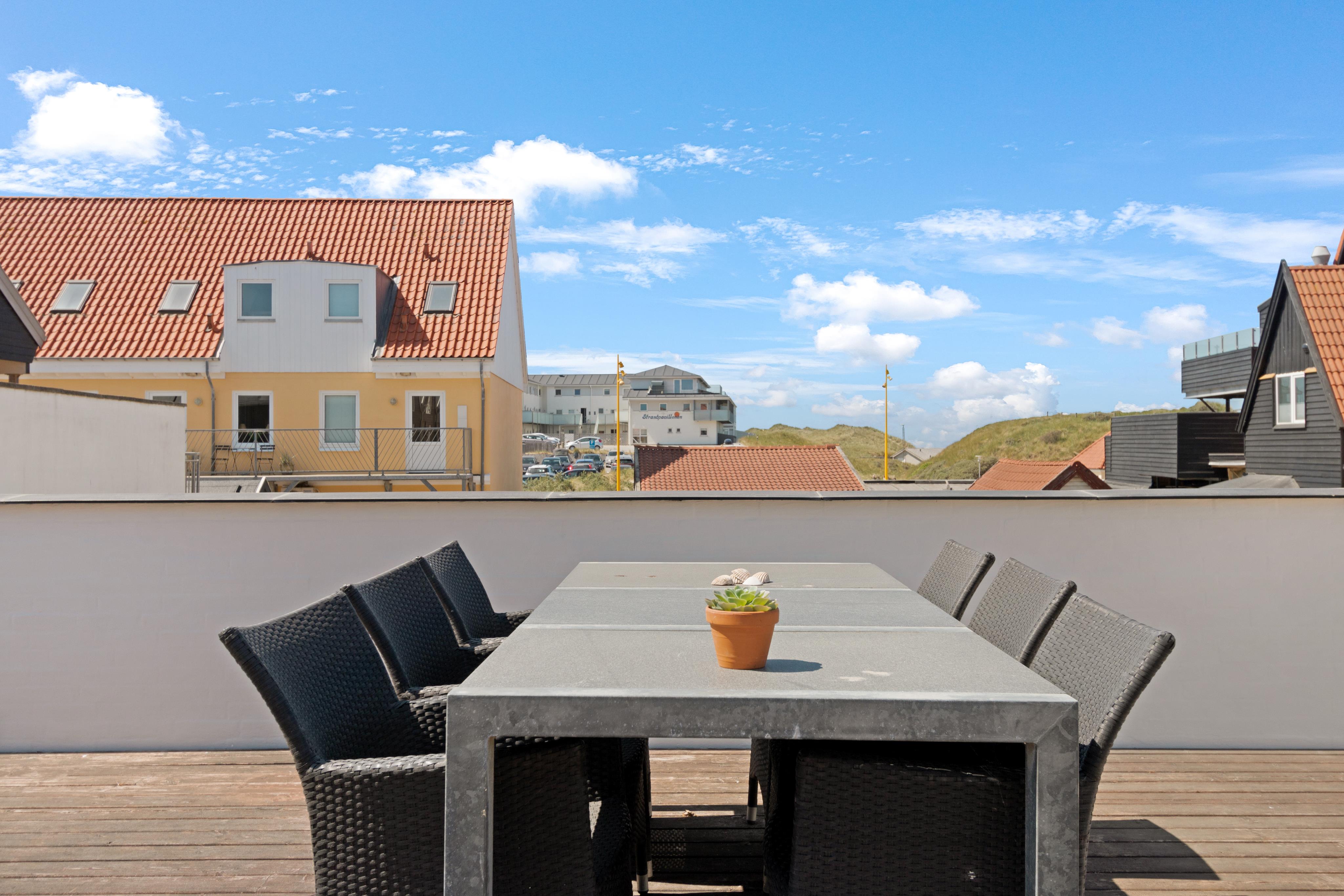 From the apartment's large, bright conservatory, you step out onto the huge terrace, from where you can see the sea and the dunes. Here, the foundation is laid for many hours of holiday relaxation with a backdrop of city life and holiday atmosphere, as well as the roar of the North Sea when the wind is blowing towards the holiday apartment. Two of the conservatory's walls are window sections with no less than three doors out to the terrace. Whether it's blowing wildly or you want to catch the first rays of sunshine of the year, there are plenty of opportunities from the lovely conservatory. Rent this lovely holiday home from By Sommerhuse and get it all.