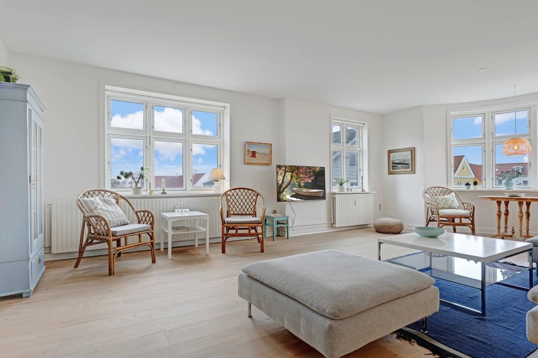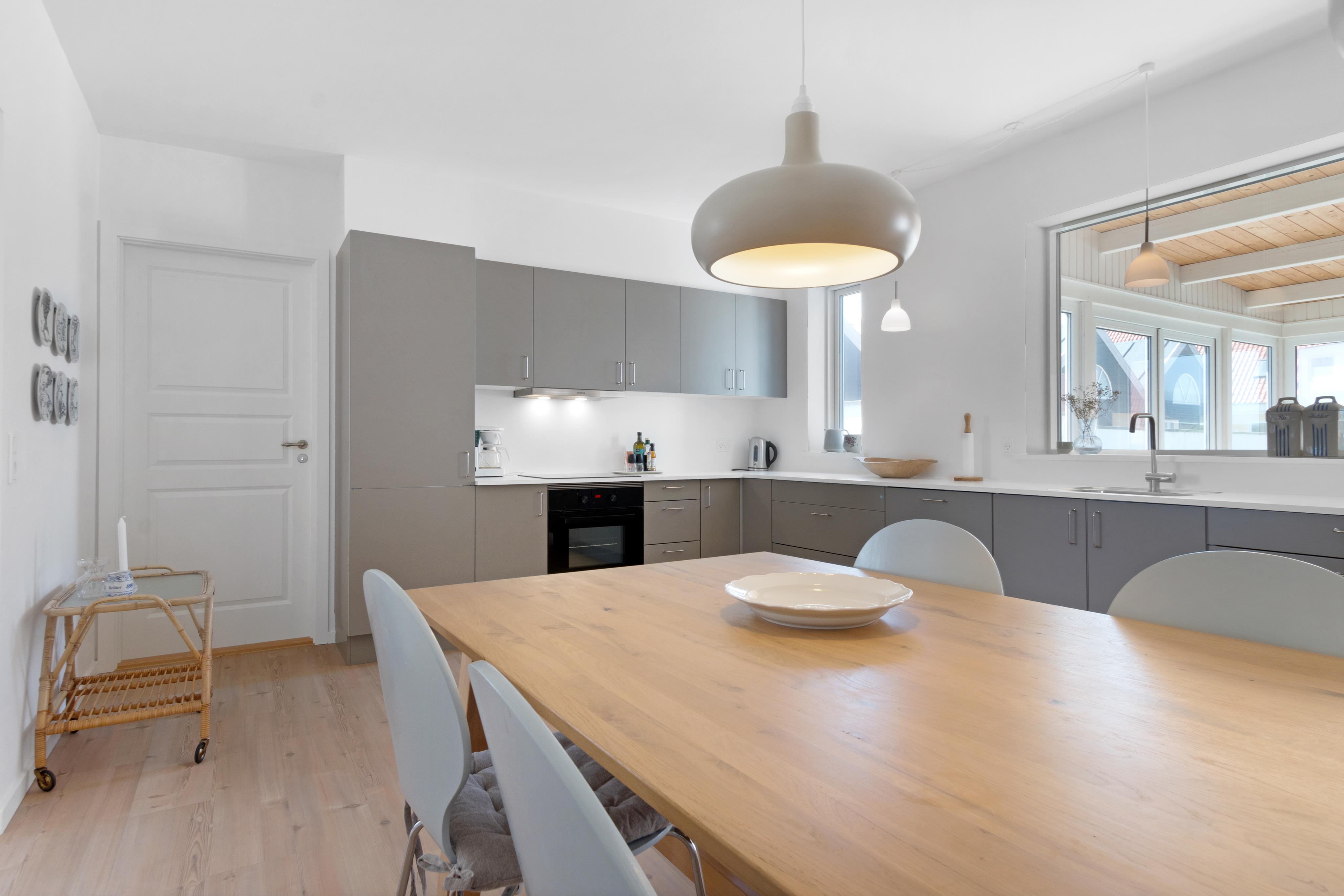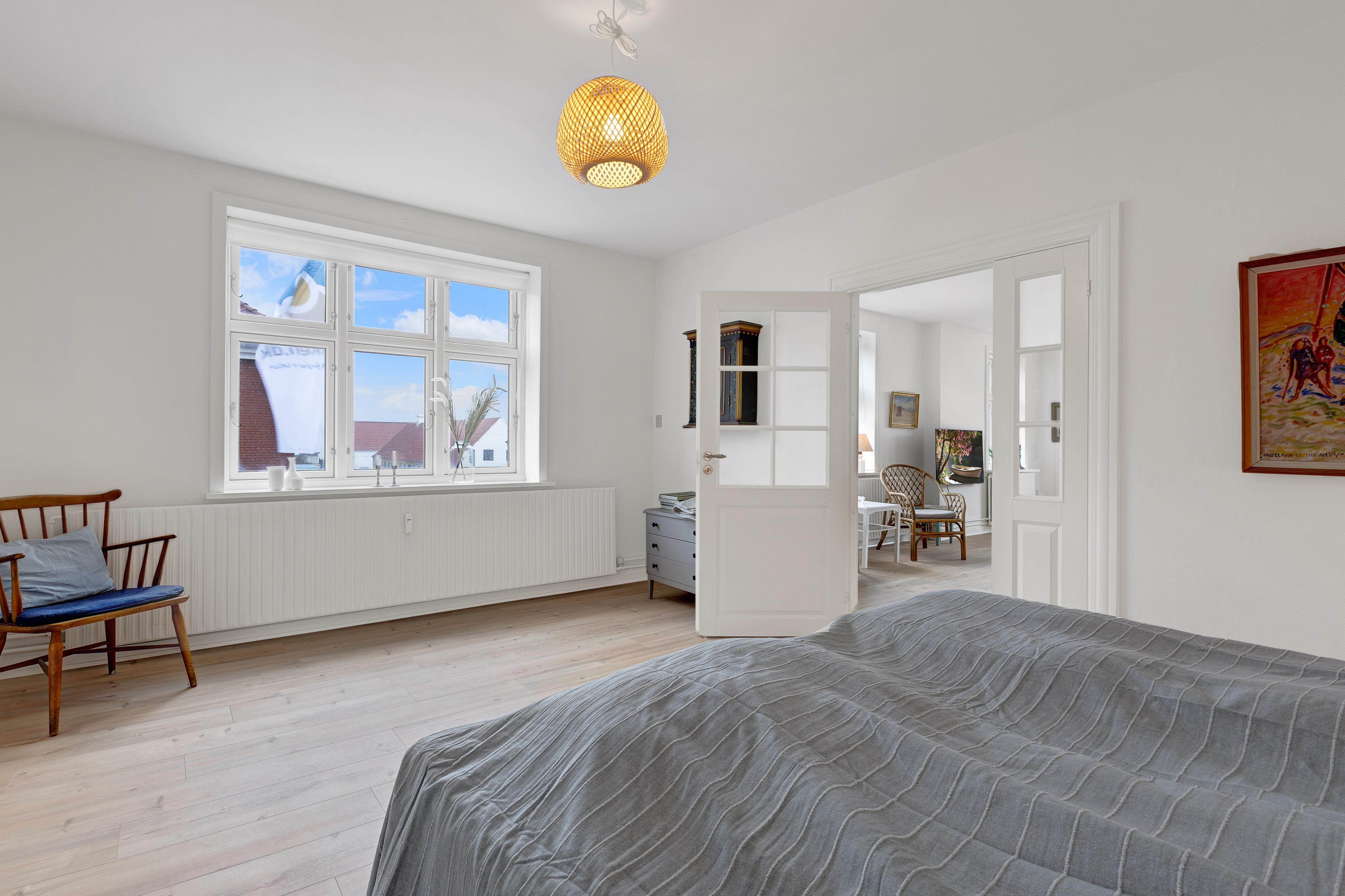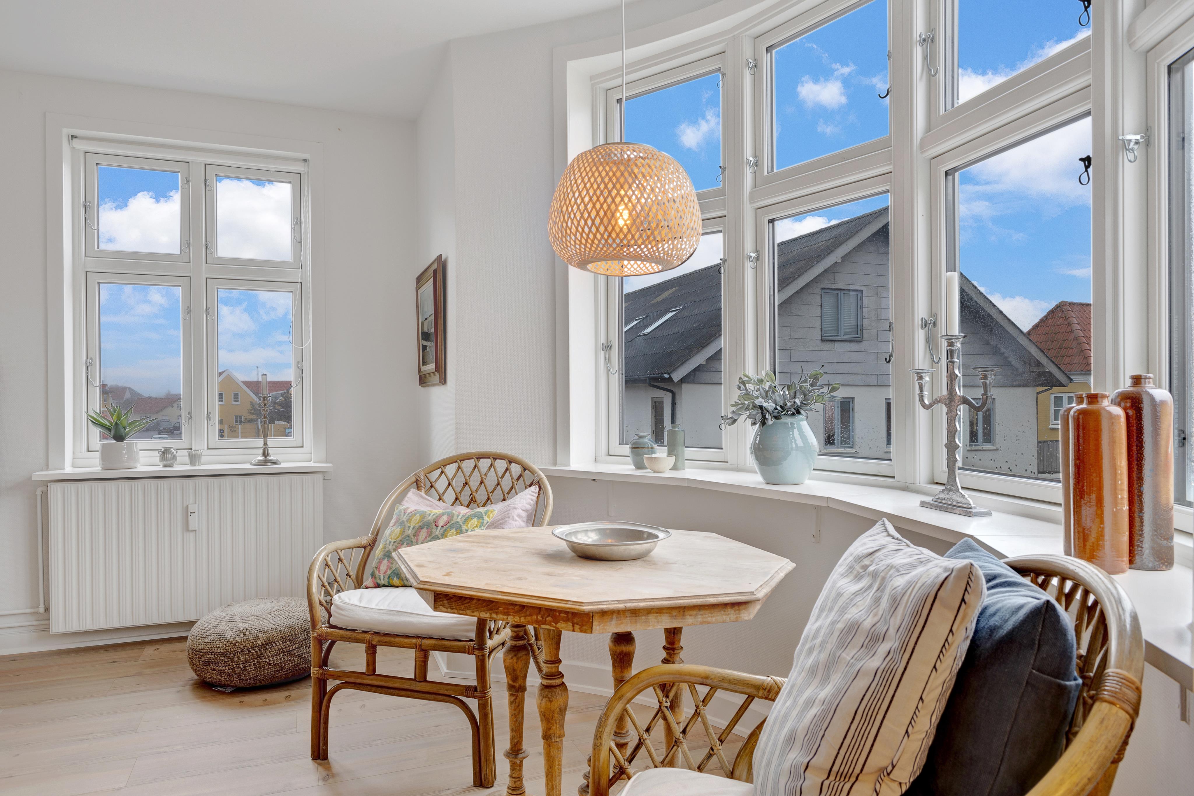 From the apartment's large, bright conservatory, you step out onto the huge terrace, from where you can see the sea and the dunes. Here, the foundation is laid for many hours of holiday relaxation with a backdrop of city life and holiday atmosphere, as well as the roar of the North Sea when the wind is blowing towards the holiday apartment. Two of the conservatory's walls are window sections with no less than three doors out to the terrace. Whether it's blowing wildly or you want to catch the first rays of sunshine of the year, there are plenty of opportunities from the lovely conservatory. Rent this lovely holiday home from By Sommerhuse and get it all.