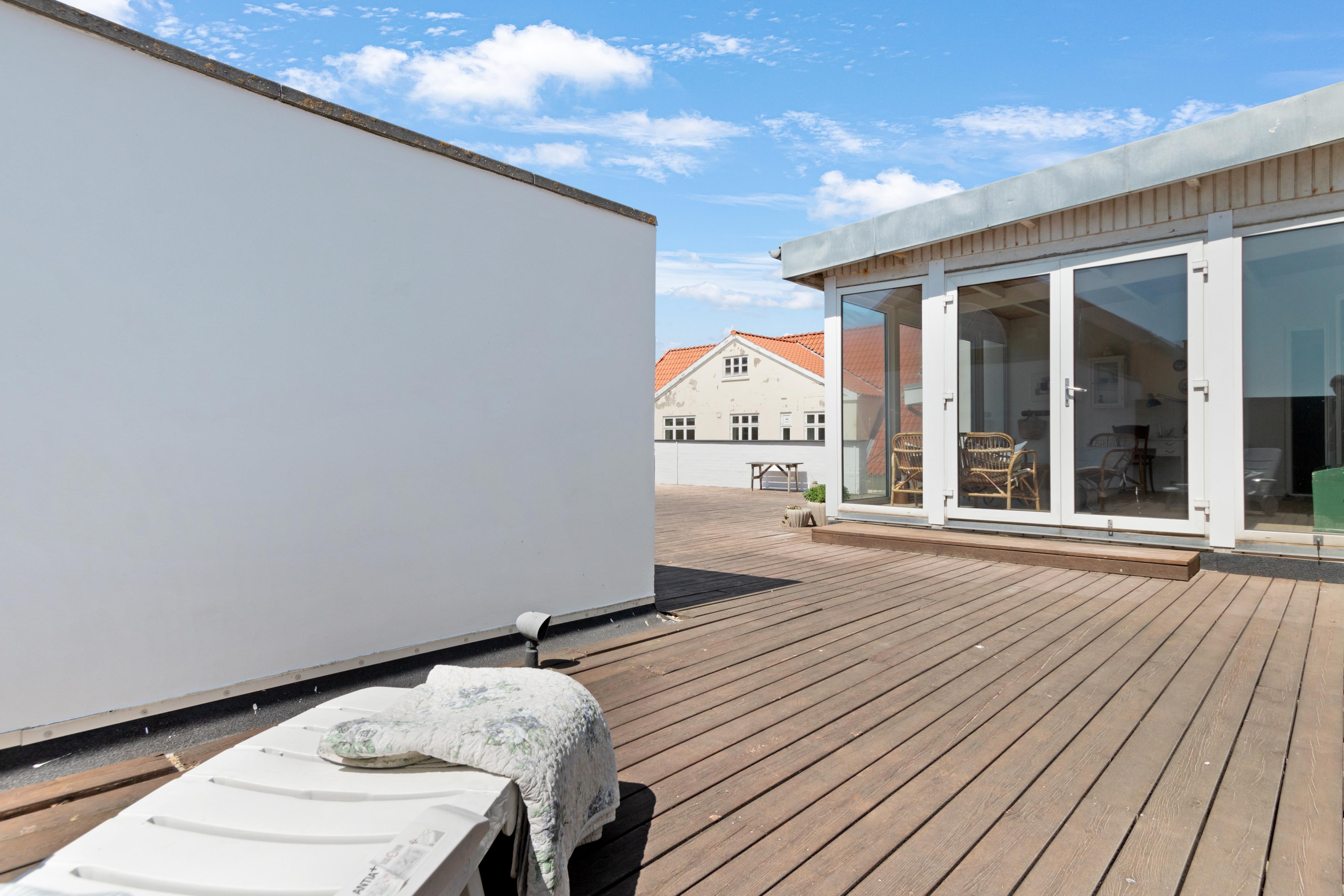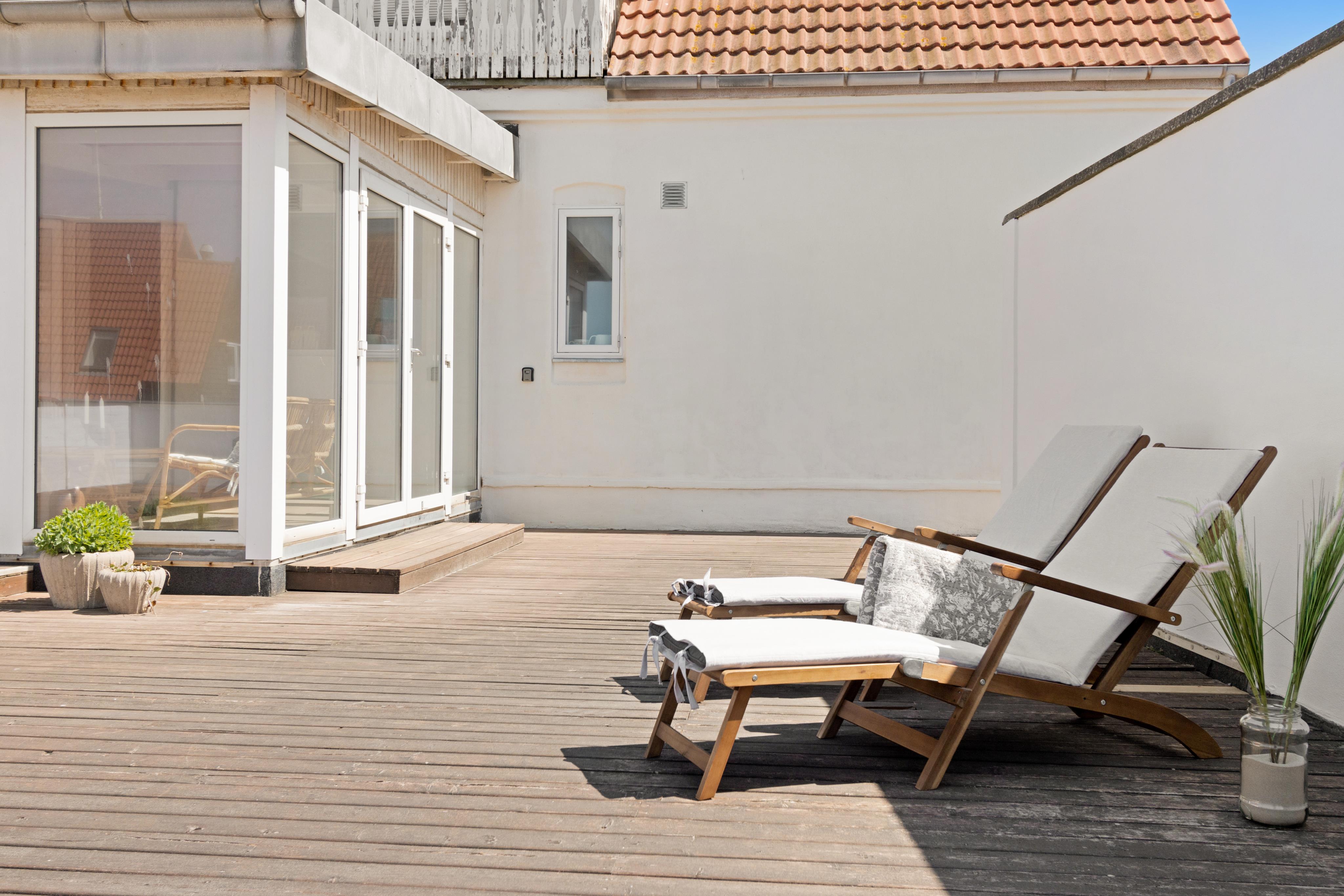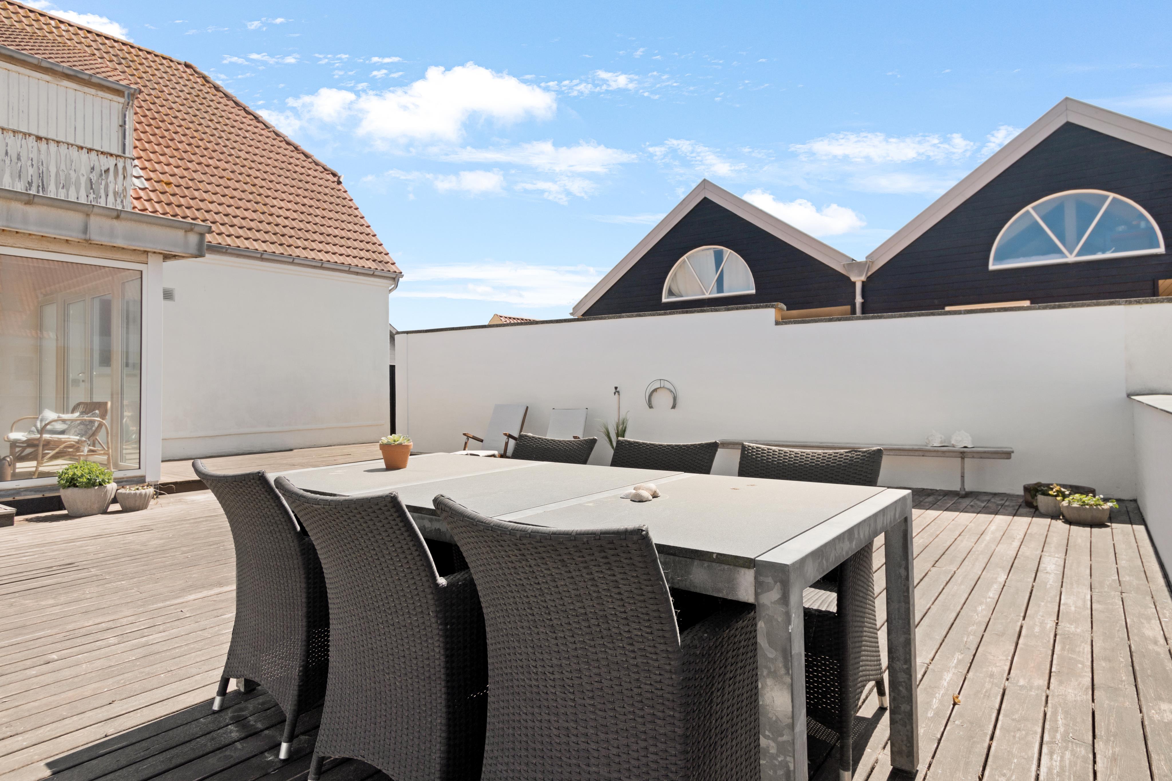 Are you into newly renovated holiday homes that are a stone's throw from Løkken beach and at the same time located in the city center? Then look no further, as we invite you to Søndergade 8, 1st floor! With space for up to 10 people and a huge terrace with plenty of space for sunbathing and BBQing. You access the apartment by driving into the alley behind the pedestrian street, and into the building's backyard. From there, you go up the outdoor rear staircase and enter the apartment from the lovely terrace.