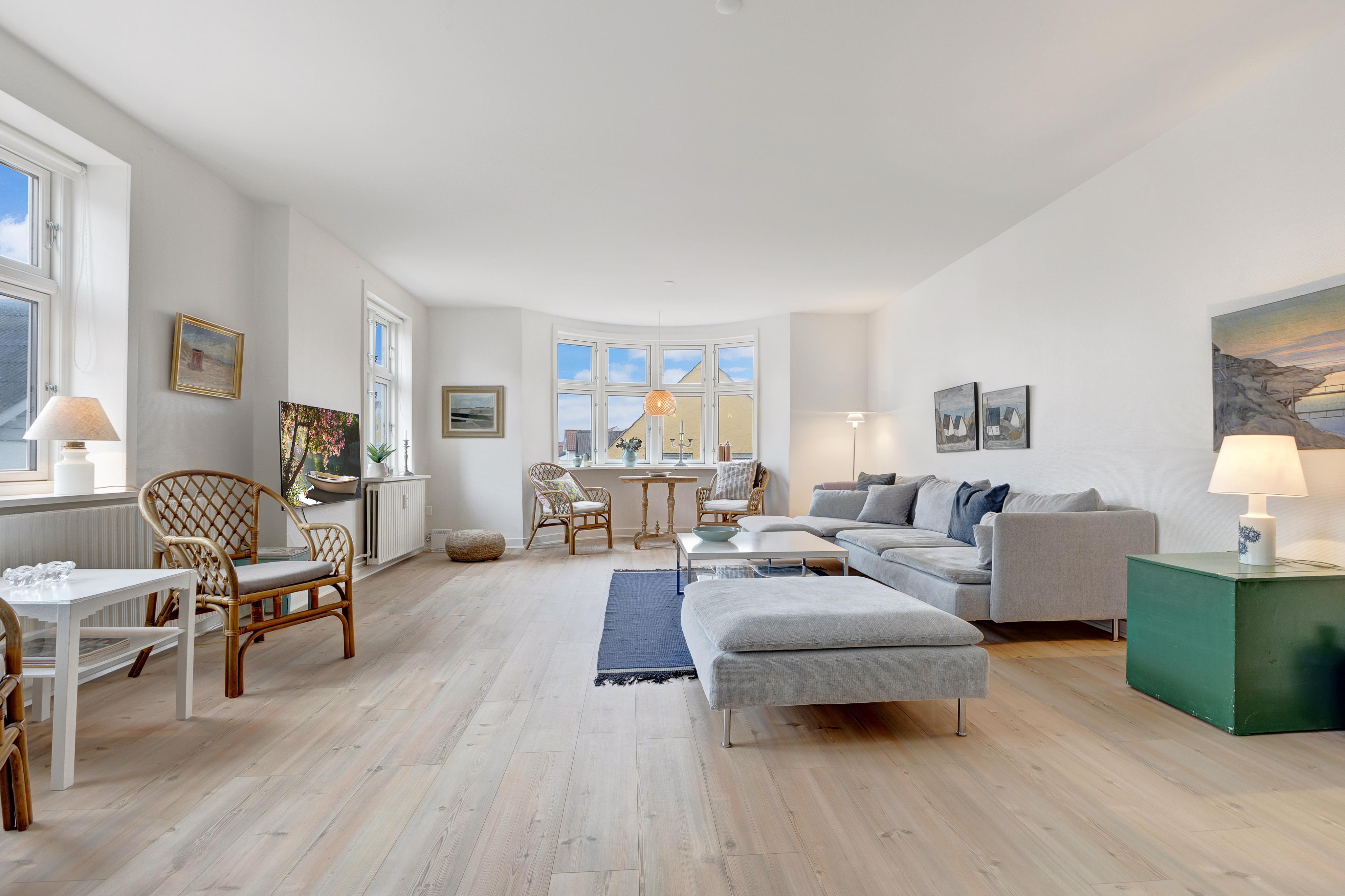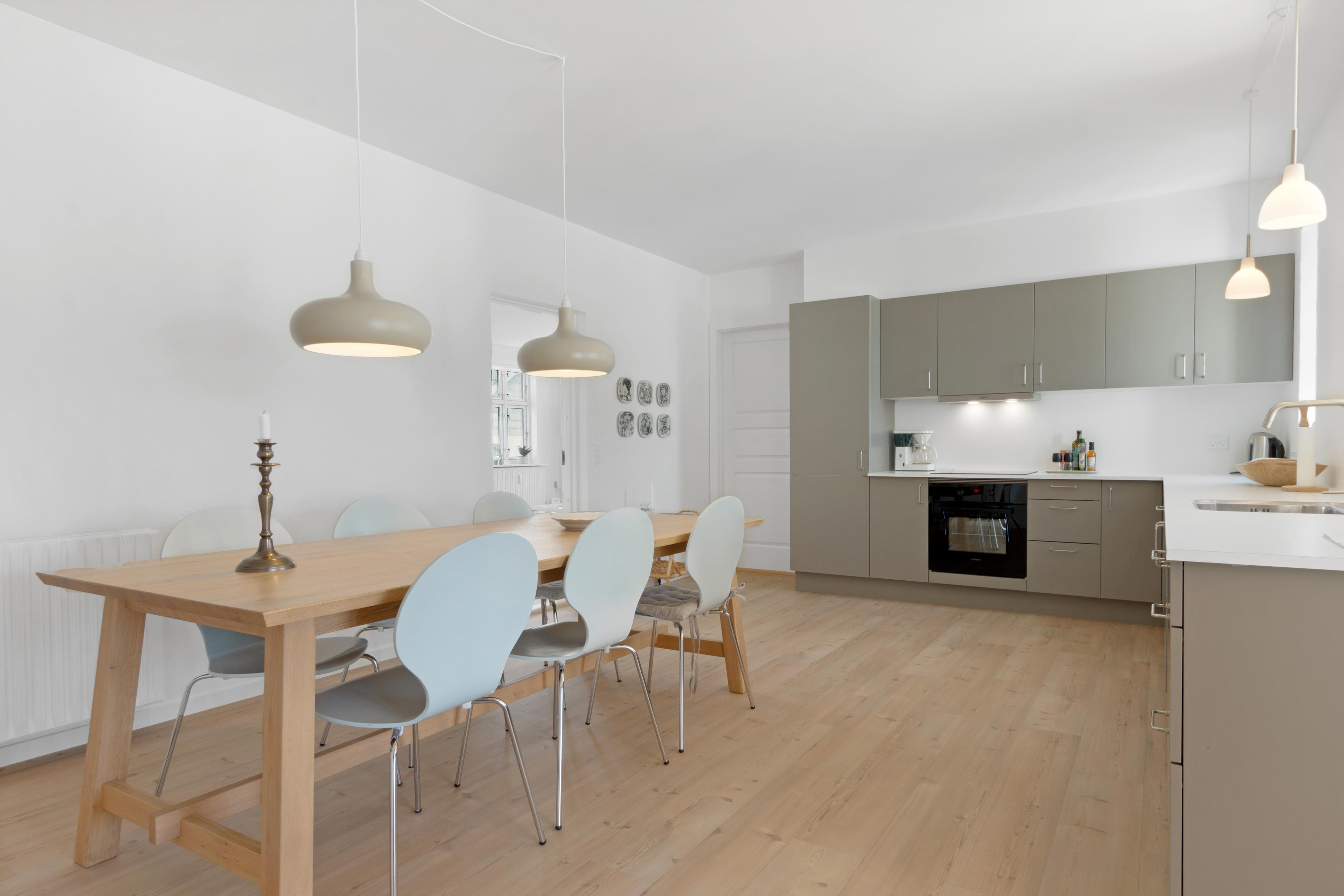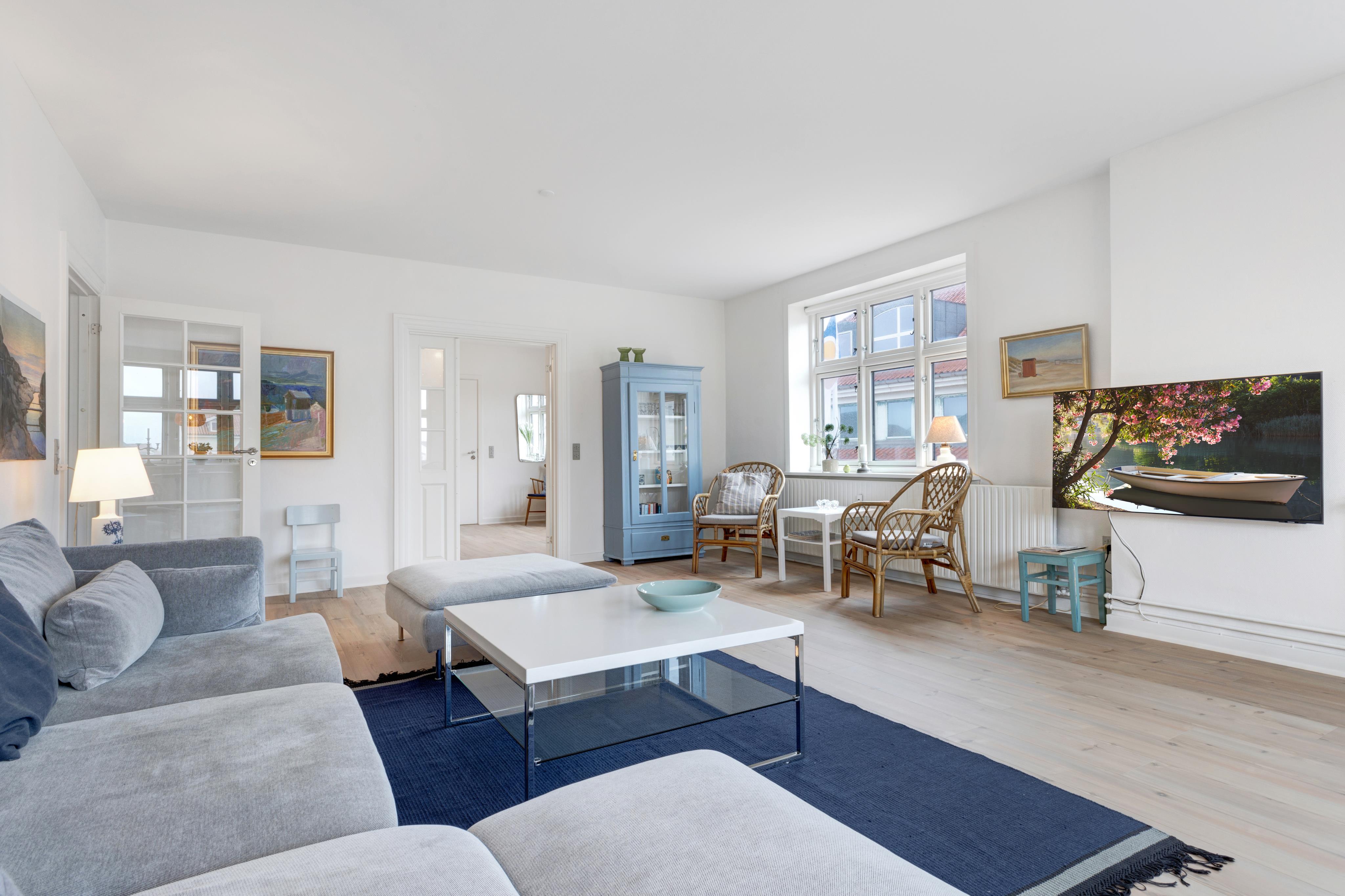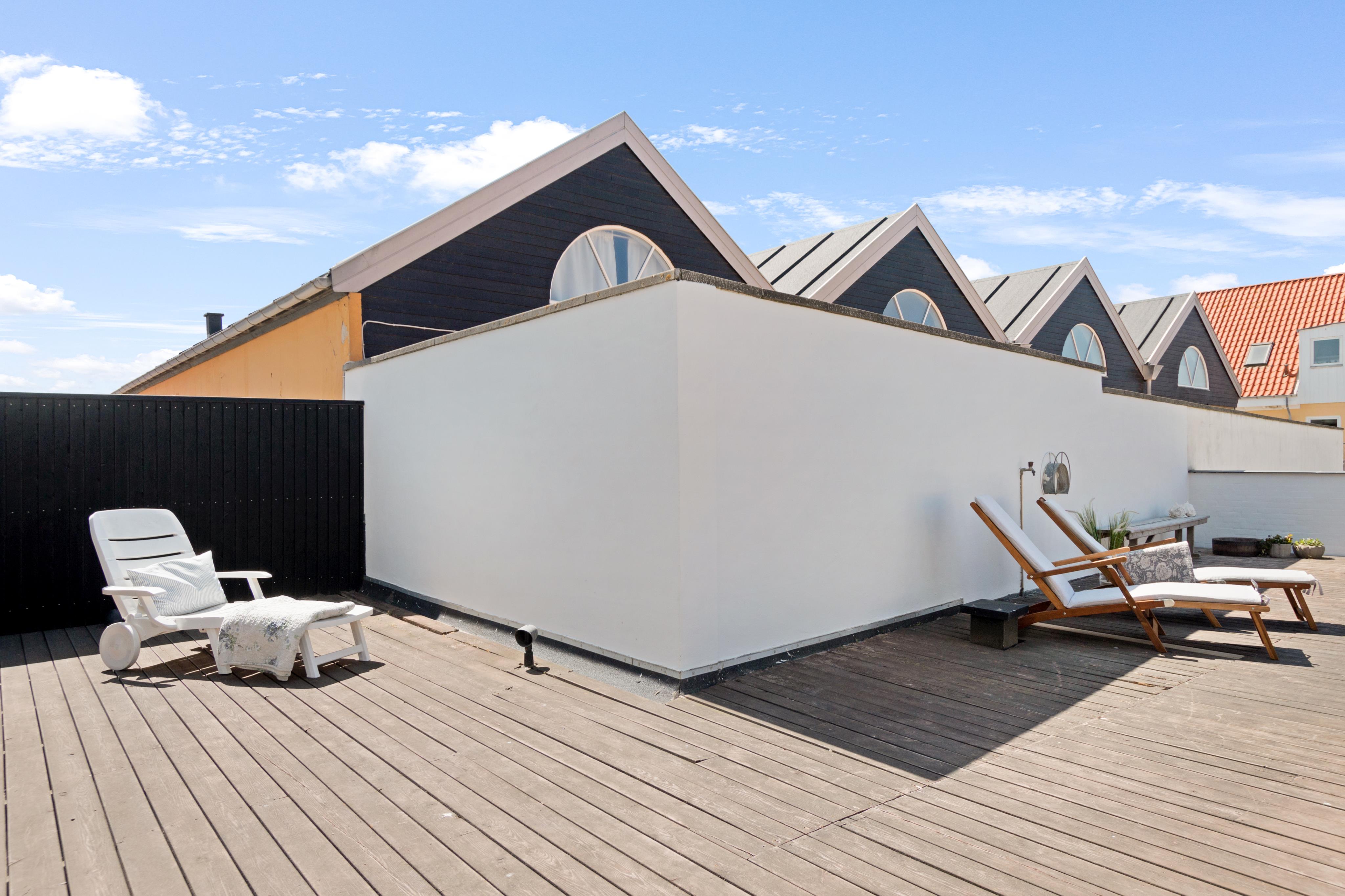 Are you into newly renovated holiday homes that are a stone's throw from Løkken beach and at the same time located in the city center? Then look no further, as we invite you to Søndergade 8, 1st floor! With space for up to 10 people and a huge terrace with plenty of space for sunbathing and BBQing. You access the apartment by driving into the alley behind the pedestrian street, and into the building's backyard. From there, you go up the outdoor rear staircase and enter the apartment from the lovely terrace.