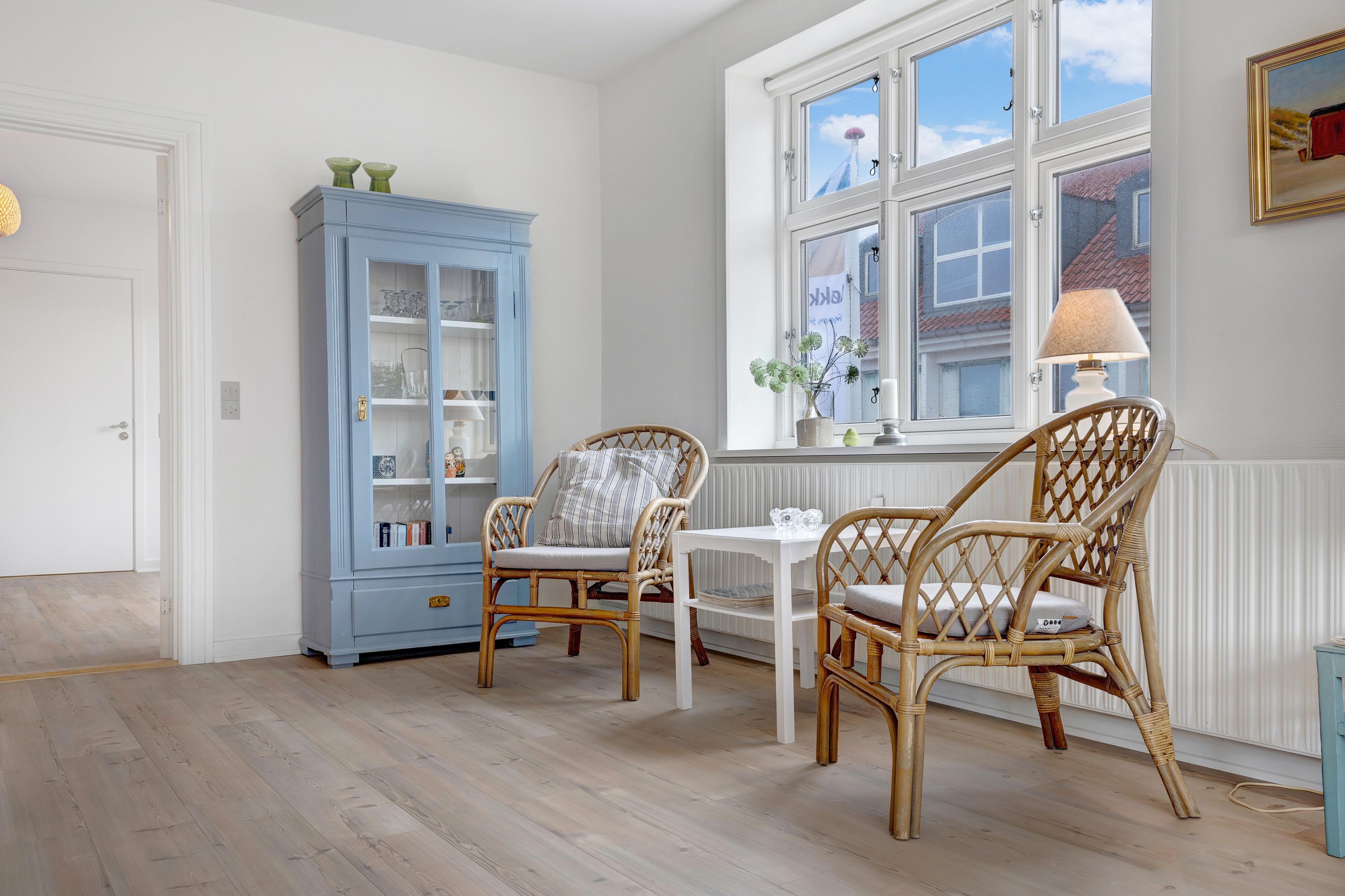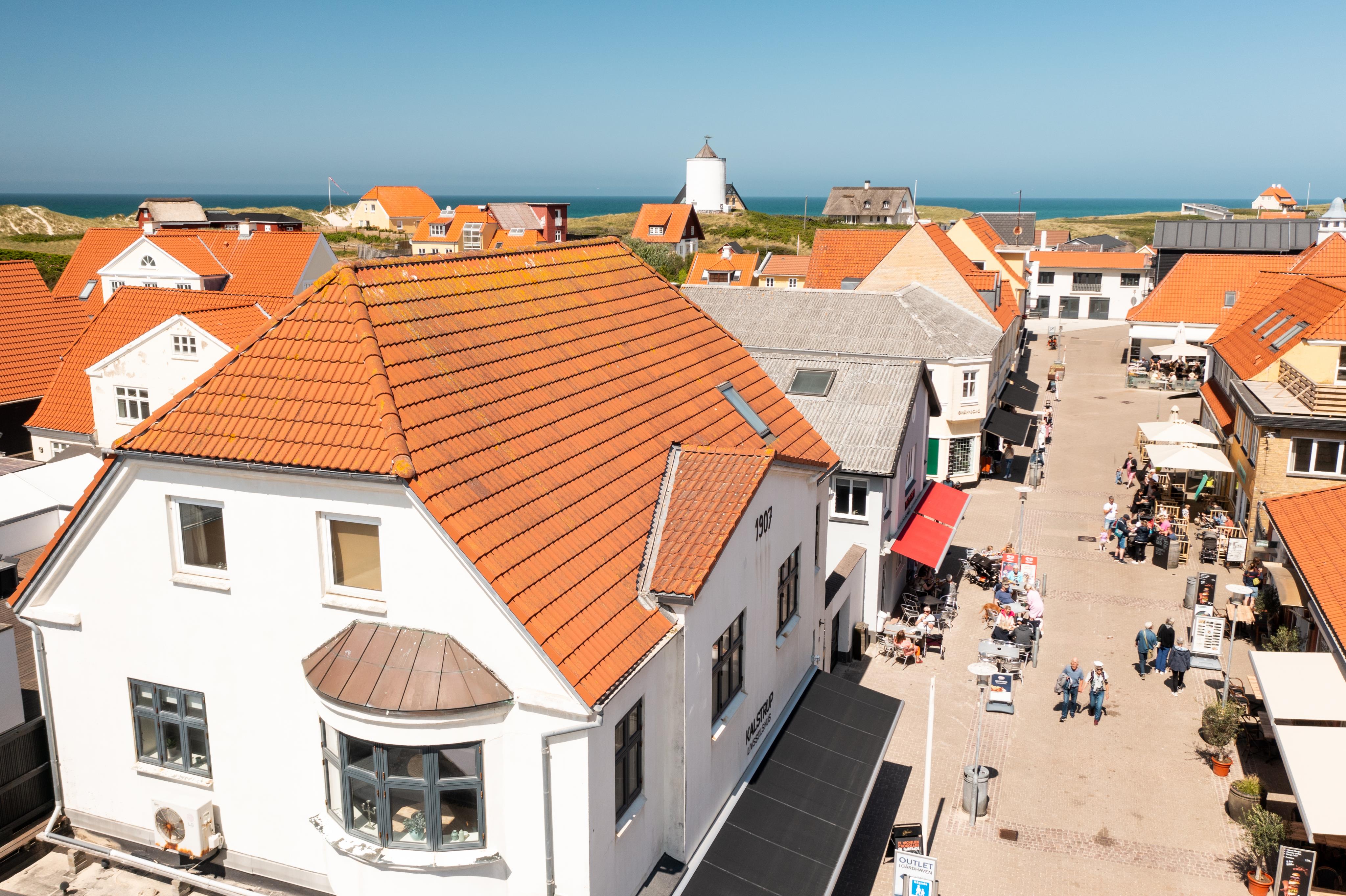 When we say that this lovely holiday apartment in Løkken is located in the city center, we mean right in the middle of the pedestrian street - an unbeatable location! The apartment is located above one of Løkken's nice clothing stores and from the living room, you have a view of the pedestrian street and the town center. At the same time, you have almost the North Sea as your backyard - just outside the apartment's private courtyard, you hit Sønder Strandvej, which leads you down to the pier and the beach, which you reach after just 150 meters.