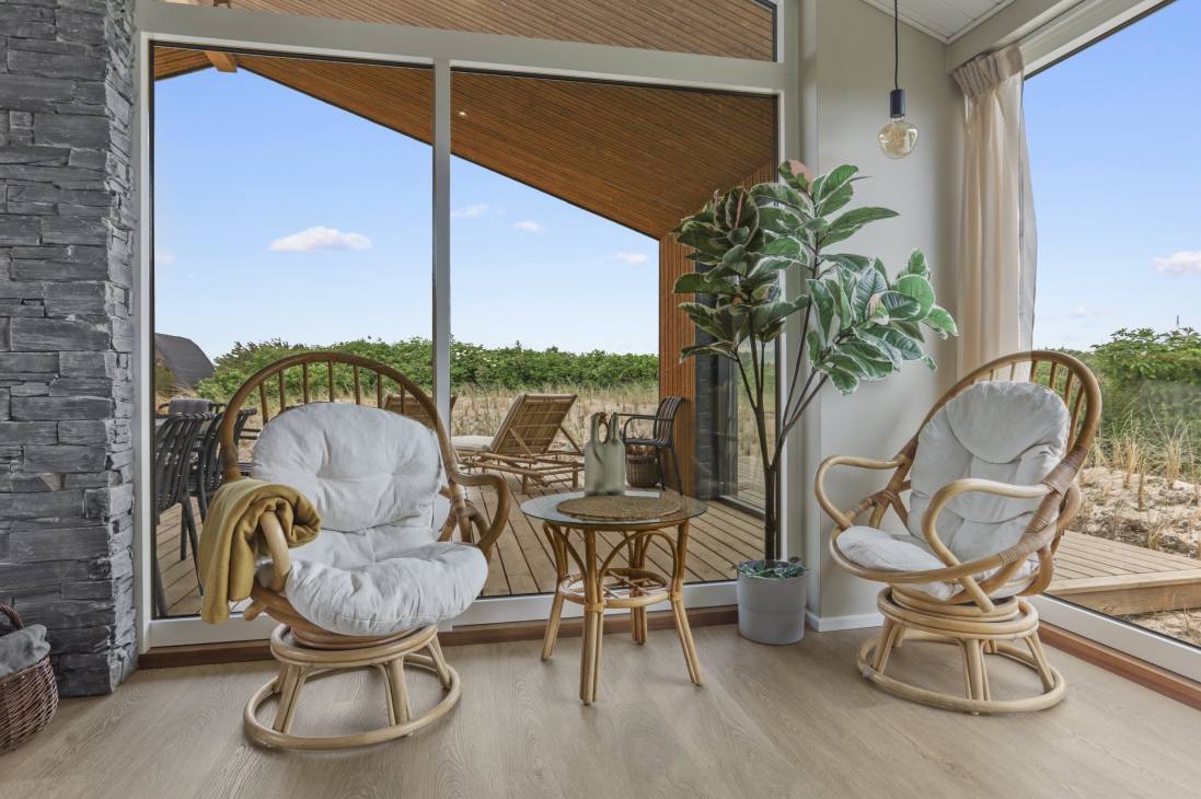 This summer house at Tjørnevej is simply impressive! With space for 6 people, you can spread out over 106 wonderful square meters, where nothing is left to chance – there is even a charging station for an electric car. The 3 lovely bedrooms with heavy curtains and calming colors are located at one end of the house along with the 2 large bathrooms, while the other end features a spacious and bright kitchen/living area with high ceilings and plenty of windows overlooking the stunning outdoor areas, of which 28 square meters are covered. If the weather is nice, it is ideal to use the lovely terraces, the delightful sun courtyard, or have a wellness experience in the house’s outdoor sauna, shower, and wilderness spa. If you prefer indoor coziness, you can relax in front of the fireplace and enjoy the beautiful view.
