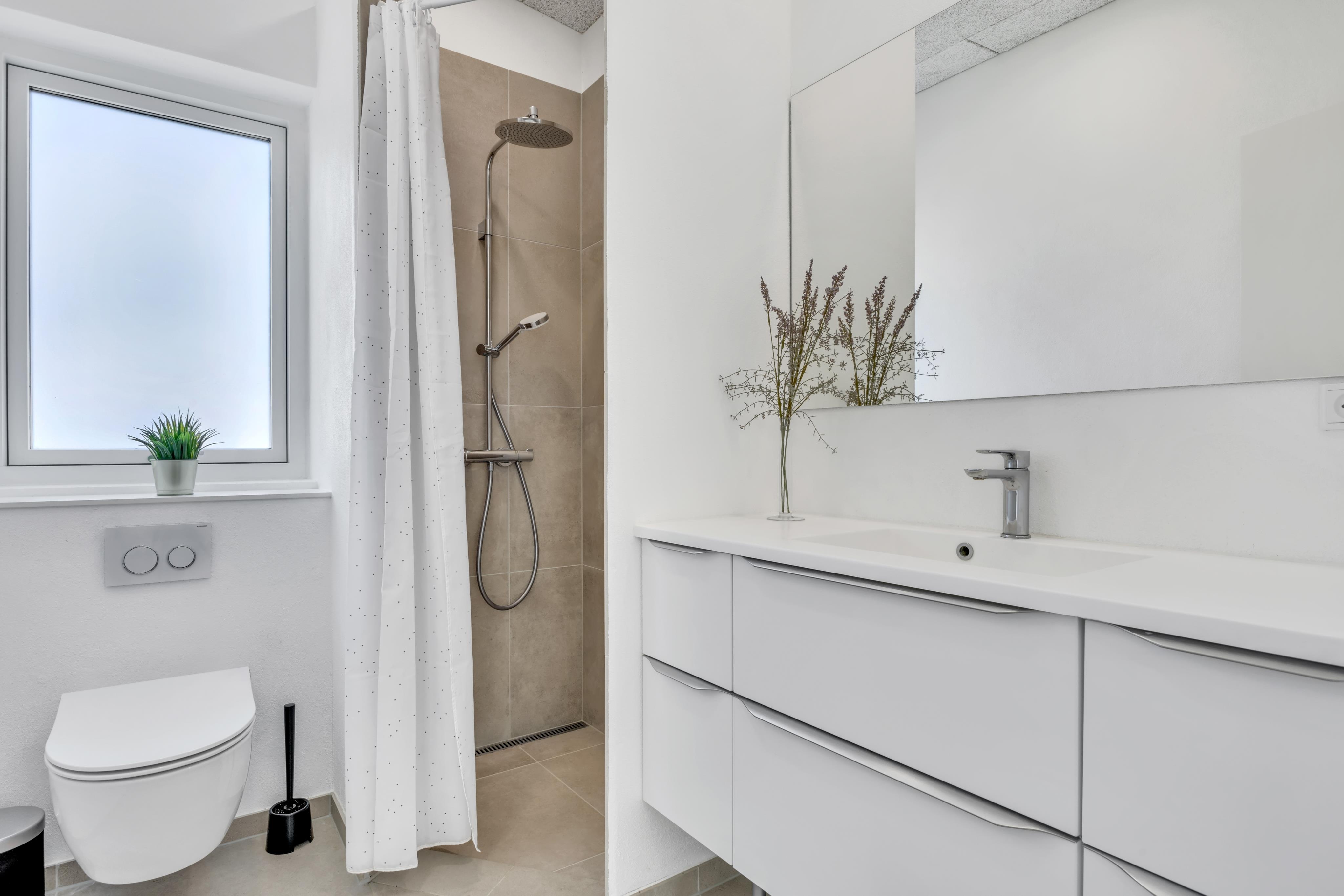 When the summer shows its best side, there is plenty of outdoor space for sunbathing, games, and play - and there is even a trampoline for the joy of children and young at heart. The holiday home is located on a corner plot, and there are terraces in all sunny angles, so it should be possible to find a lovely place in the sun or shelter. You are less than a kilometer from the beach, where there are lifeguards in the high season. Within an even shorter radius, you have shopping and transportation options as well as restaurants. The city center is about a kilometer away, just like the beach.