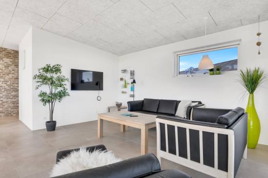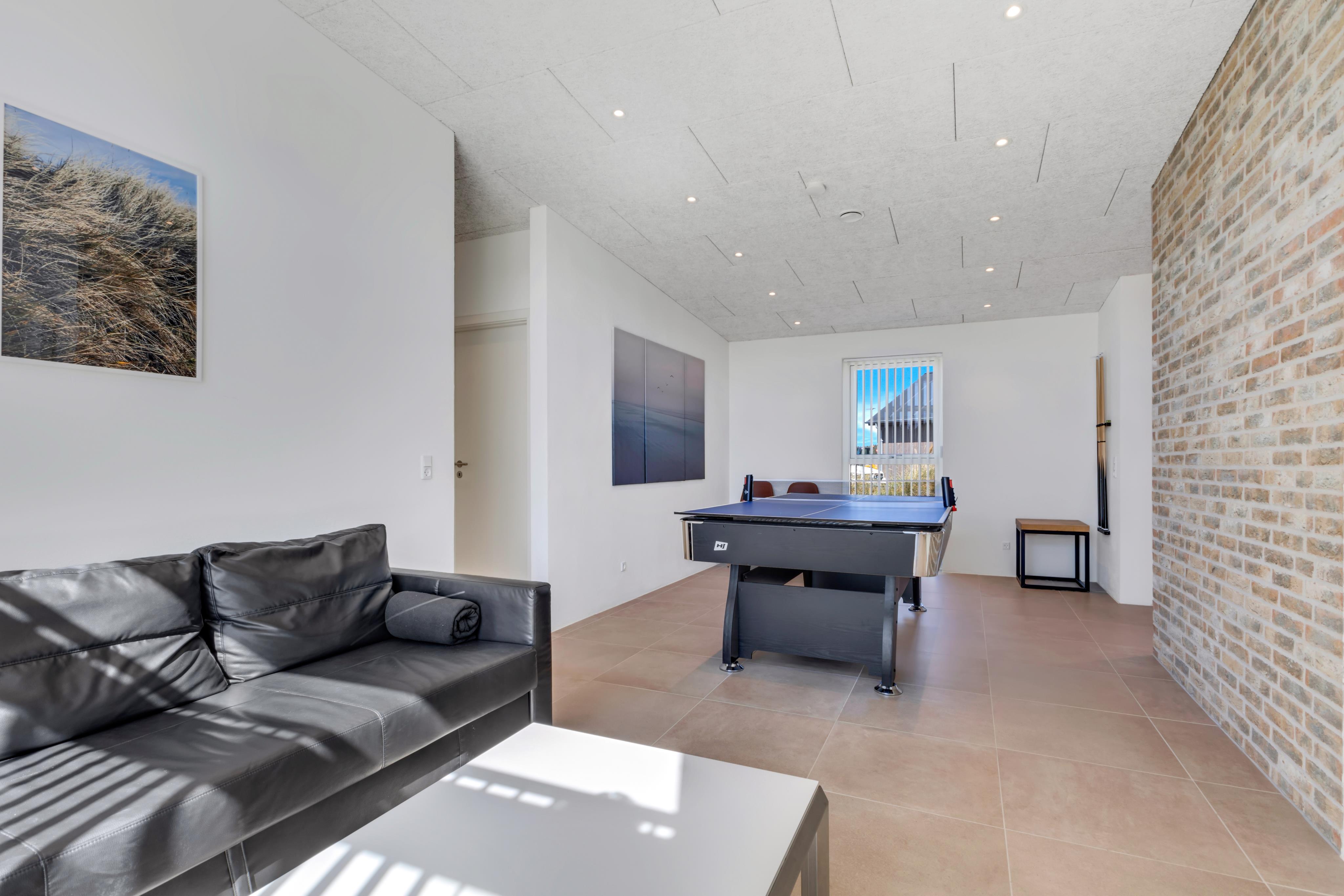 Now you have the opportunity to rent this fantastic holiday home at Ulken 5. Here is everything your heart desires for 8 people and a child up to 3 years old. The house is newly built in 2022, it has a super cool style with raw brick walls and large, bright rooms. Do yourself and your family or friends a favor and explore this gem in a newly built neighborhood - easily shielded from the center, which is within 500 meters. If you prefer the beach, just move less than 1 kilometer. As an extra luxury, the house has its own charging station for the electric car and an activity room with pool and table tennis.