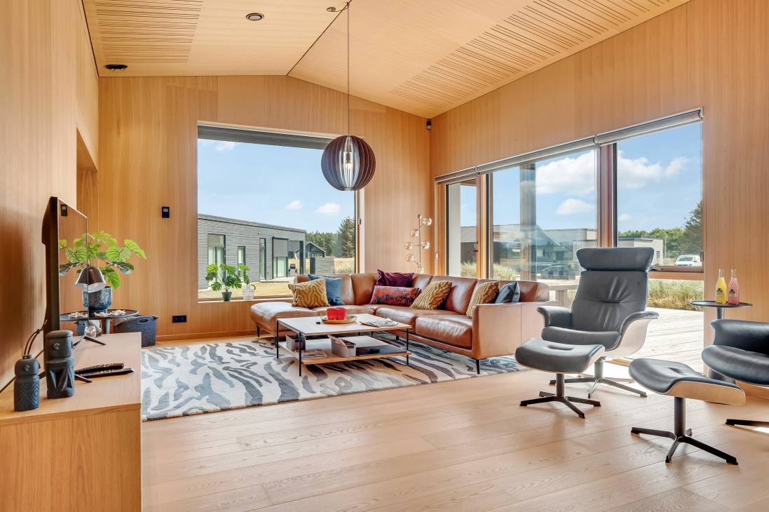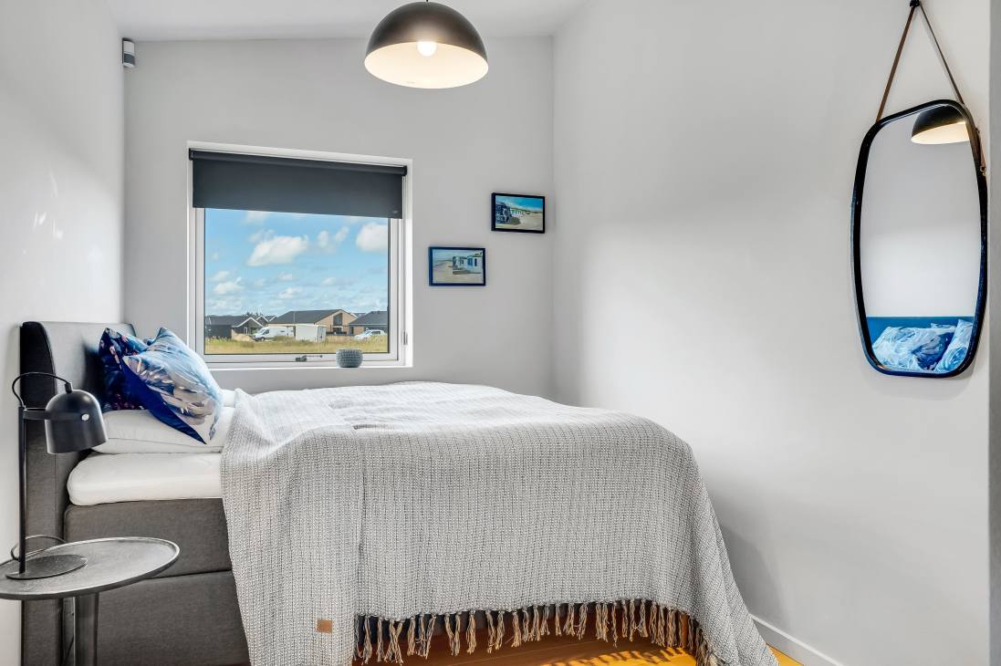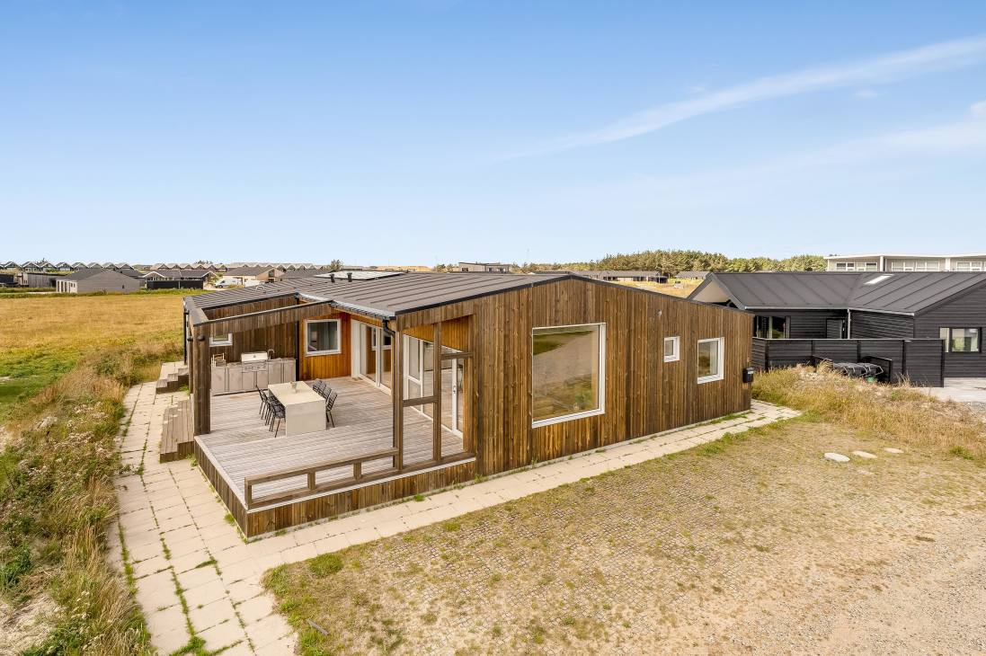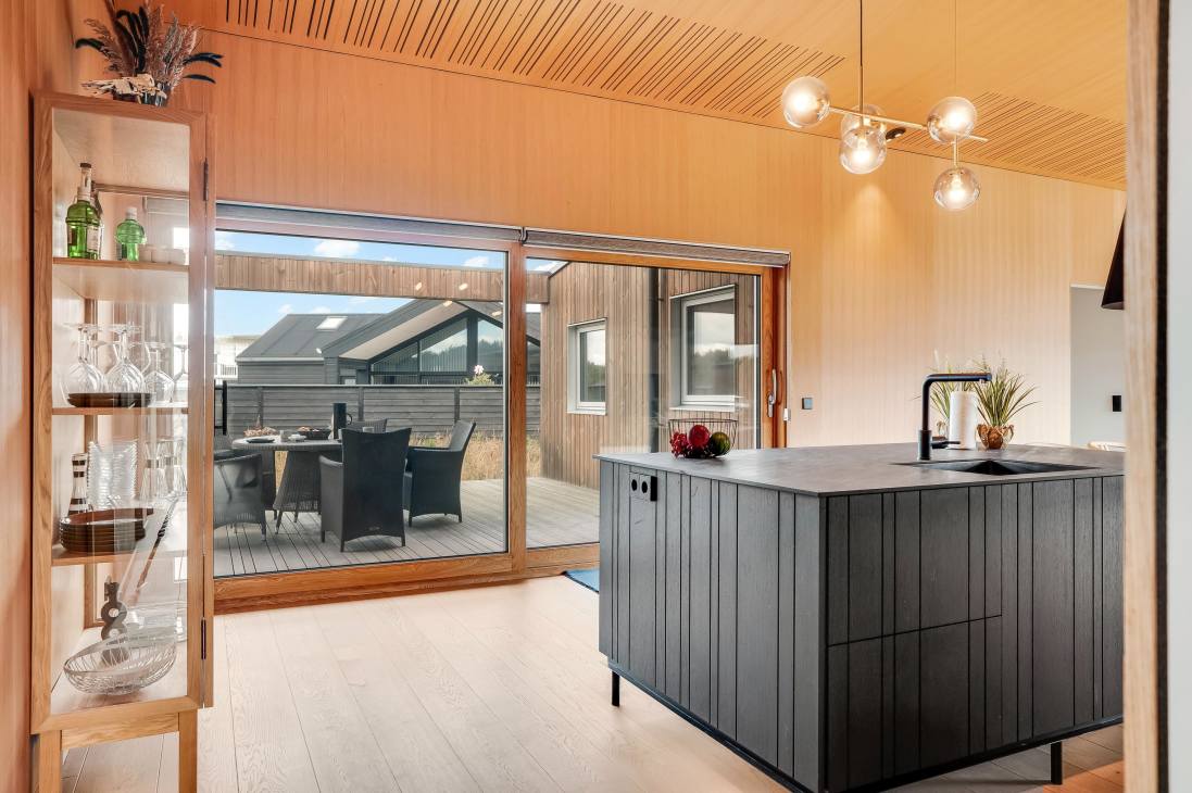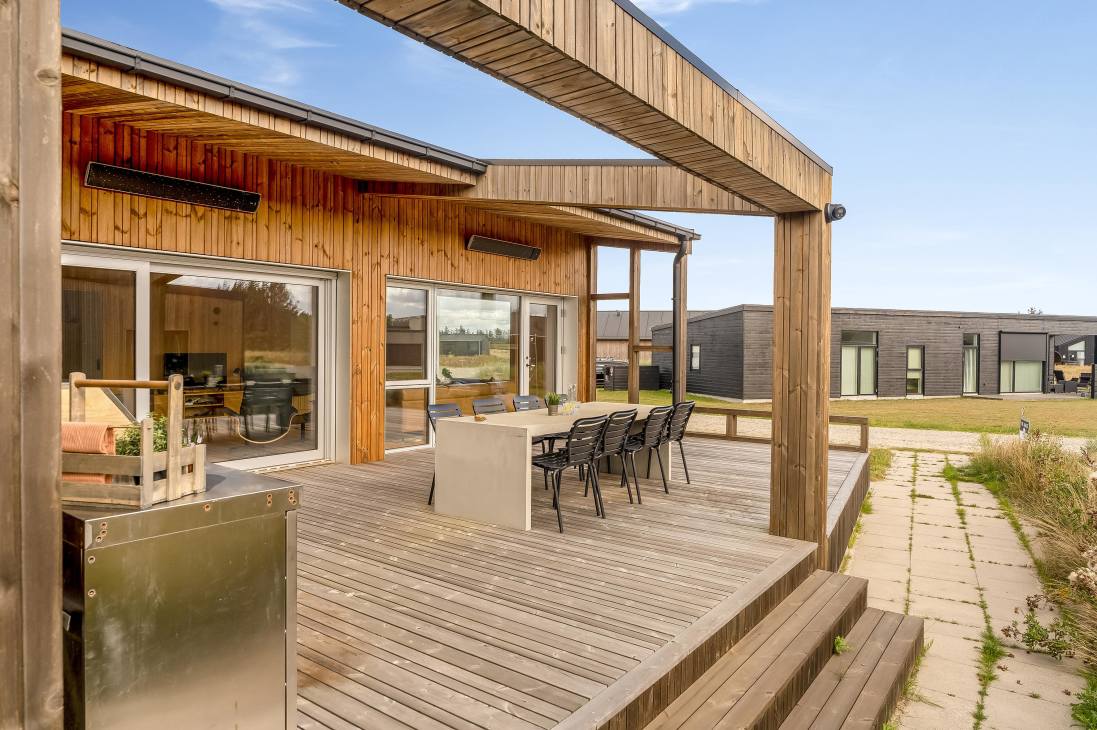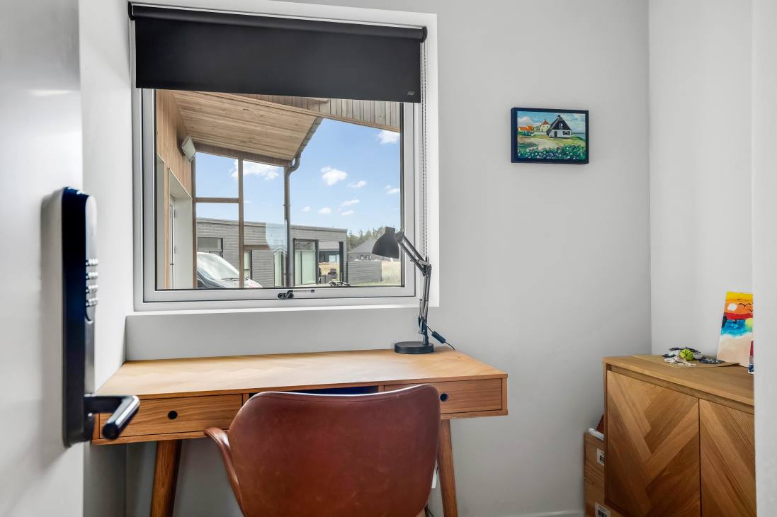 Several terraces and spacious outdoor areas make it easy to find both sun and shelter. There’s plenty of room for relaxation and play, and the beach, town, and shops are all within about a kilometre. Just 500 metres away you’ll find playgrounds and a golf course, and as the road is a cul-de-sac, it’s very quiet. You can walk, cycle, or drive to the beach – one of Denmark’s absolute best.
