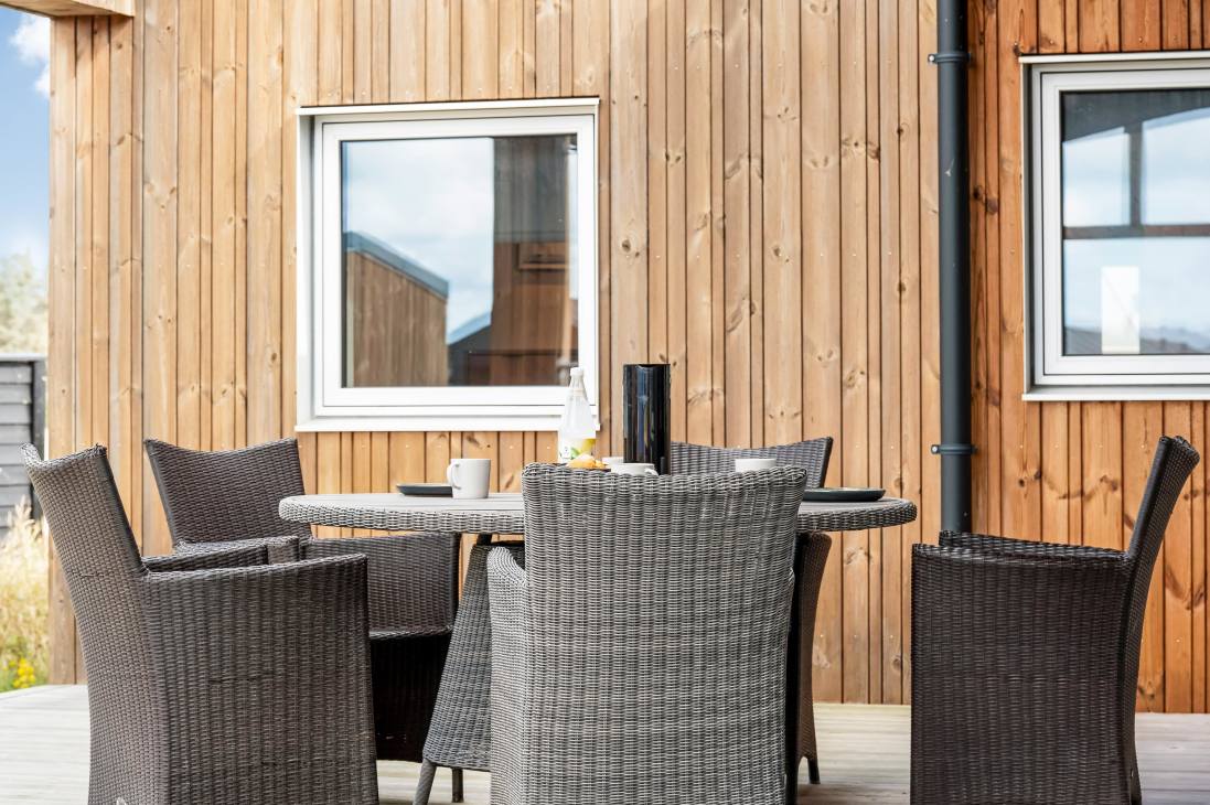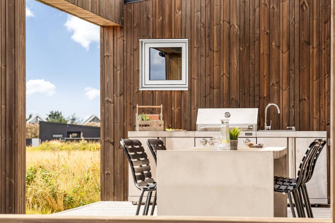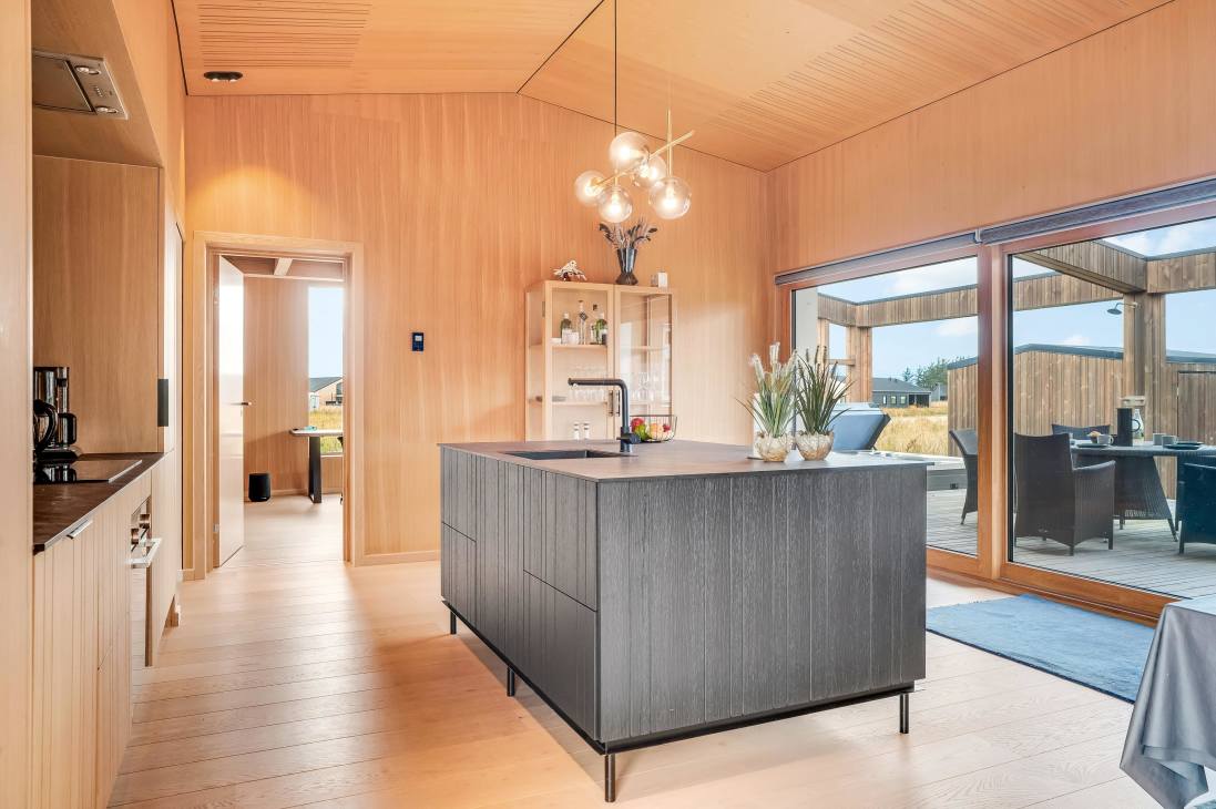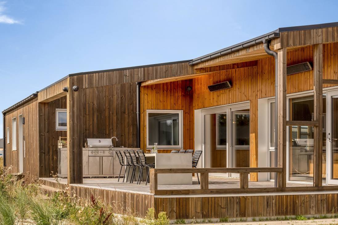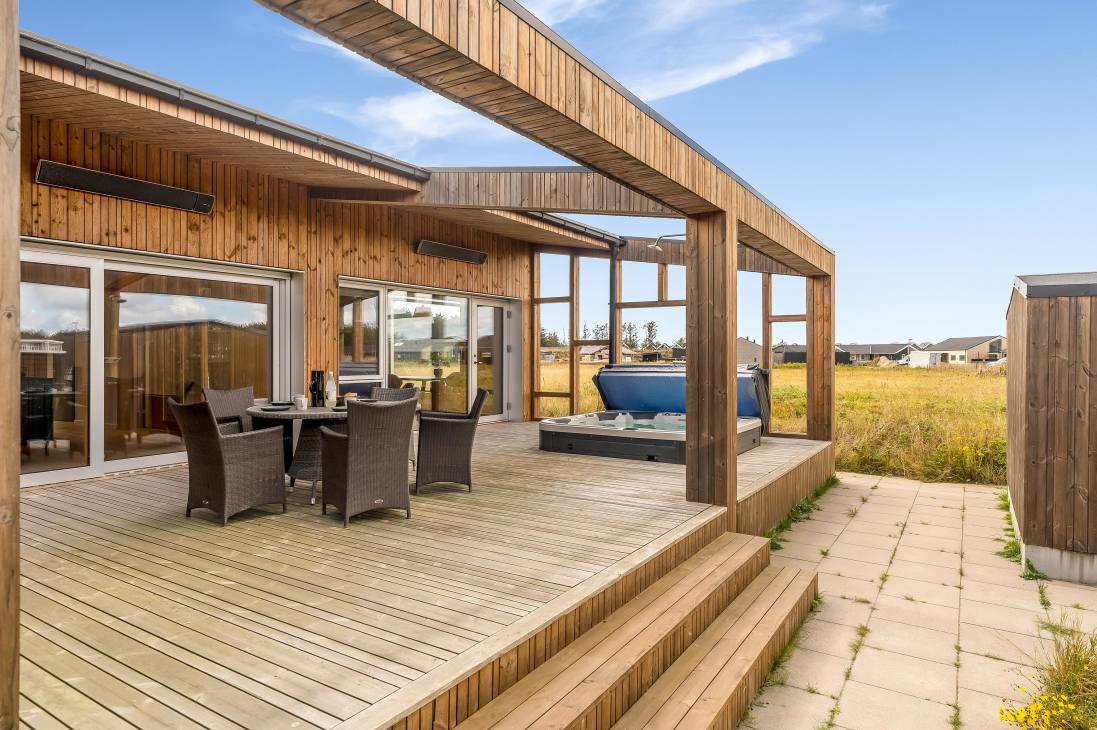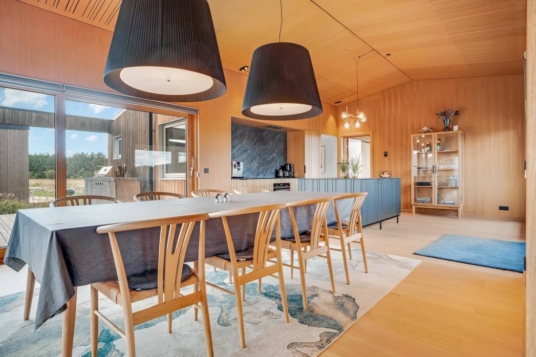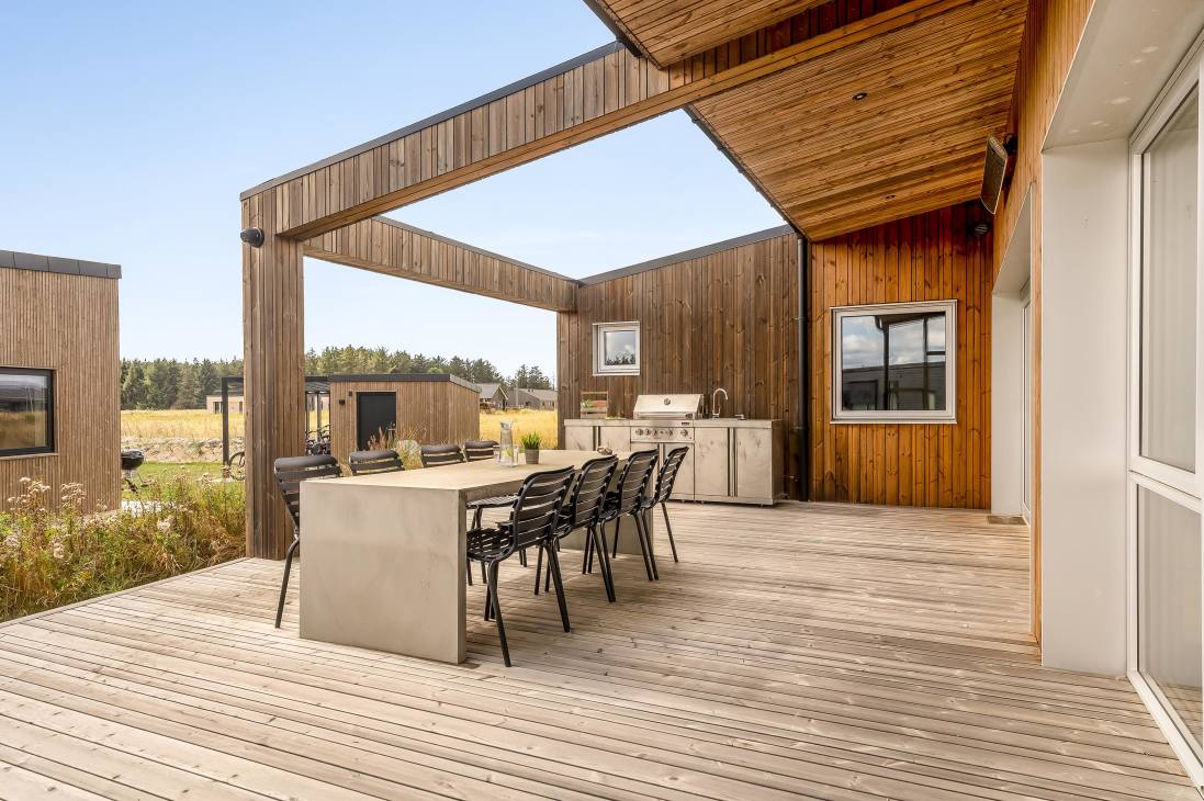 Several terraces and spacious outdoor areas make it easy to find both sun and shelter. There’s plenty of room for relaxation and play, and the beach, town, and shops are all within about a kilometre. Just 500 metres away you’ll find playgrounds and a golf course, and as the road is a cul-de-sac, it’s very quiet. You can walk, cycle, or drive to the beach – one of Denmark’s absolute best.