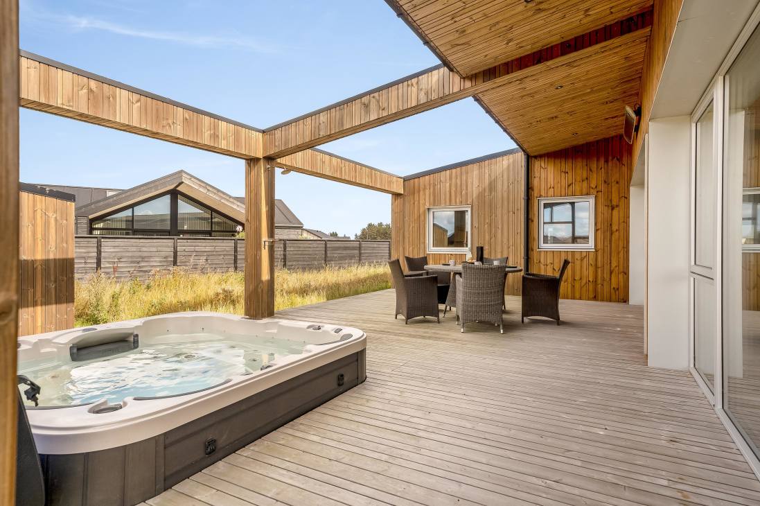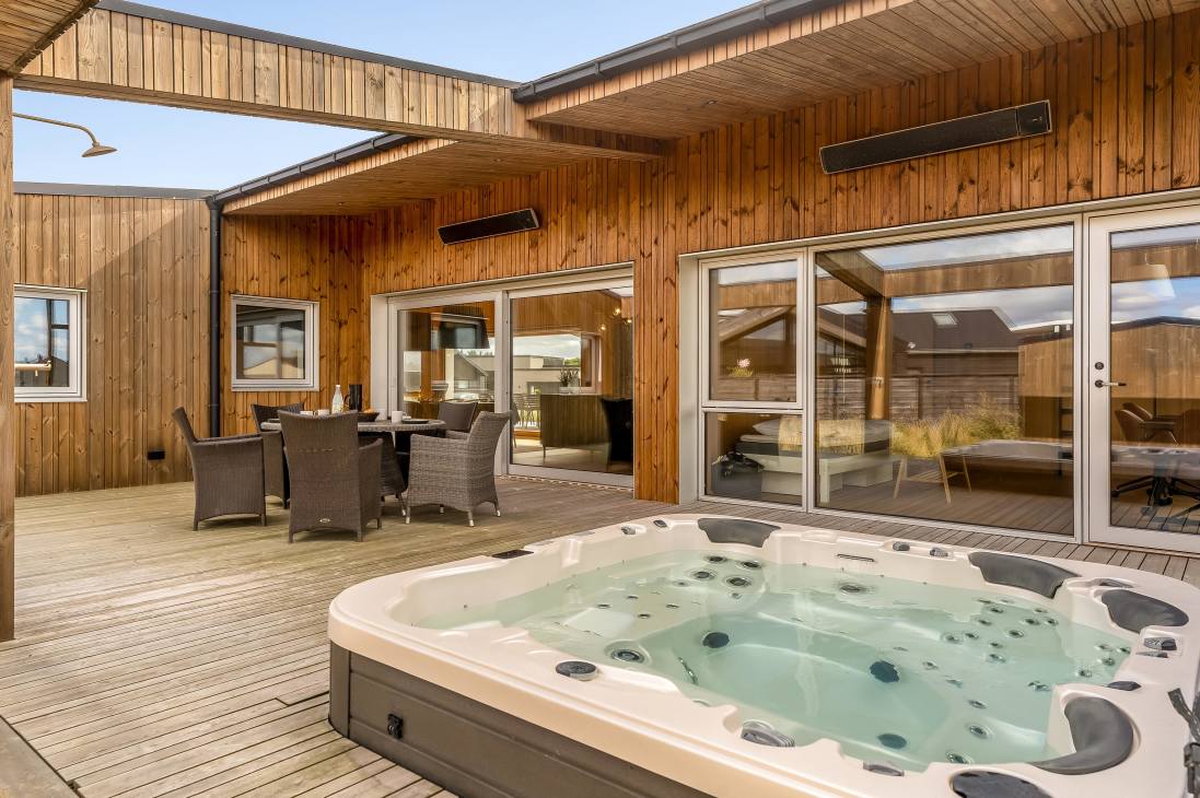Welcome to Ulken 8 – a modern holiday home with space for up to 7 guests, ready to set the scene for your next vacation. Built in 2022, the house offers stylish Scandinavian design, spacious living areas, and plenty of comfort. You’ll be staying in a quiet, newly developed holiday home area just 500 metres from the town centre and about 1 kilometre from the wide sandy beach. Whether you are looking for the buzz of town life or the fresh sea breeze, everything is right nearby. The property also features inviting outdoor spaces and an outdoor hot tub.