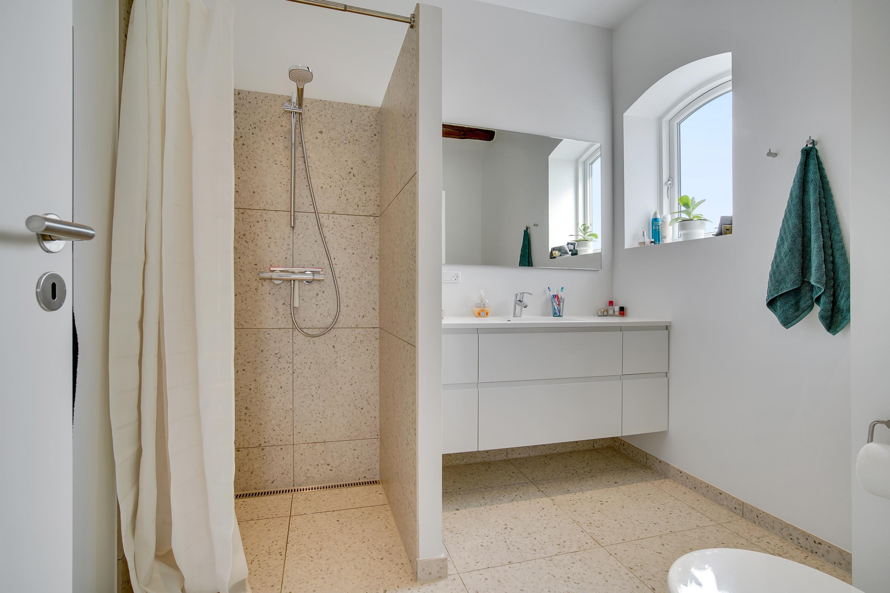 When you rent this holiday apartment in Løkken, you will not lack space - it is in fact a full 167 m² spread over two floors. The lower floor (on the 1st floor) contains a large kitchen / living room, a bright bathroom and the possibility of two extra beds. The living room is integrated into the large room, where walls do not minimize light or airiness. It is also on this floor that you can access the large terrace where you can sunbathe when the weather allows it. On the top floor there are two large, bright bedrooms and another gorgeous bathroom. From all the windows, Løkken's holiday atmosphere radiates!