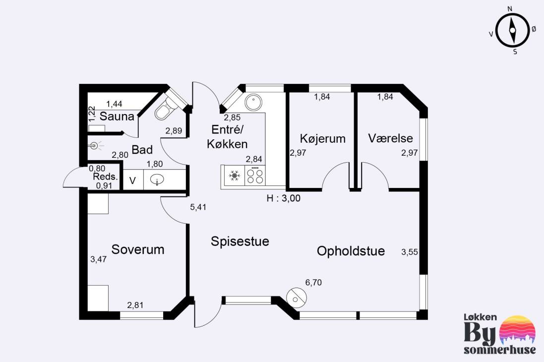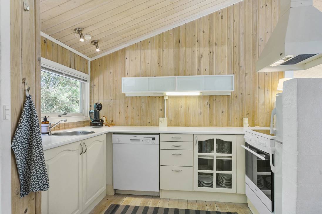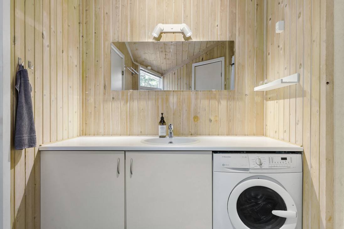As mentioned, the holiday home is located at the end of a dead-end street, providing a delightful sense of privacy. The garden is picturesque with a swing set and sandbox, shielded by beautiful trees that time has marked but integrated as an integral part of the 1440 sqm plot. Within a very short radius, you have Fårup Summerland and Jambo Holiday Park, and within a slightly broader radius, you have the holiday towns of Løkken and Blokhus. When Jambo Holiday Park is open, shopping and café visits are only 350 meters away, and Fårup Skovhus also offers delightful meals. Outside the season, it's just 3.5 kilometers to the town of Saltum, where there is a lovely butcher and a large supermarket with everything your heart desires.